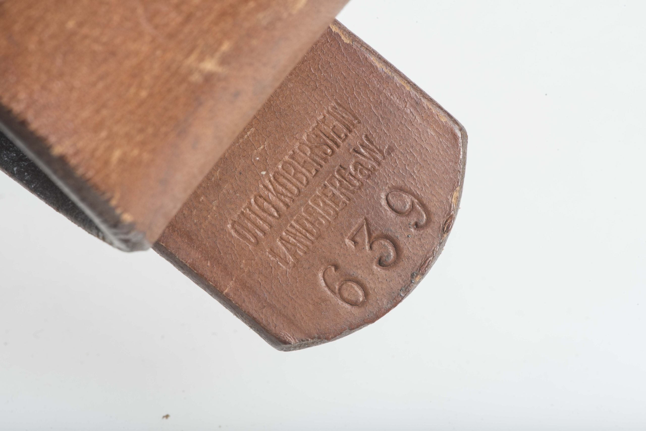 Leather equipment belt marked Otto Koberstein Landsberg a.W. 6 39 size 90 in unissued condition. Hard to find example !