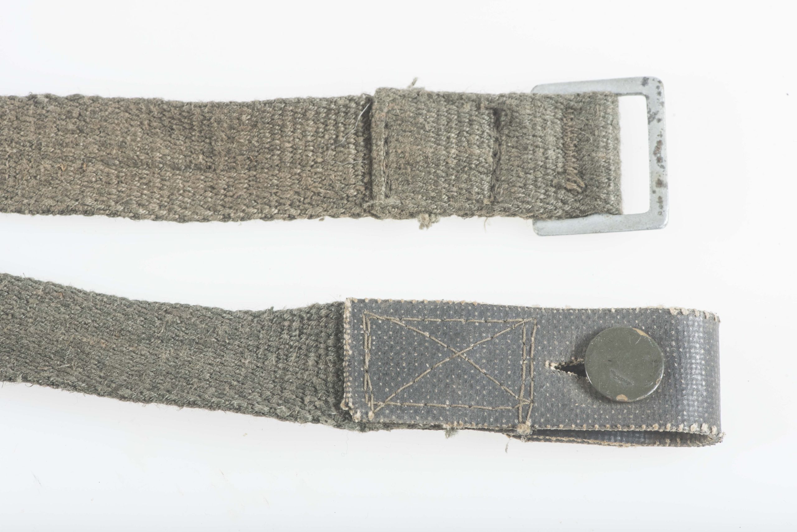 Long gasmask canister strap with rubbized cotton end piece. Hard to find variant, not a ebd made example!