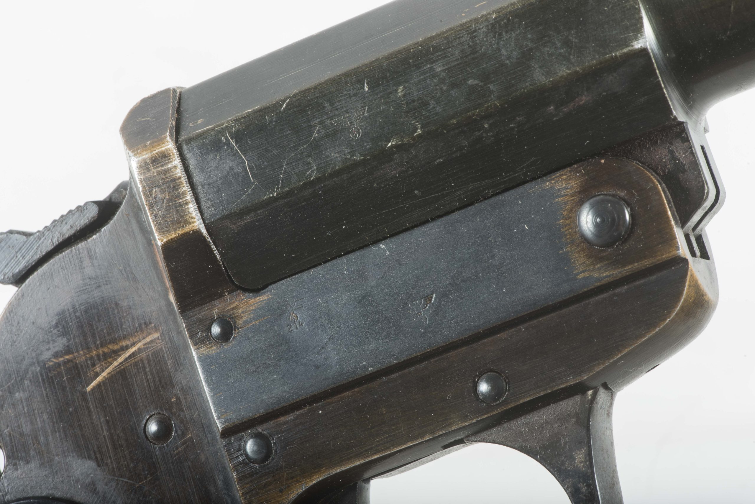 A very nice LP34 in working condition. The LP34 still has the full rare dark green and yellow anodization finish and never has been repainted. This type of finish is rare to encounter and gives the flare gun a very nice aesthetic look! The flare gun is marked due 42 which indicates production by Berlin Luebecker. Very hard to upgrade example!