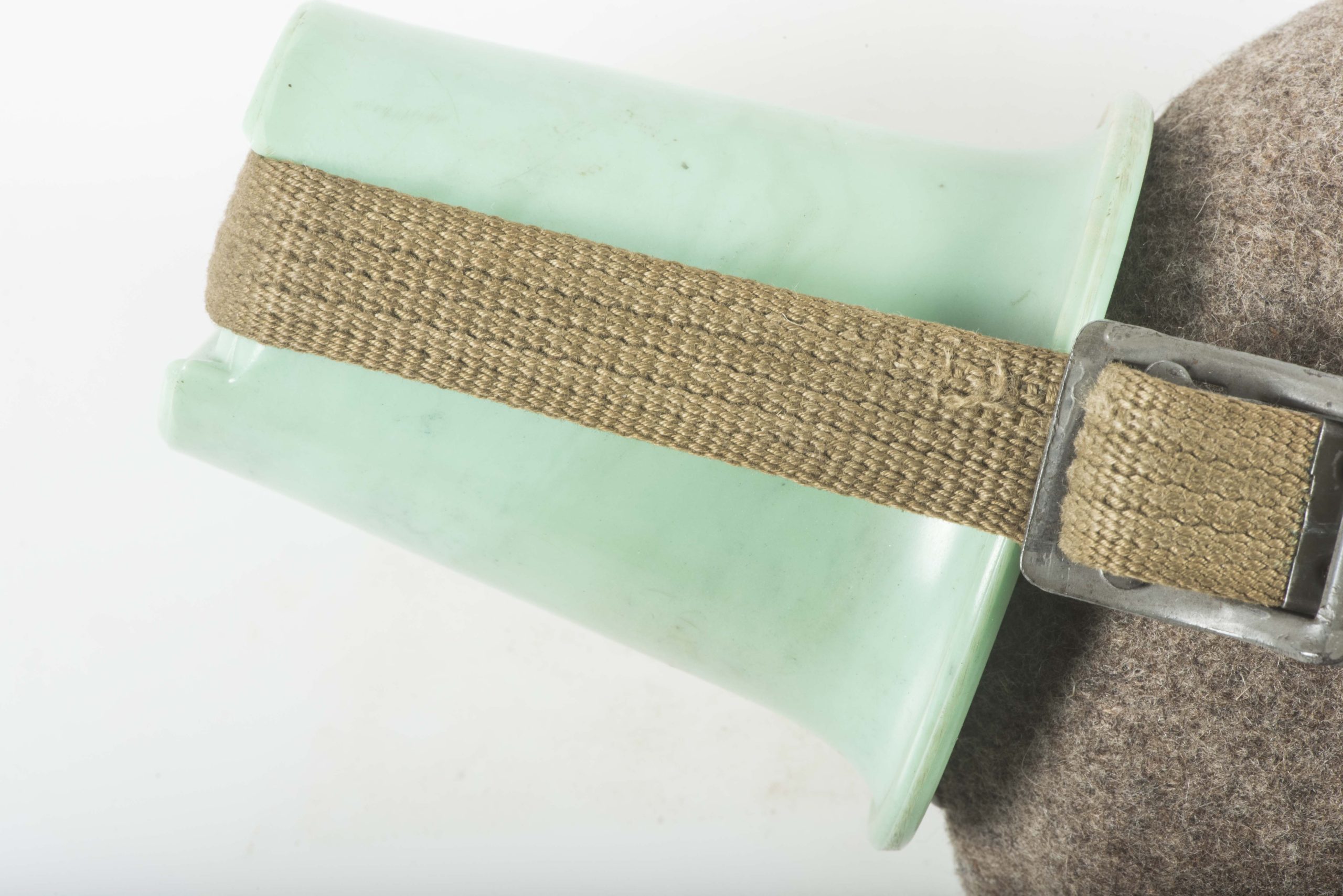 M31 canteen marked SKN 41 with green bakelite cup marked gfc 1942. The canteen is marked skn 41 which is a hard to find maker. The canteen cup is a textbook light green variant in excellent condition. Beautiful set with webbing strap!