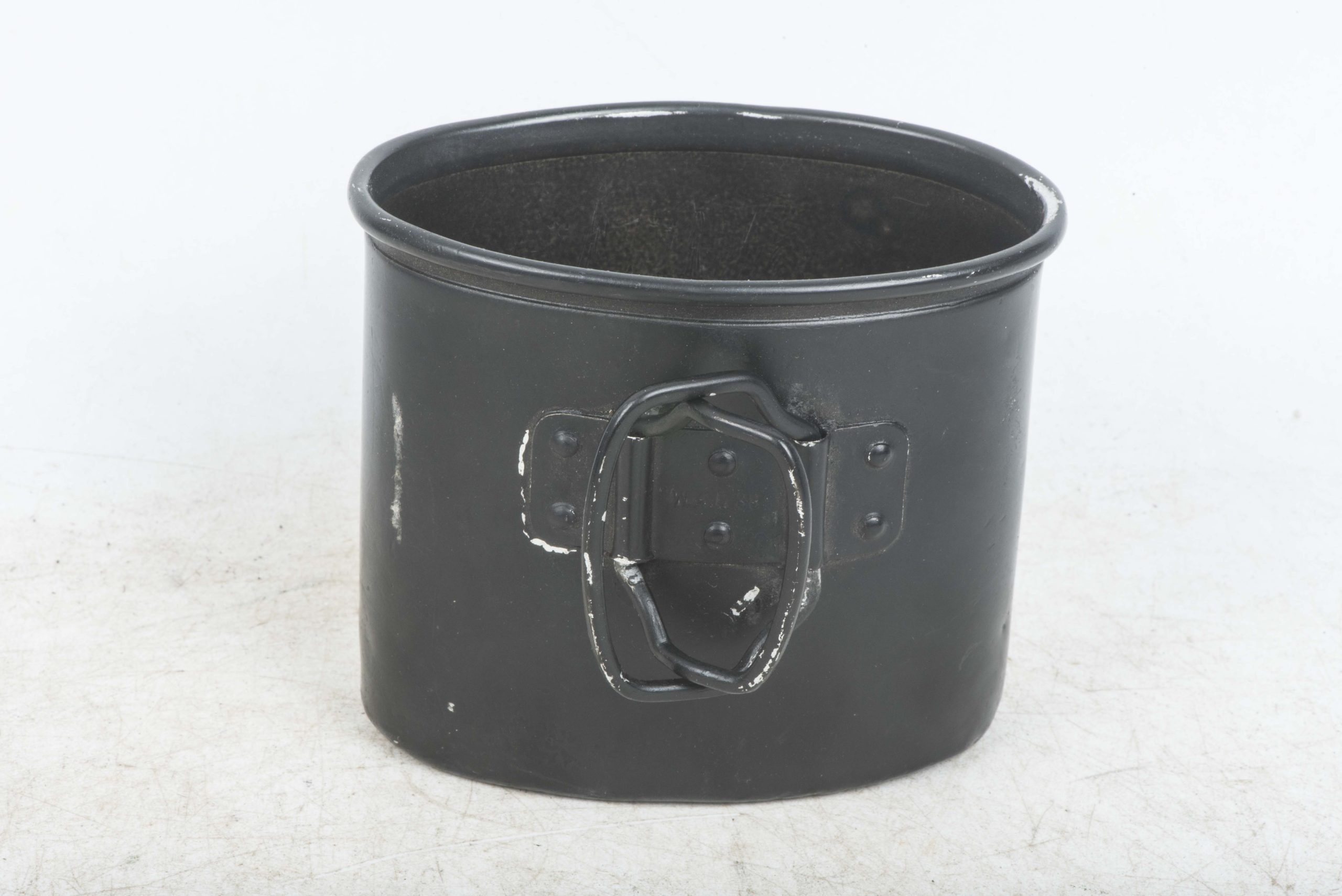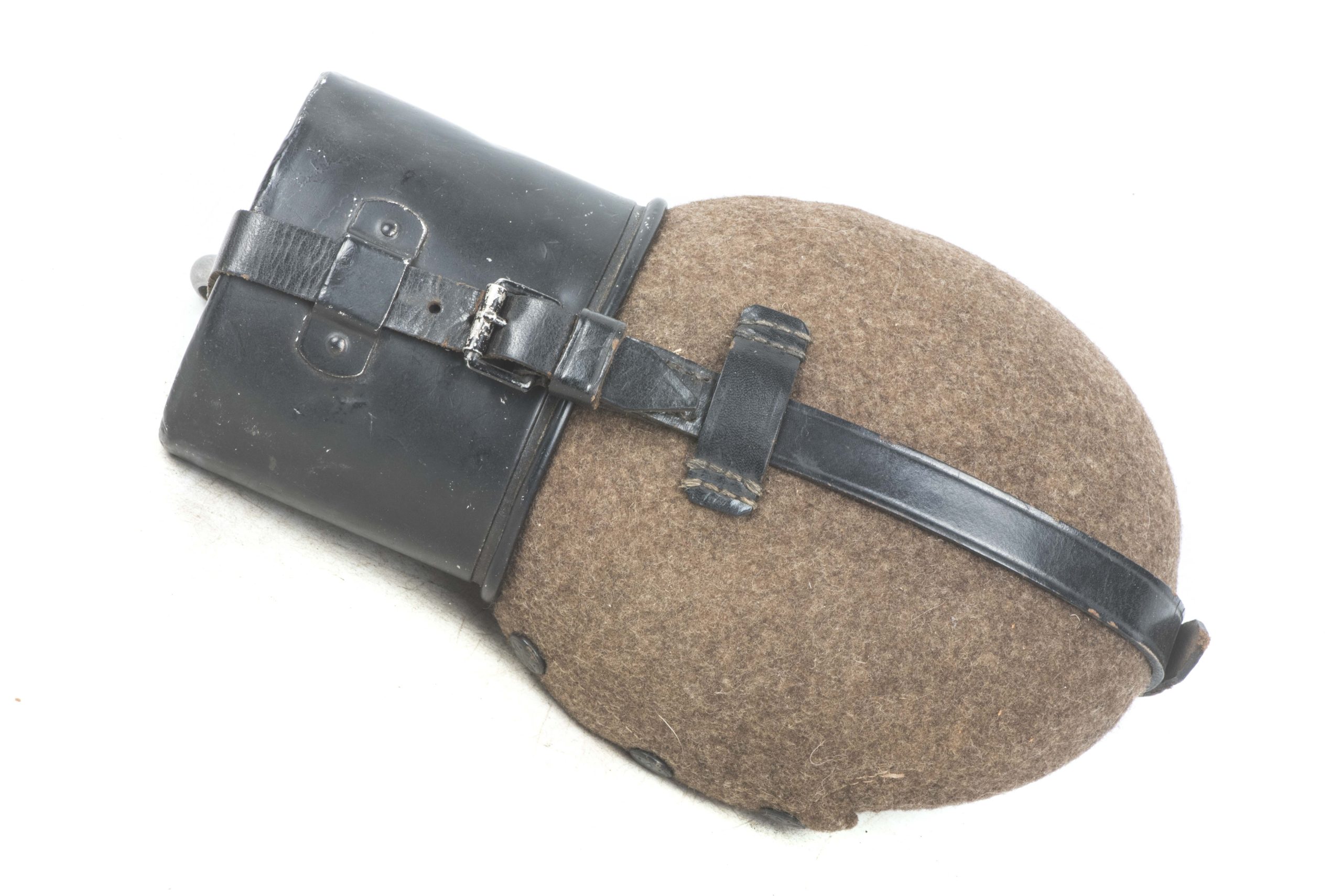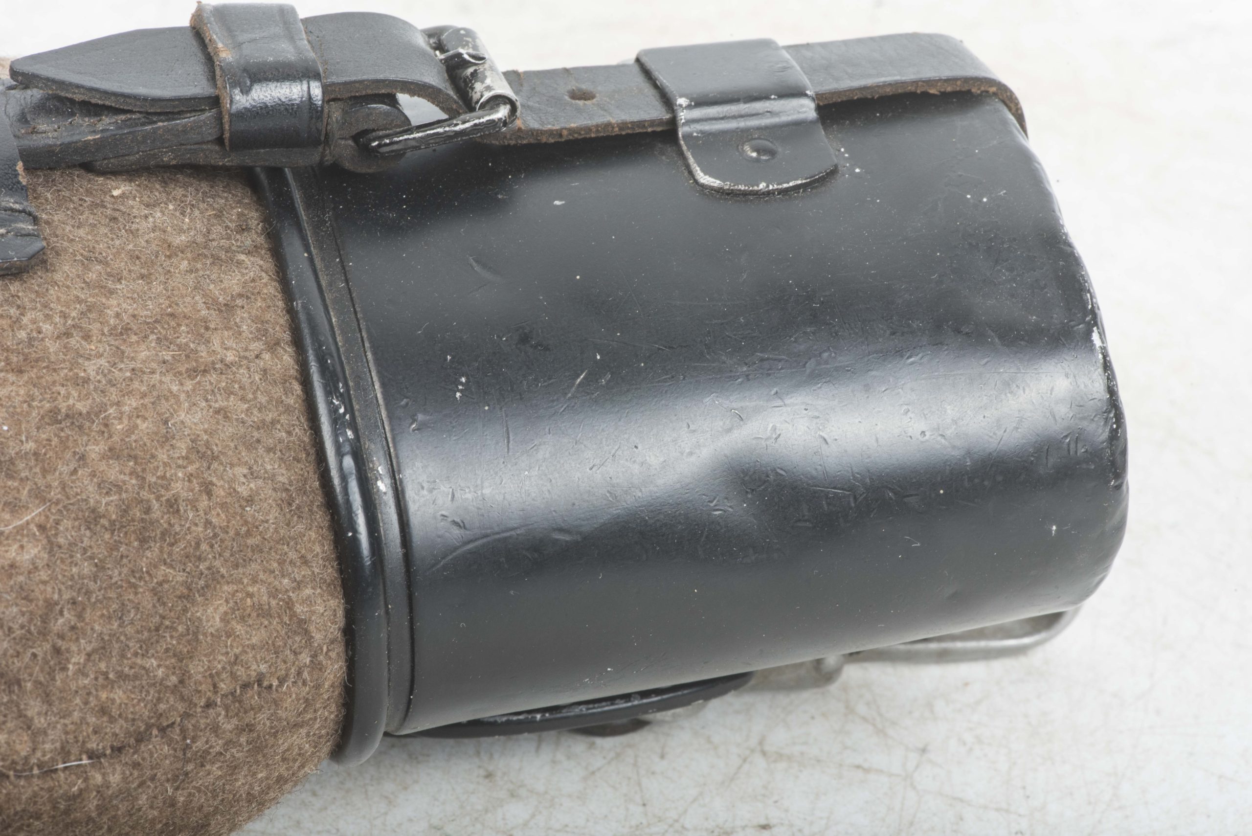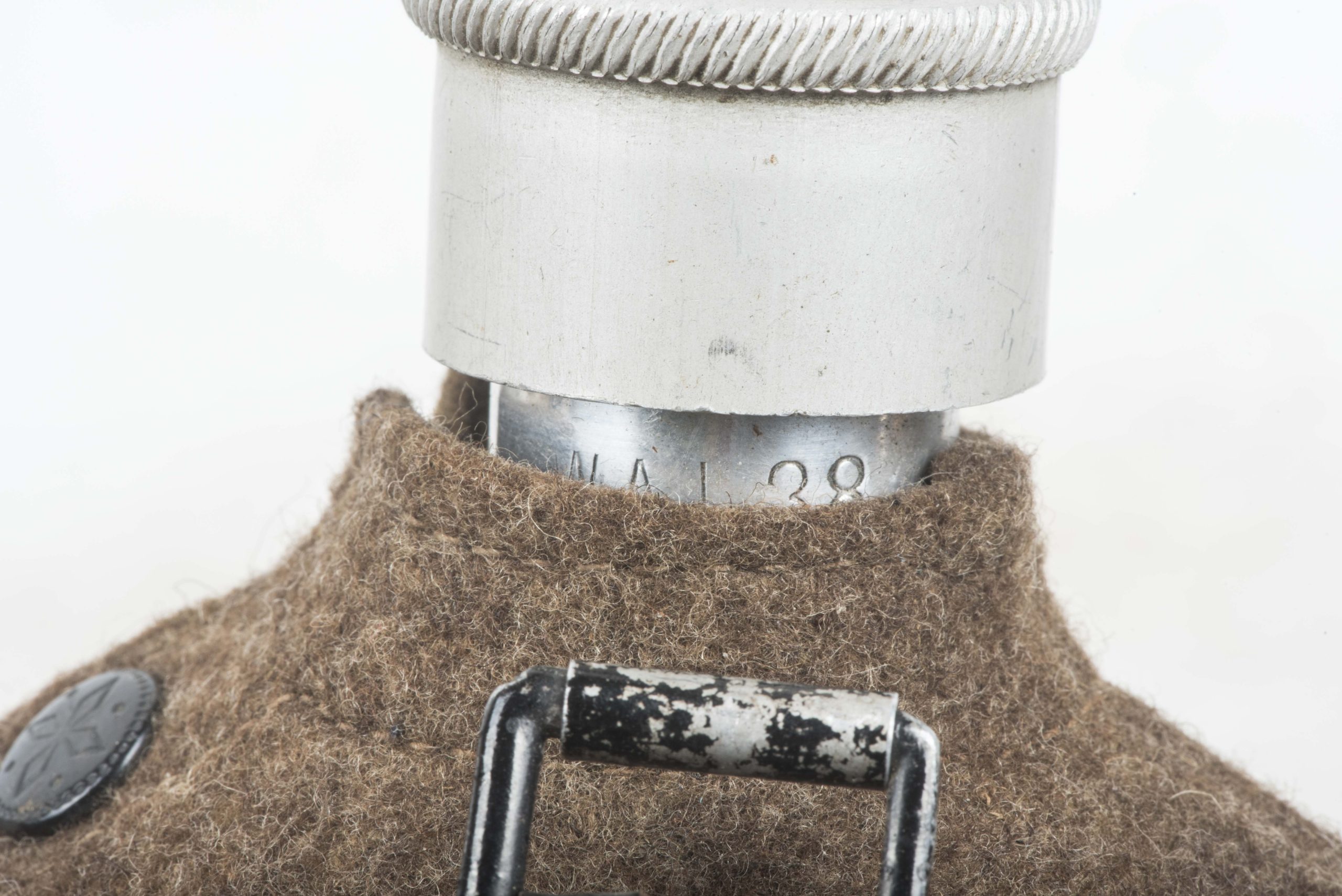 M31 canteen marked WAL 38 which indicates production by Westfalische Aluminium Industrie, Junger & Co., Lüdenscheid. The strap which secures the screw cap features a tear and the cup is repainted. Textbook example in good condition!