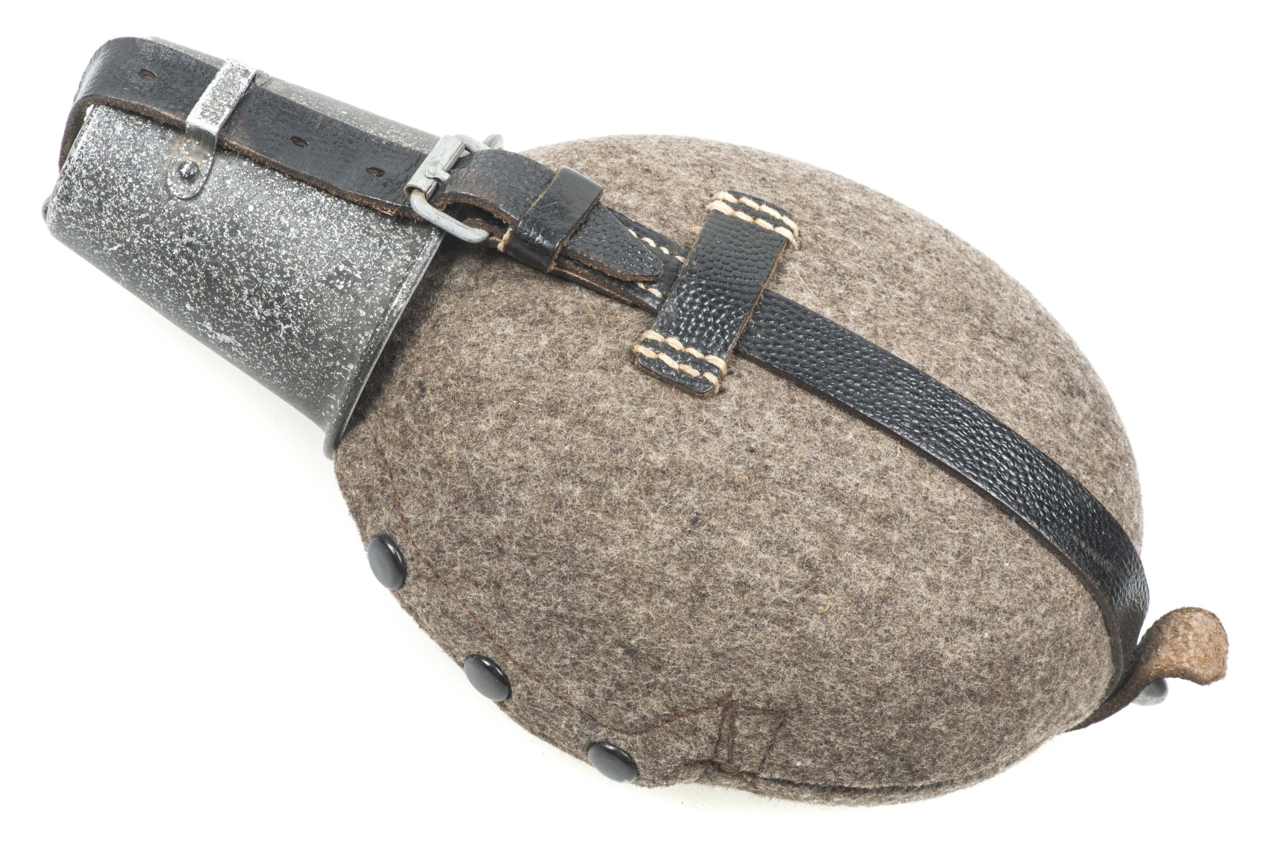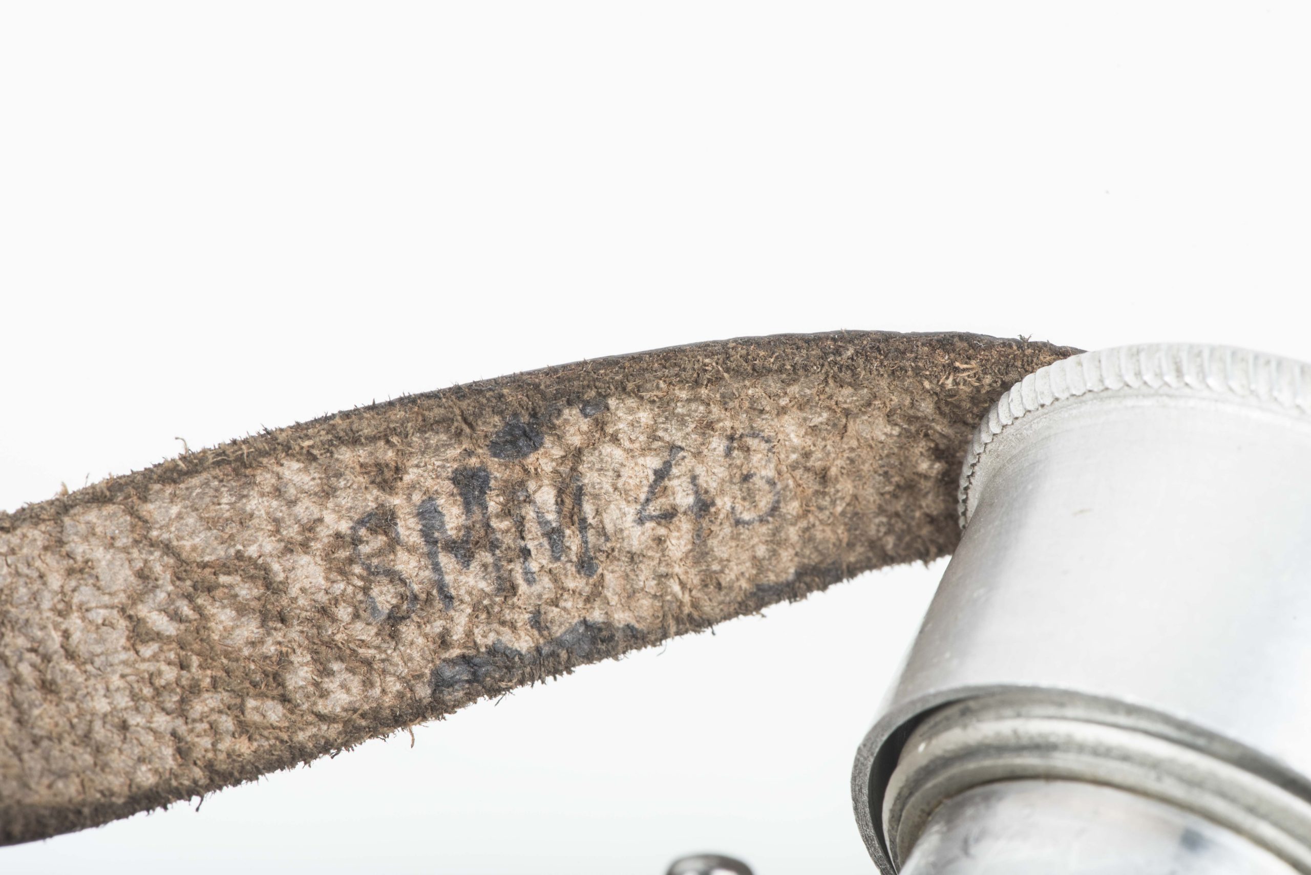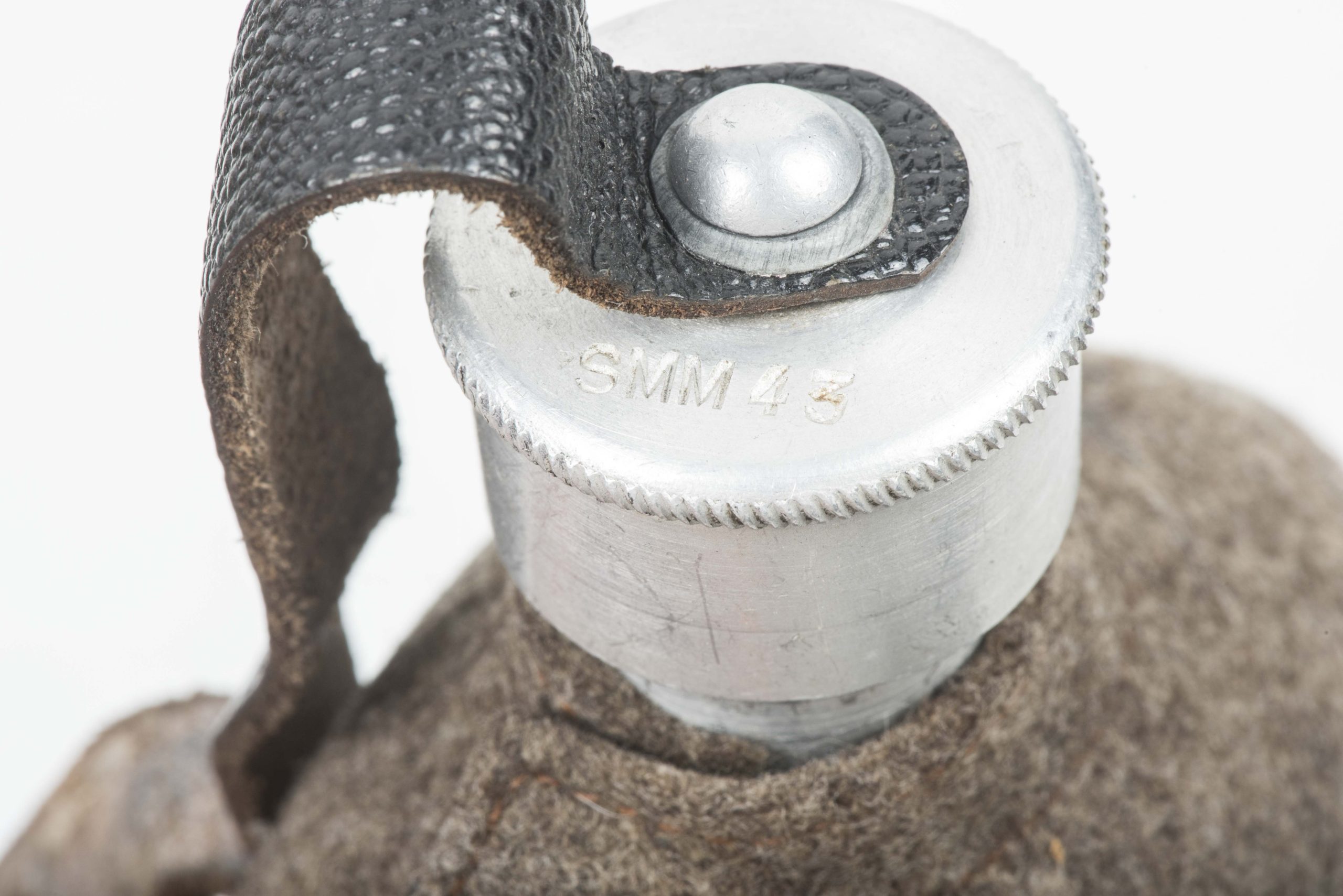 M31 medical canteen with its flask and cup marked SMM 43 indicating a factory mismatched example produced by Süddeutsche Metallwarenfabrik, Mussbach in 1942. Textbook medical M31 canteen, hard to find late war example.