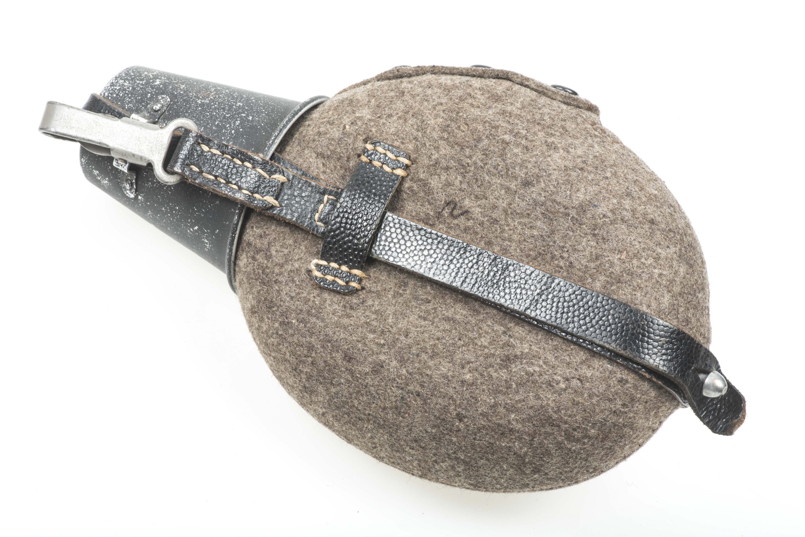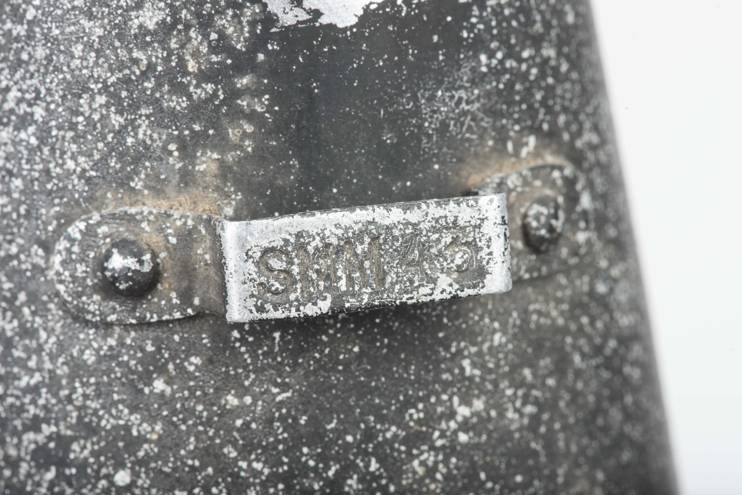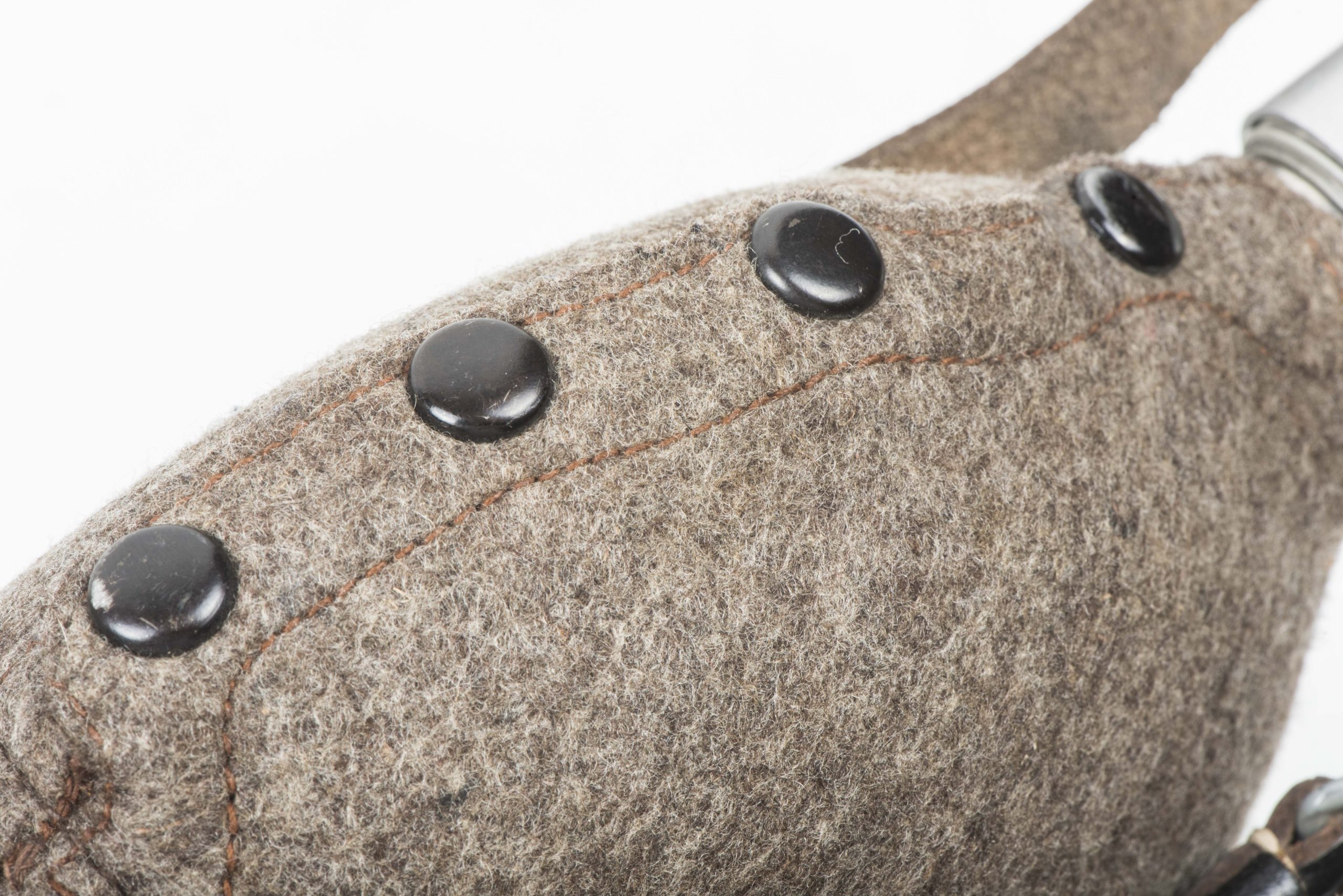 M31 medical canteen with its flask and cup marked SMM 43 indicating a factory mismatched example produced by Süddeutsche Metallwarenfabrik, Mussbach in 1942. Textbook medical M31 canteen, hard to find late war example.