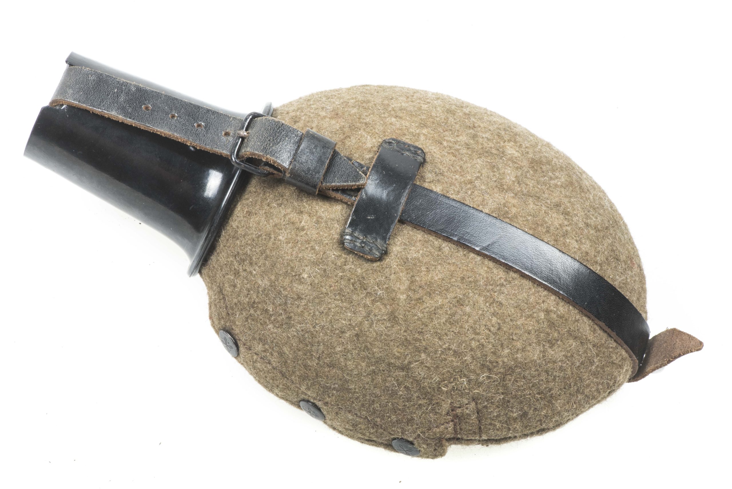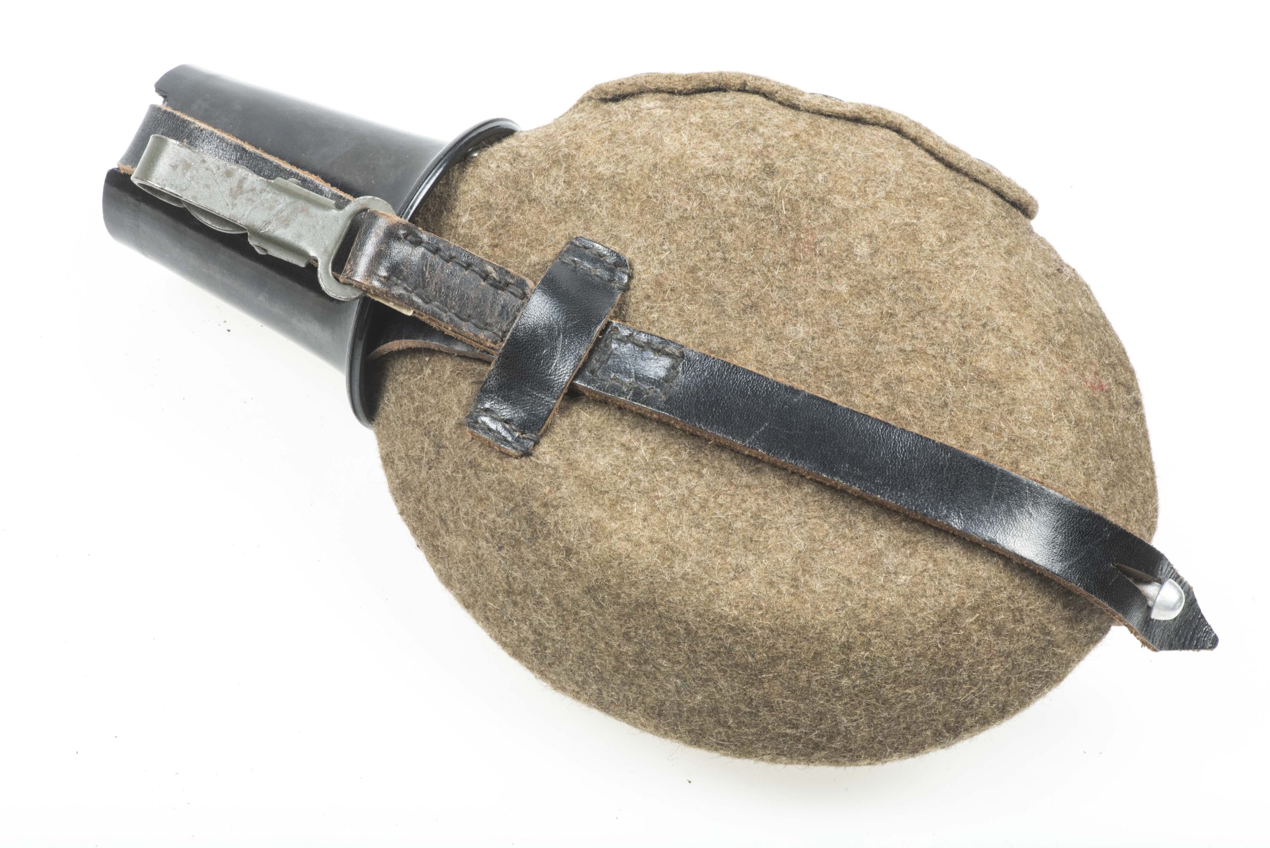 M42 canteen marked CFL 43 indicating production by Carl Feldhaus Aluminium-und Metallwerke, Lüdenscheid. The canteen is a excellent example with matching black phenolic resin cup marked 1W 31. Nice example!
