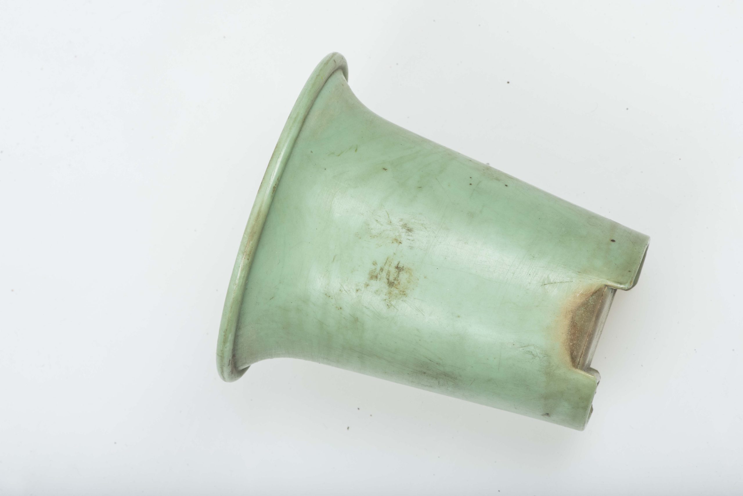 Textbook late war M42 steel canteen in very good condition. The canteen itself is nicely marked C.F.L. 43 which indicates production by Carl Feldhaus, Lüdenscheid. The canteen features light brown straps which are typical for such a late war produced example. The canteen comes in its original and textbook configuration with a bakelite canteen cup. The cup itself is a late war green cup marked F7/K which is extremely rare to find. Excellent canteen which is impossible to upgrade!