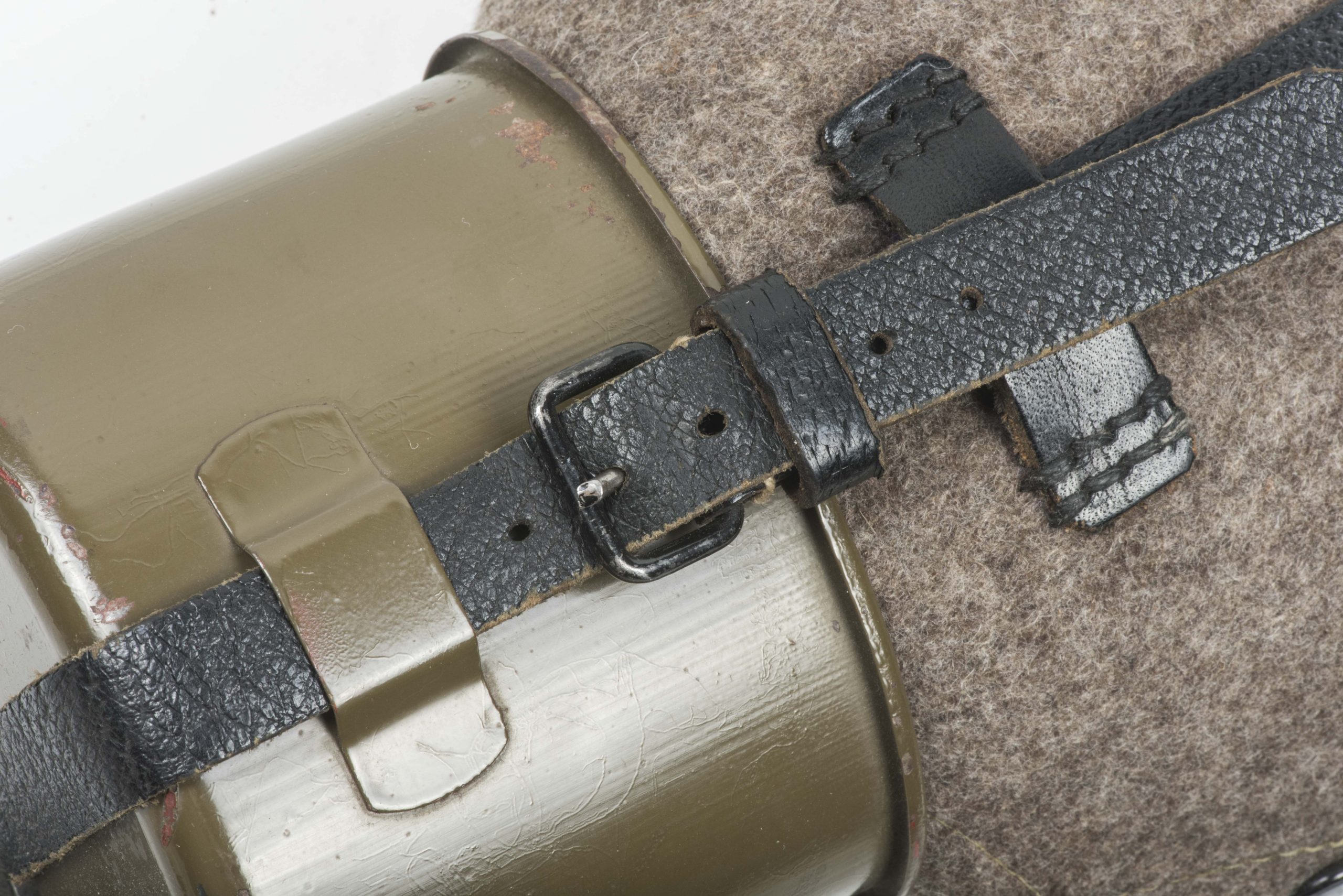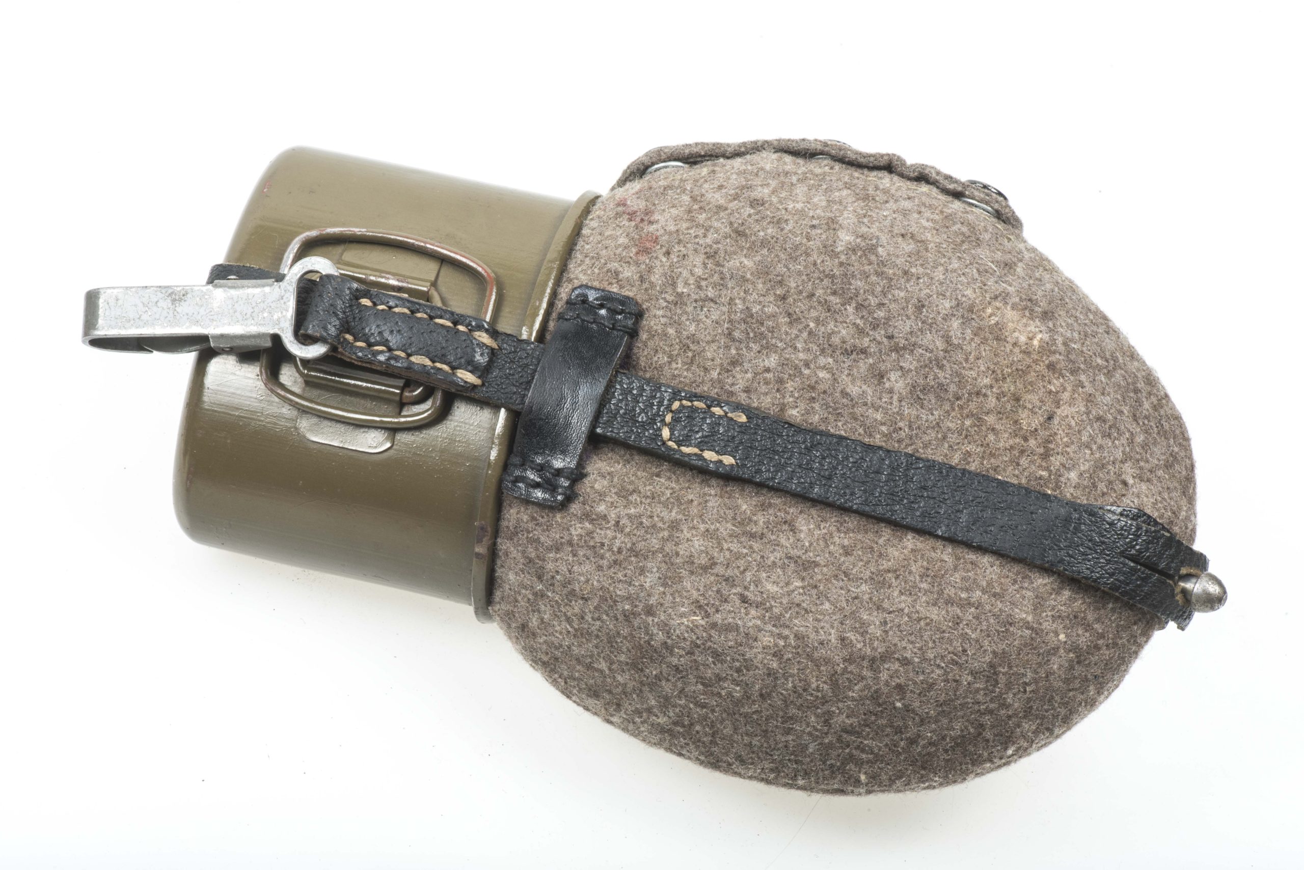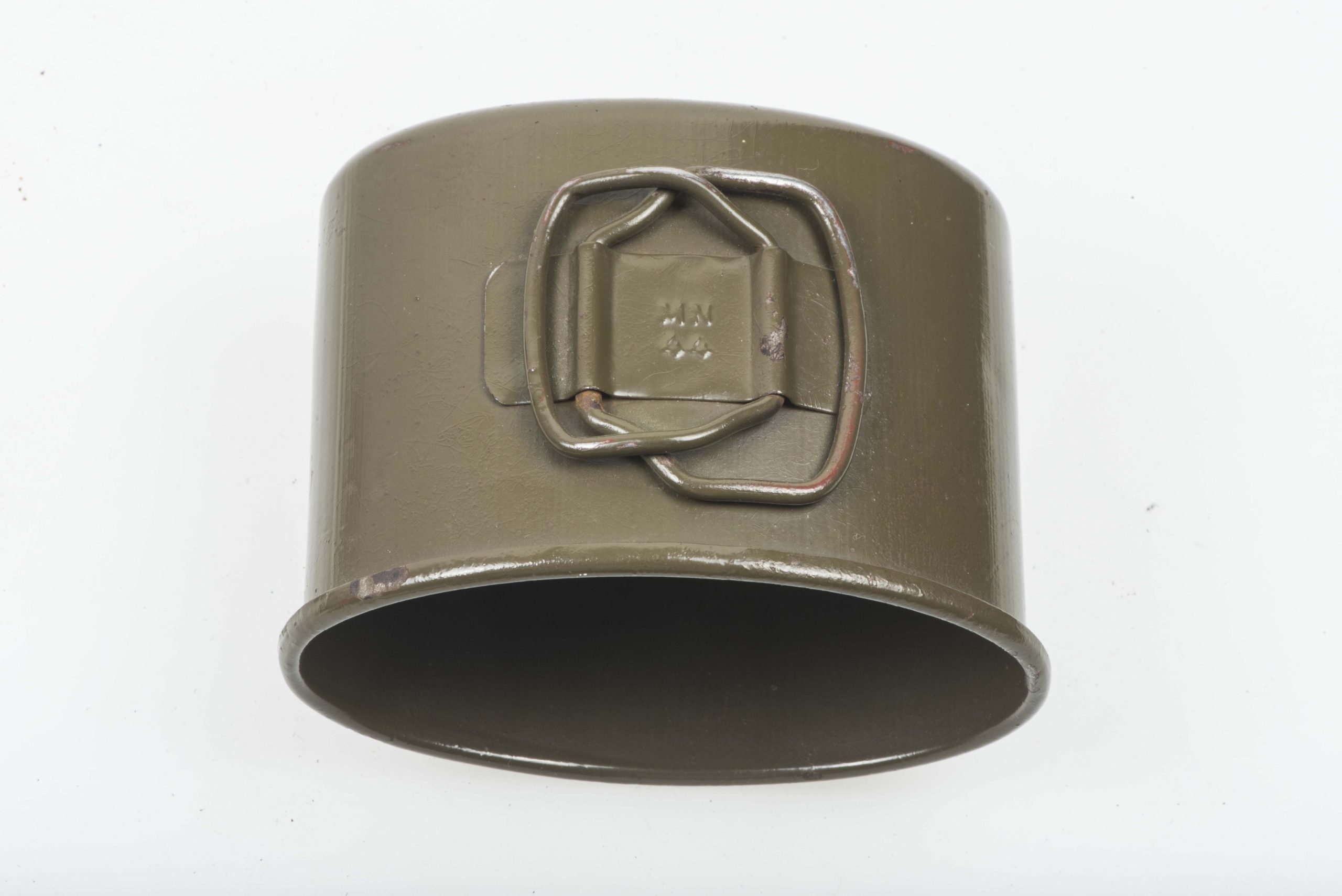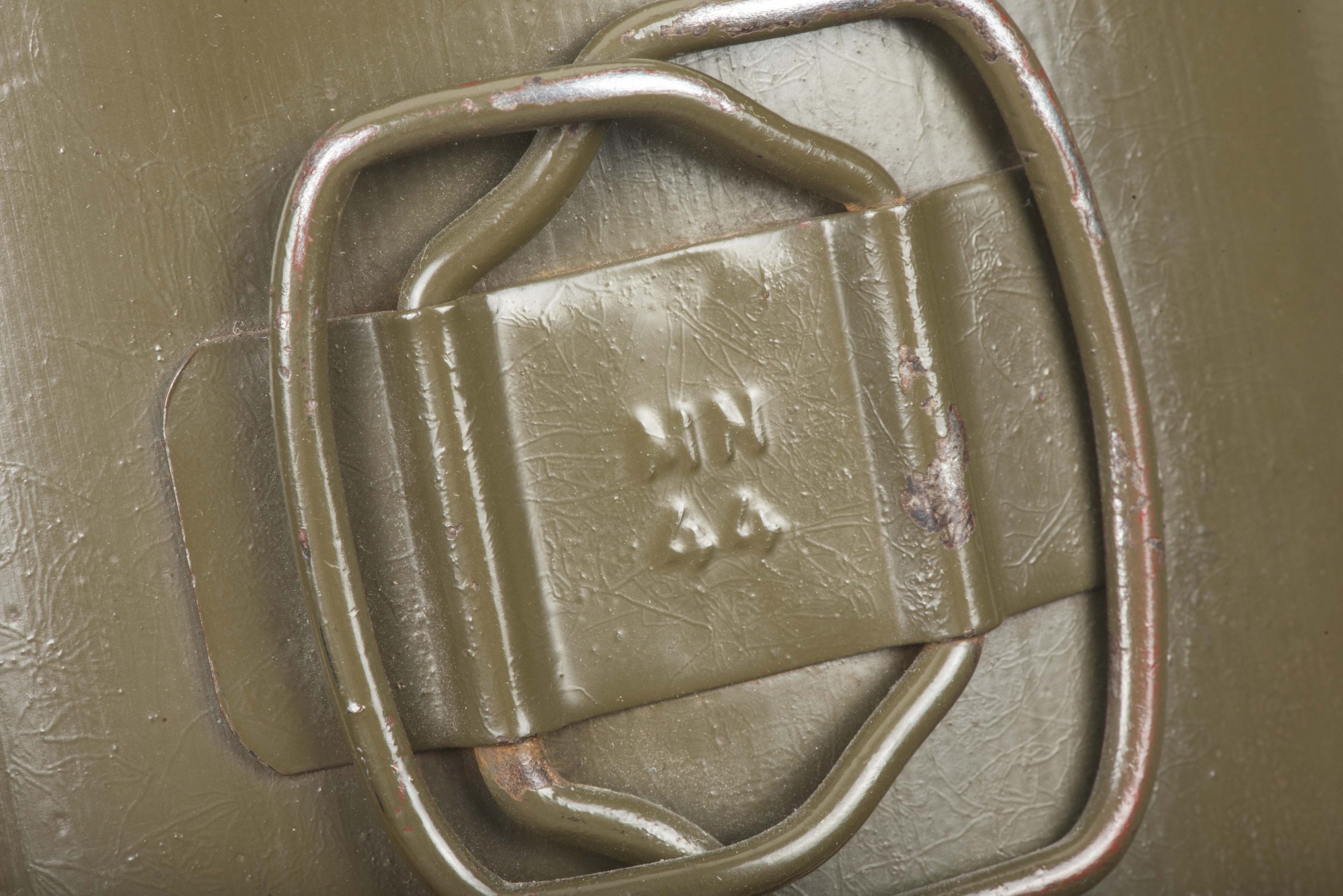 Unissued M42 canteen marked MN 44 which indicates production by Menesa Metallindustrie GmbH. Neunkirchen-Saar in 1944. The canteen comes in a textbook configuration with a matching cup. Nice original example in excellent unissued condition!