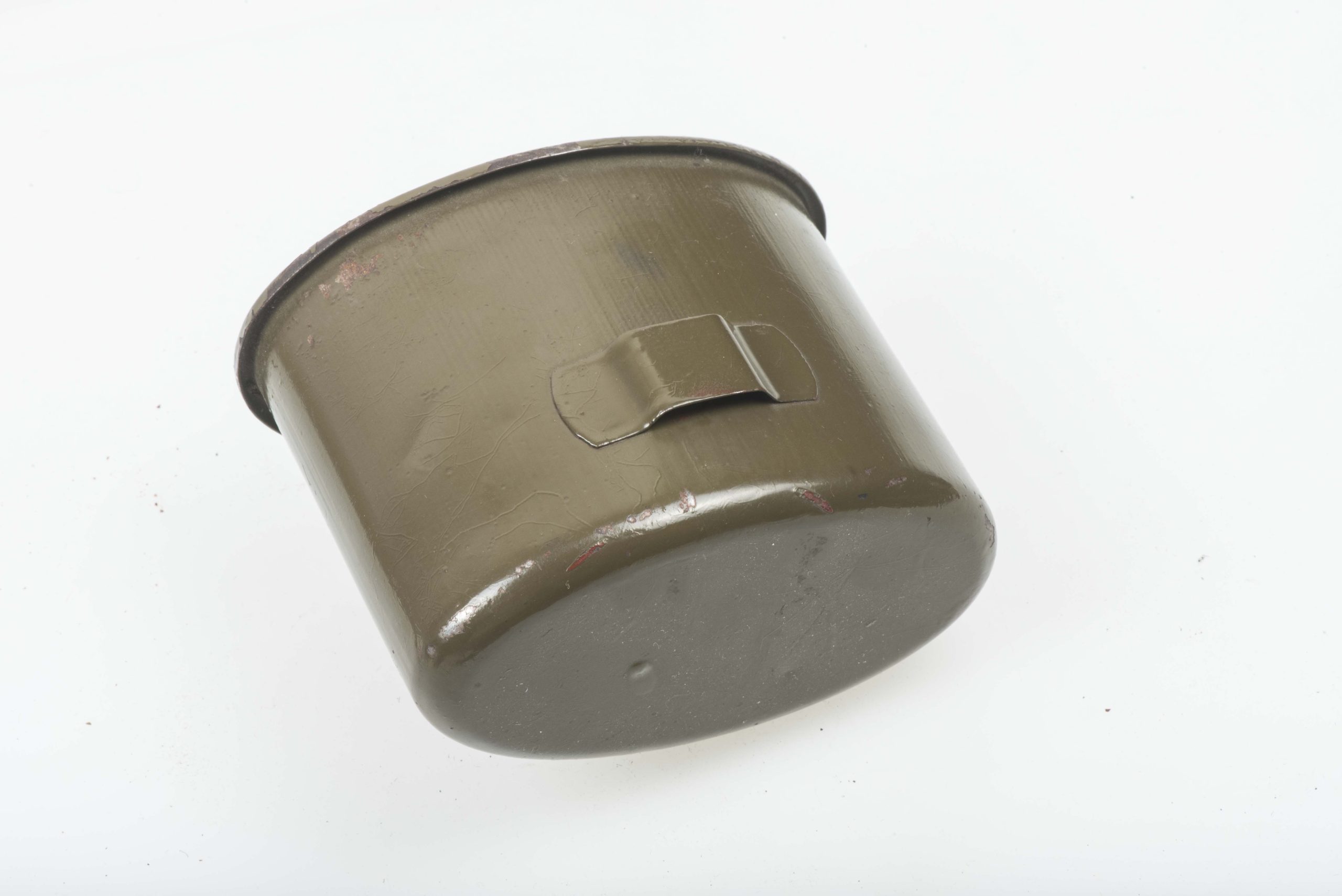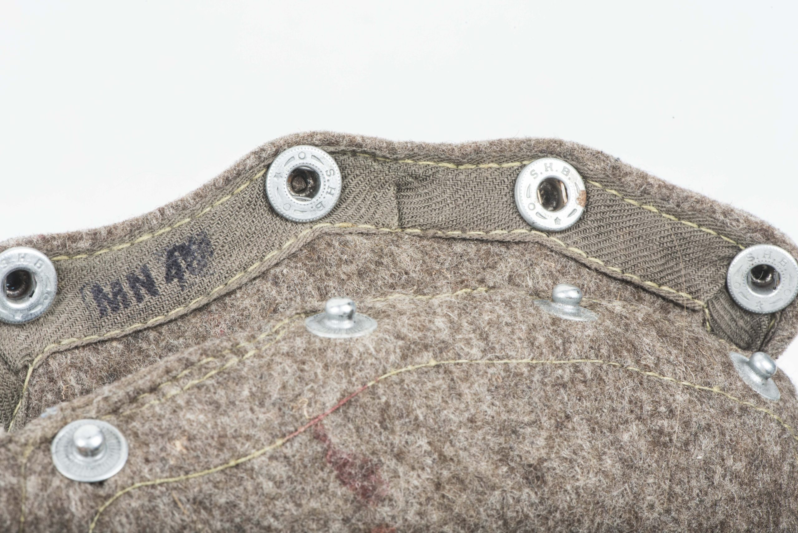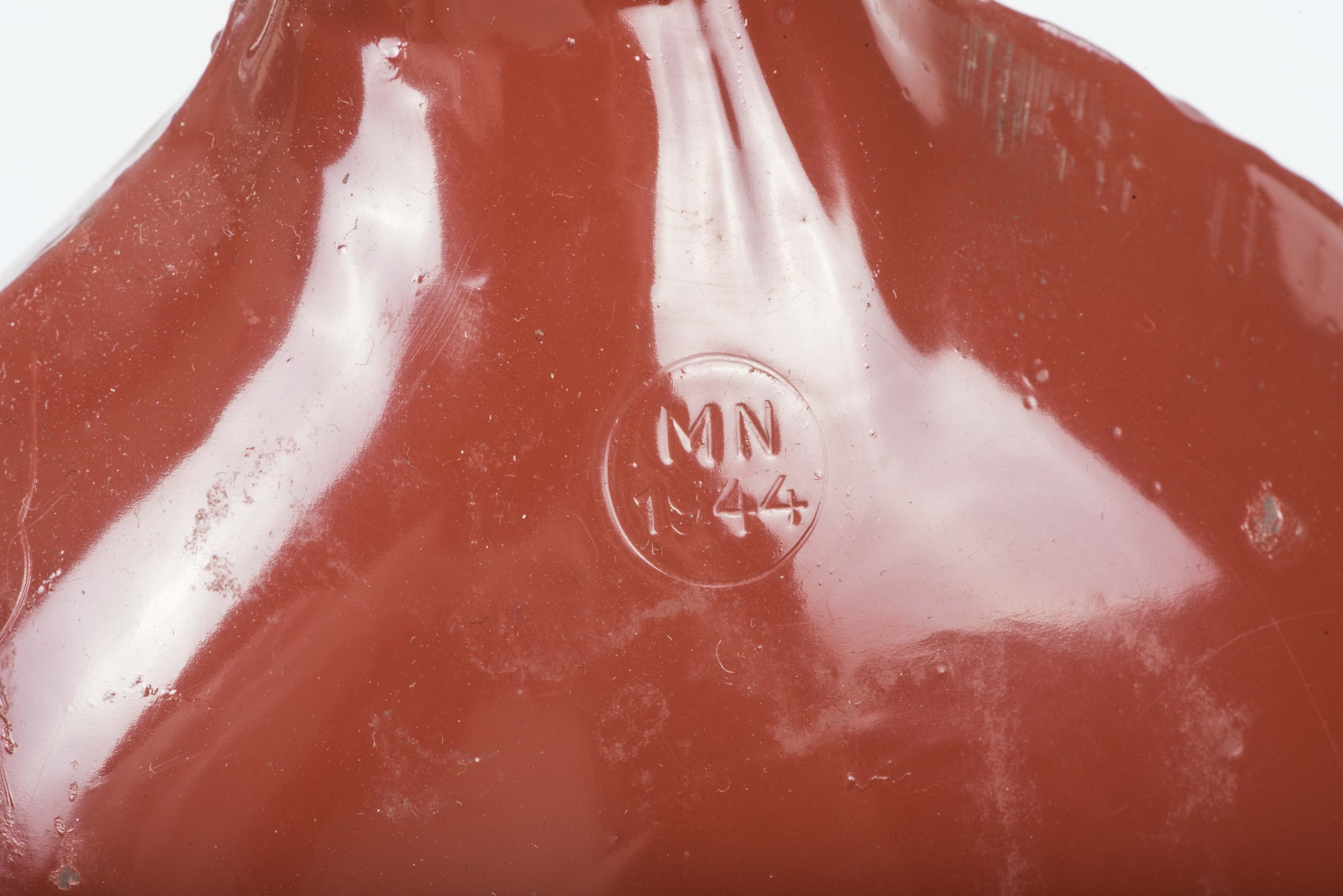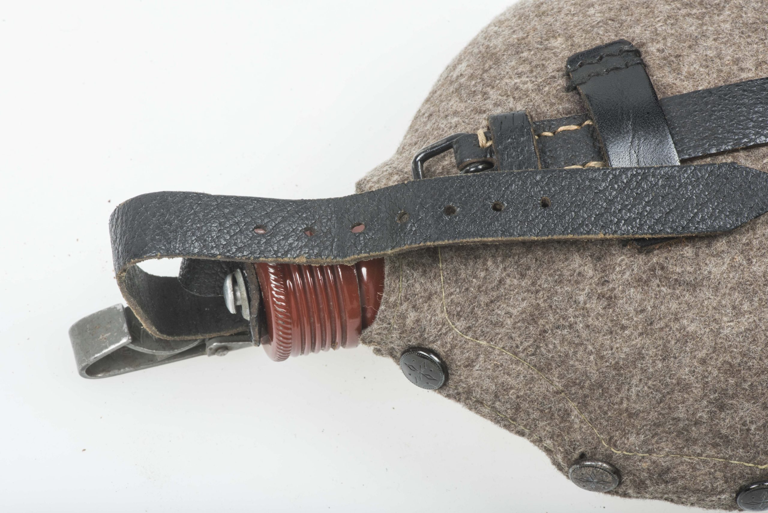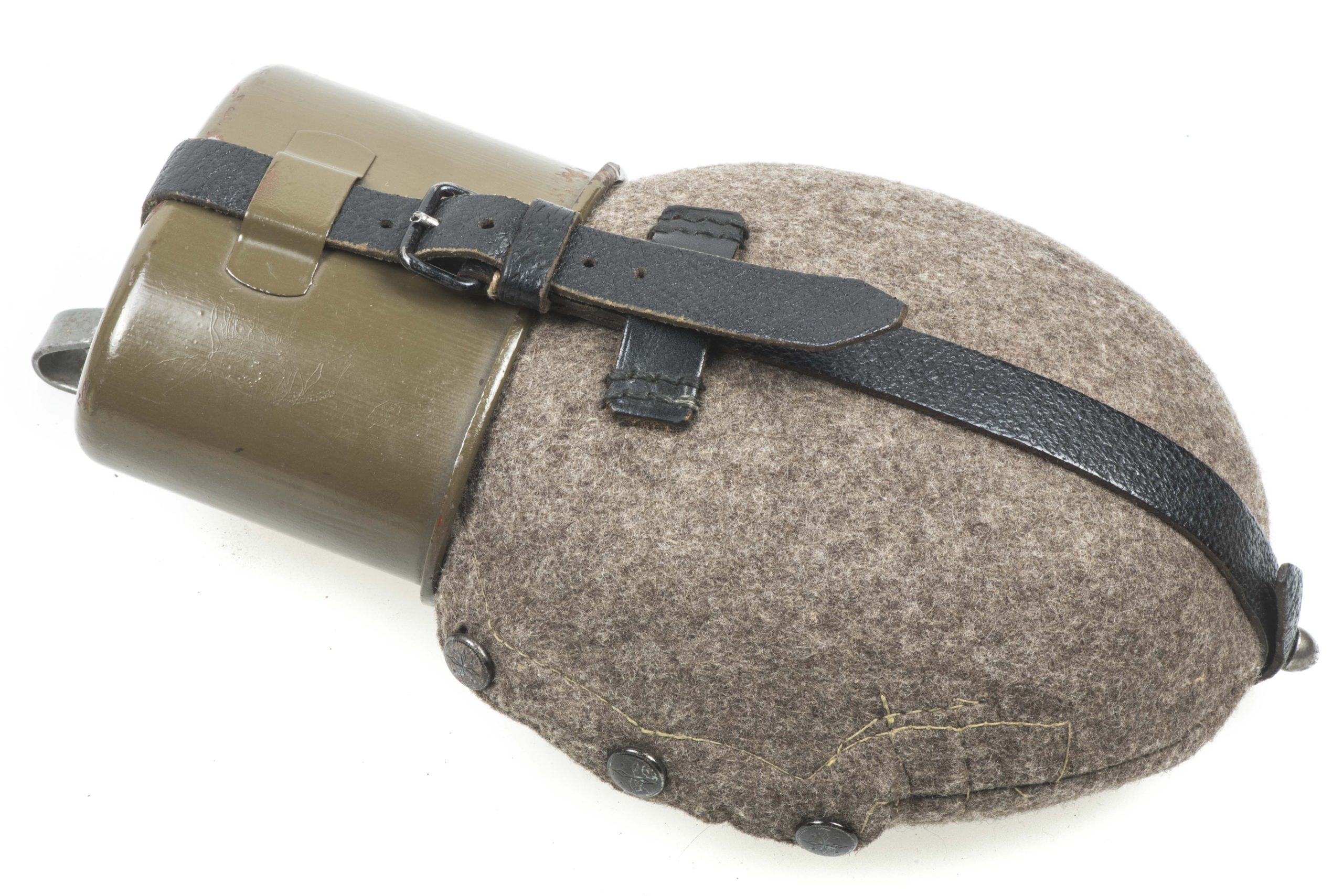 Unissued M42 canteen marked MN 44 which indicates production by Menesa Metallindustrie GmbH. Neunkirchen-Saar in 1944. The canteen comes in a textbook configuration with a matching cup. Nice original example in excellent unissued condition!