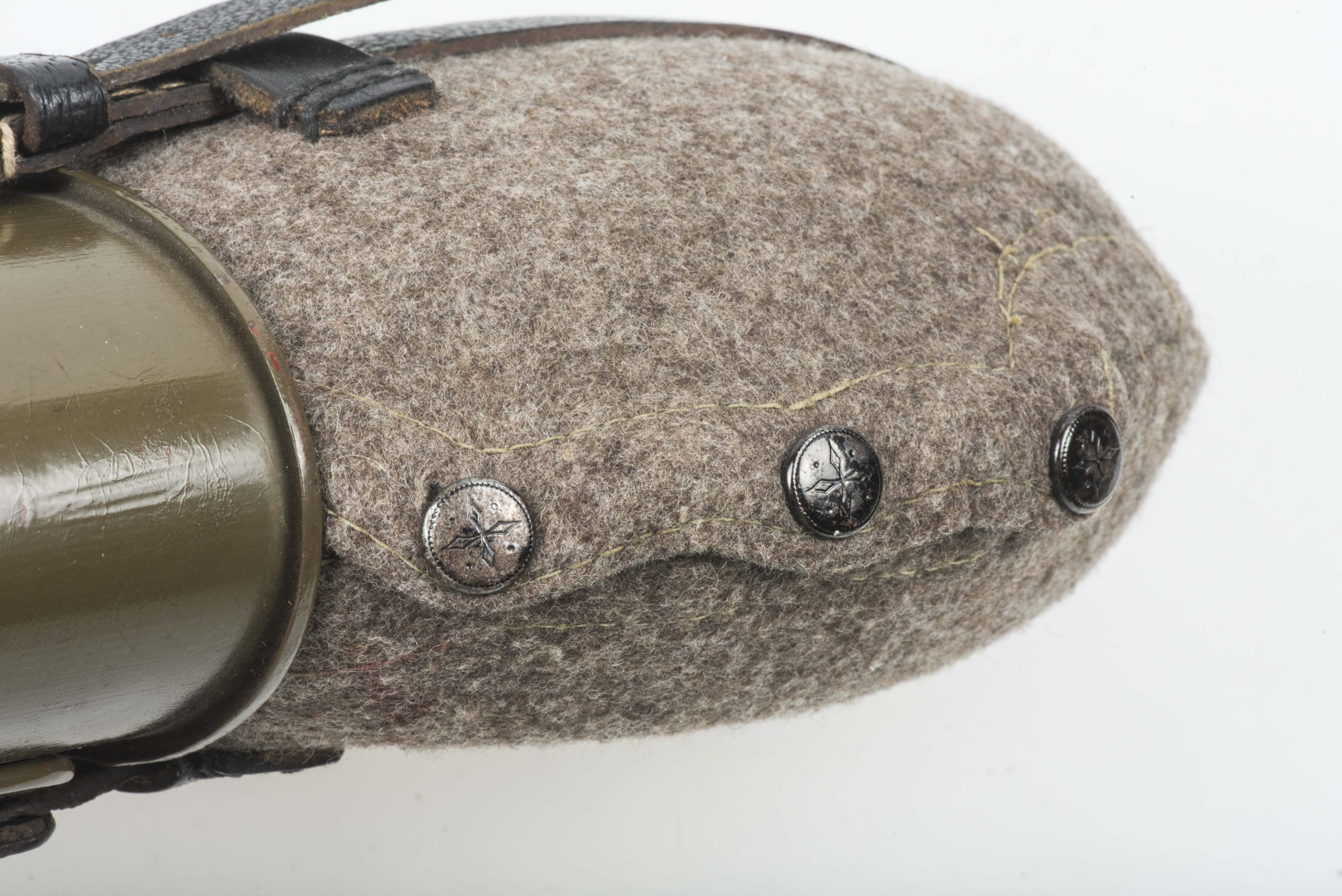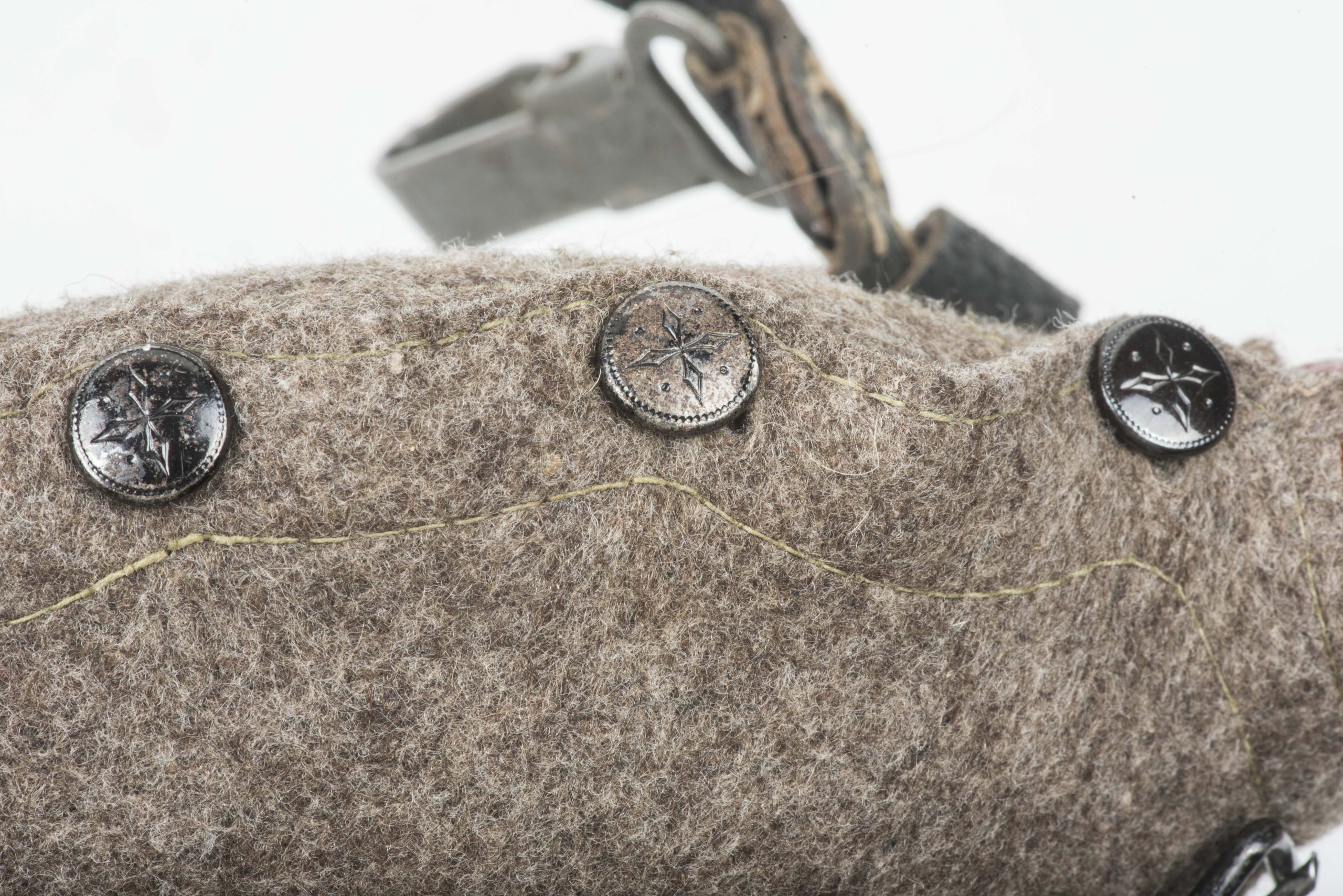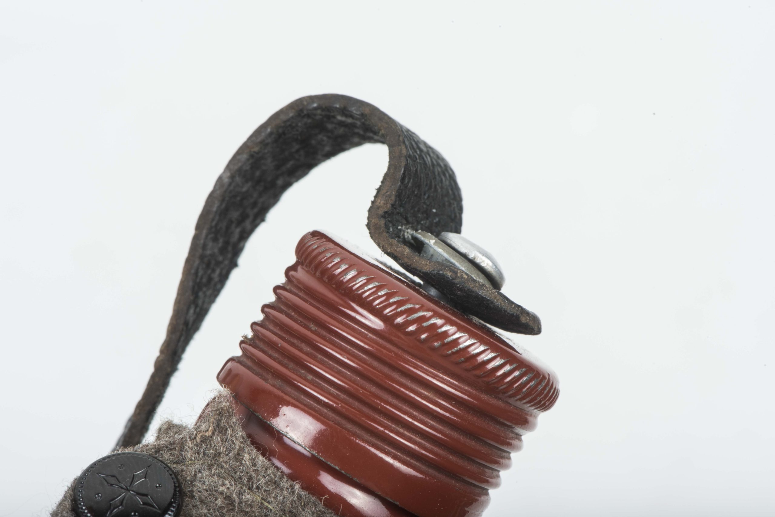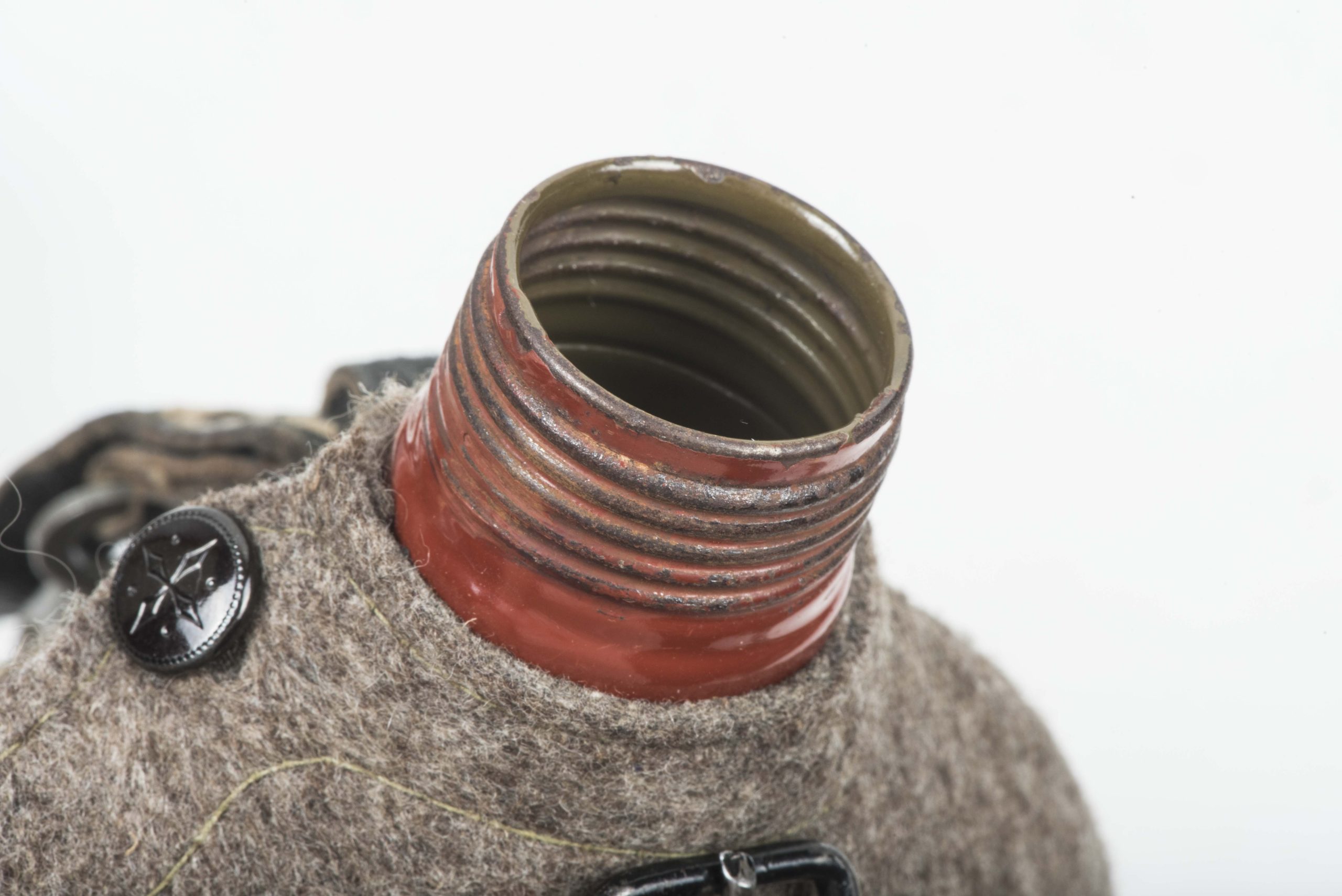 Unissued M42 canteen marked MN 44 which indicates production by Menesa Metallindustrie GmbH. Neunkirchen-Saar in 1944. The canteen comes in a textbook configuration with a matching cup. Nice original example in excellent unissued condition!