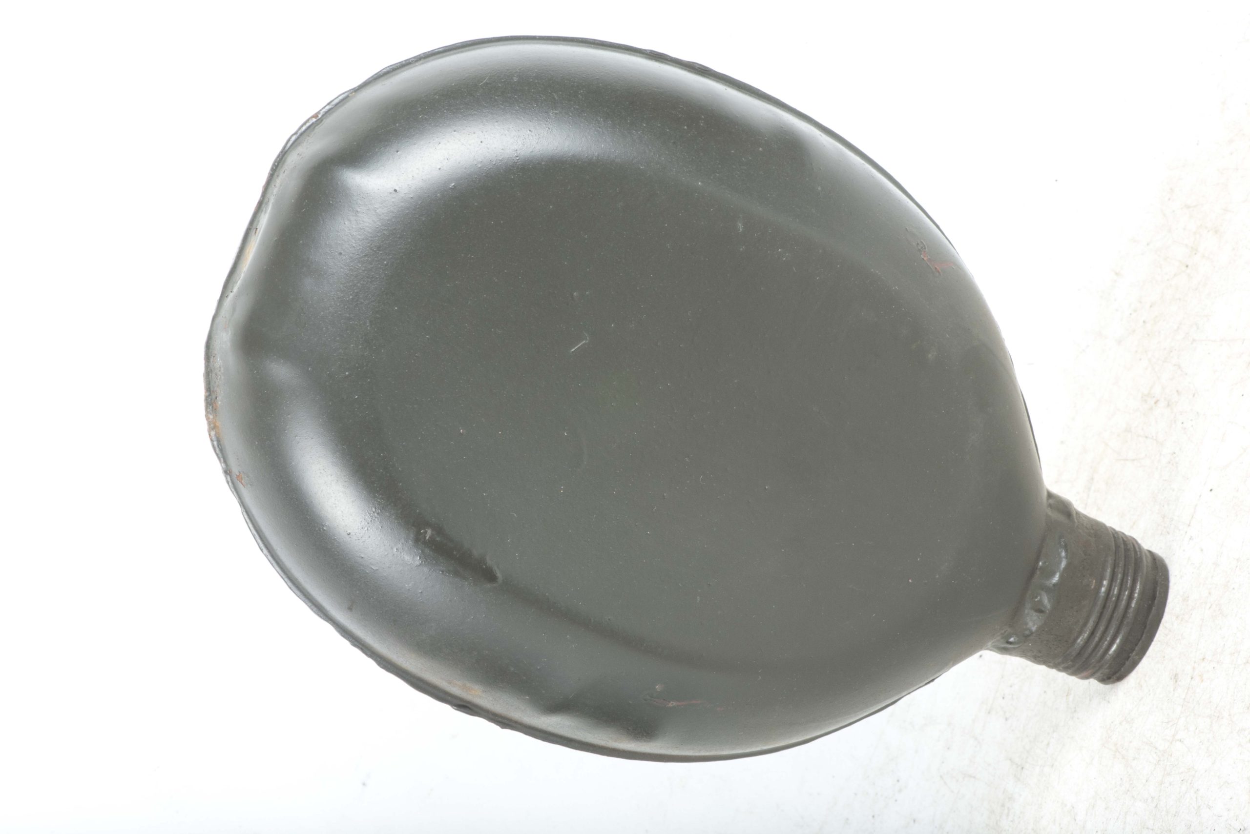 Stunning and textbook late war M42 canteen in close to mint, most likely unissued condition. The canteen is a typical late war example with a rough wool cover with small press studs and black straps. The flask itself is marked SMM 45 and the cup is marked SMM 44 which in my opinion indicates a factory mismatched example produced by Süddeutsche Metallwarenfabrik, Mussbach in early 1945 with left over stock from 1944. Excellent late war M42 which would be hard to upgrade!