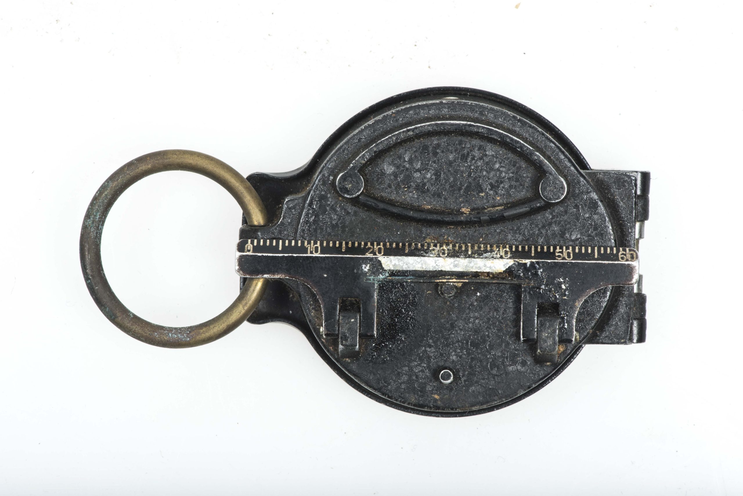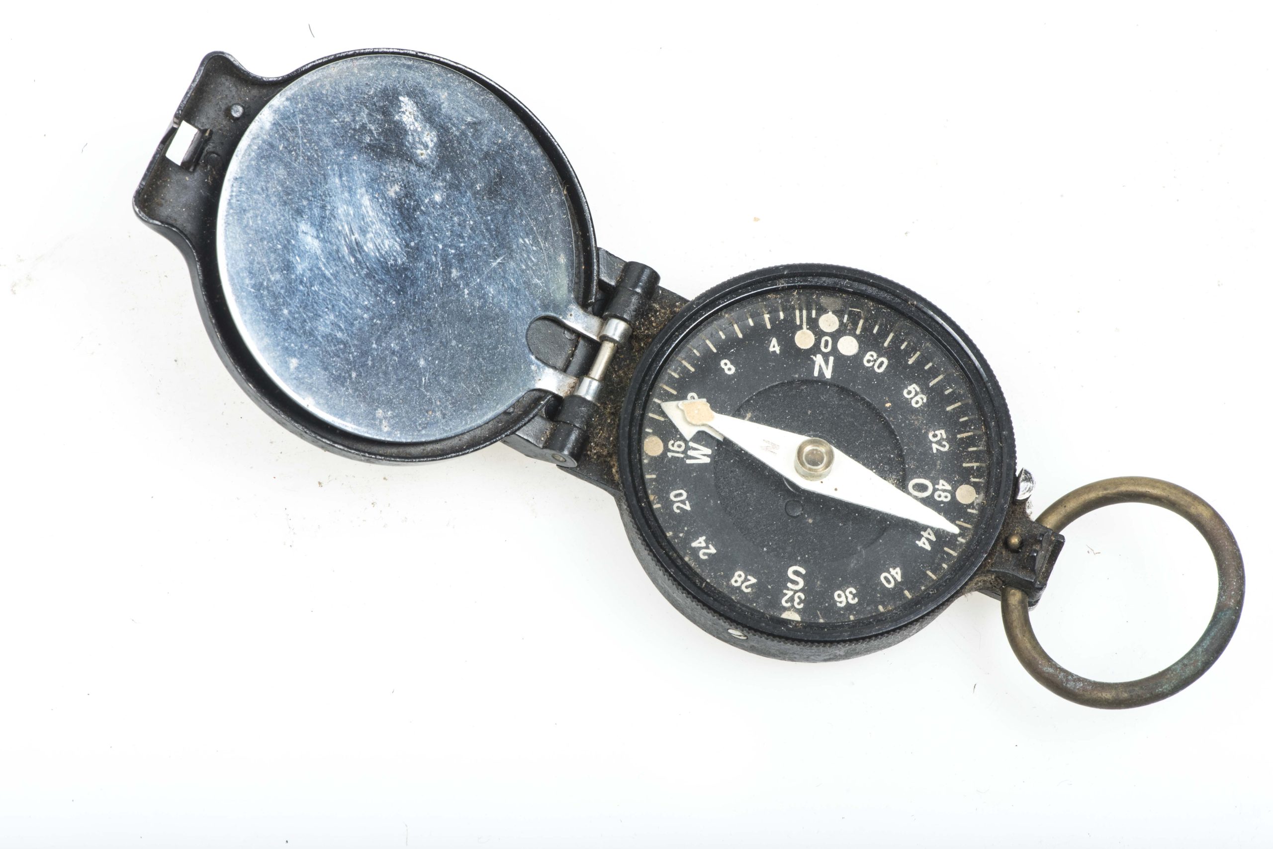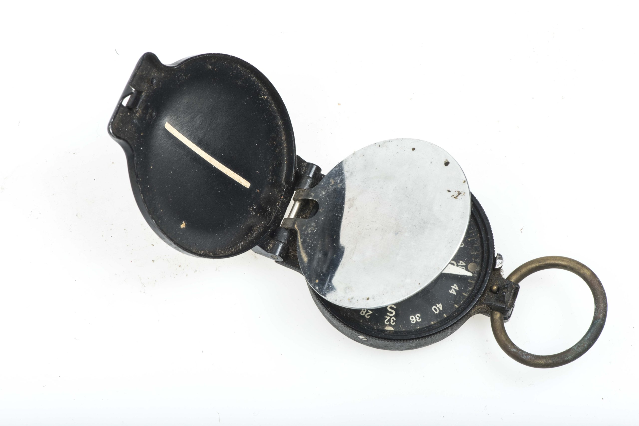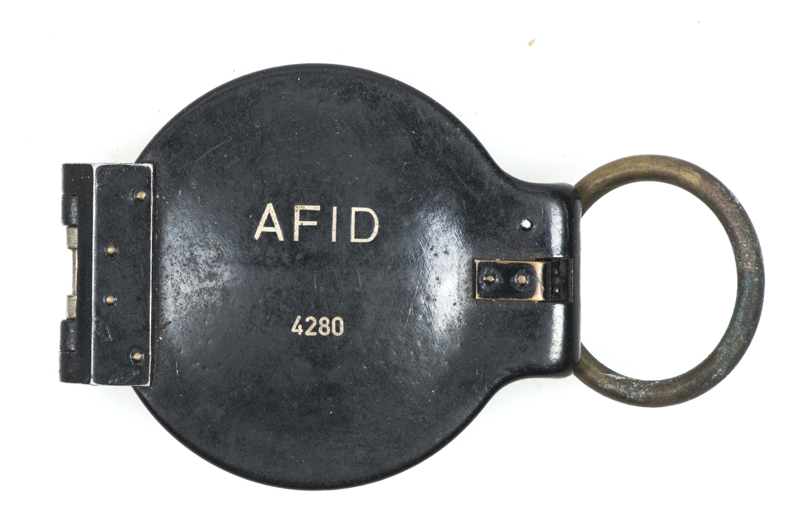 Rare Marschkompass 35 marked AFID. This is one of the rarest makers for the Marschkompass 35 in good usable condition. The marker AFID most probably indicates production by Landeslieferungs-Genossenschaft für das Feinmechaniker-Handwerk Sachsen GmbH Dresden.
