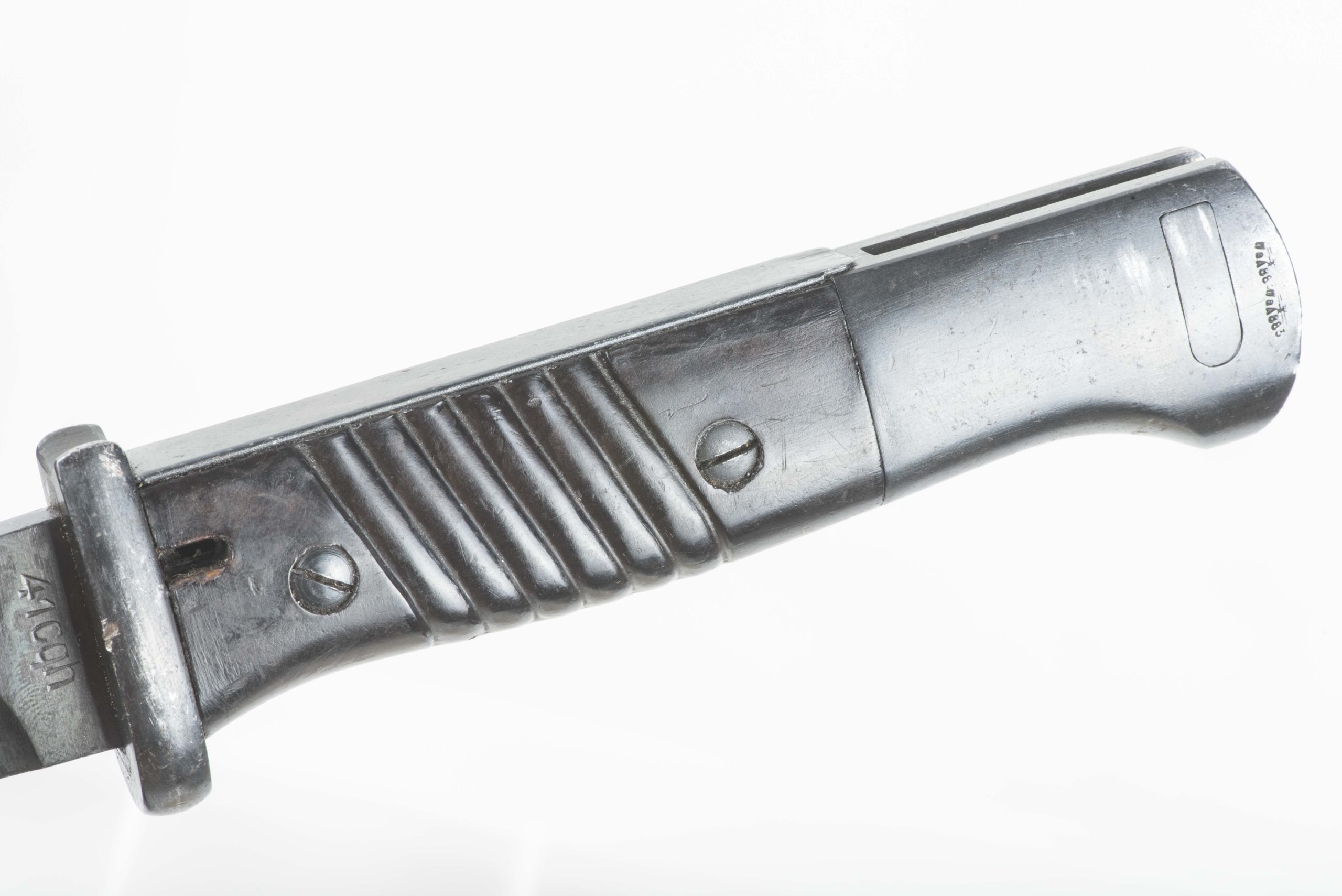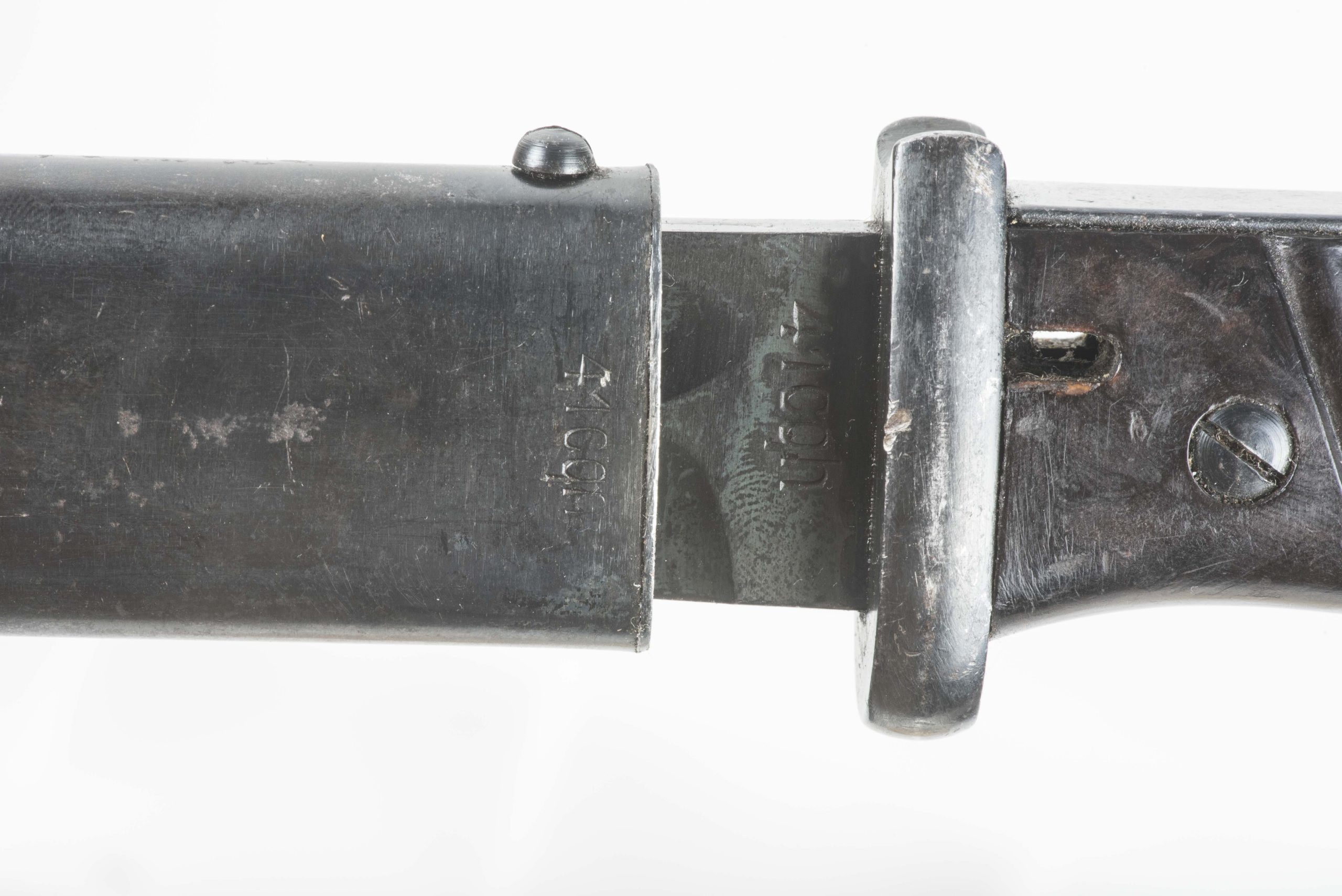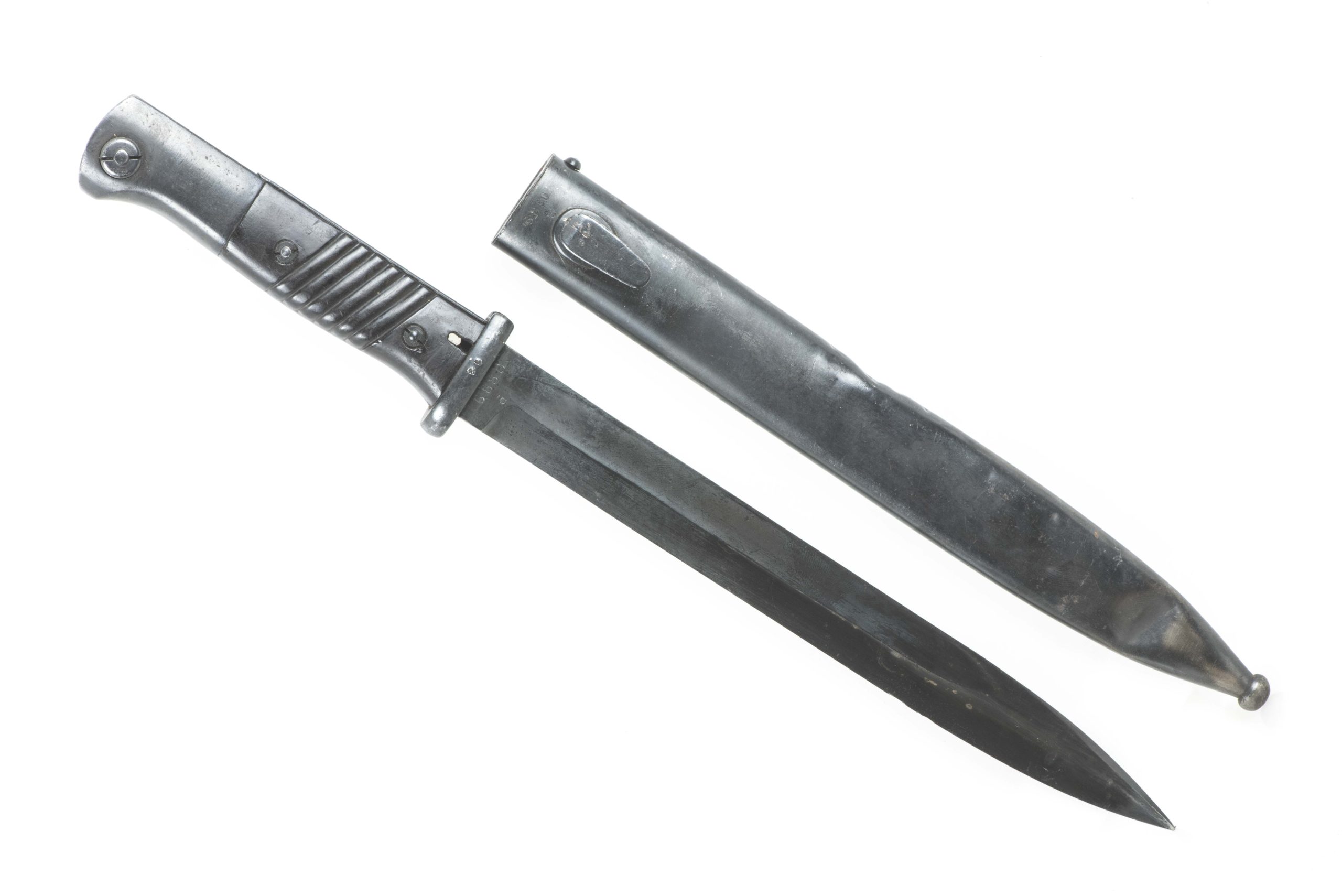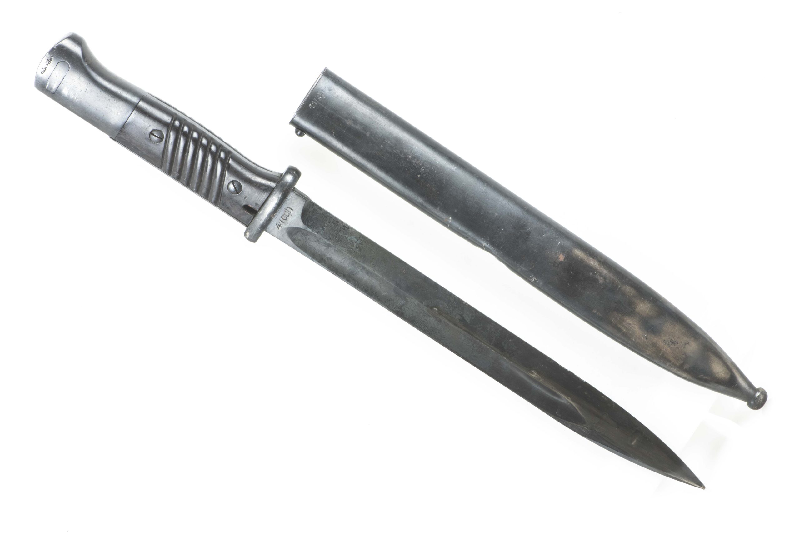 Matching K98 bayonet marked 41 cqh indicating production by Clemen und Jung,Solingen. A rare maker in good used condition but a dented scabbards which can be undented.