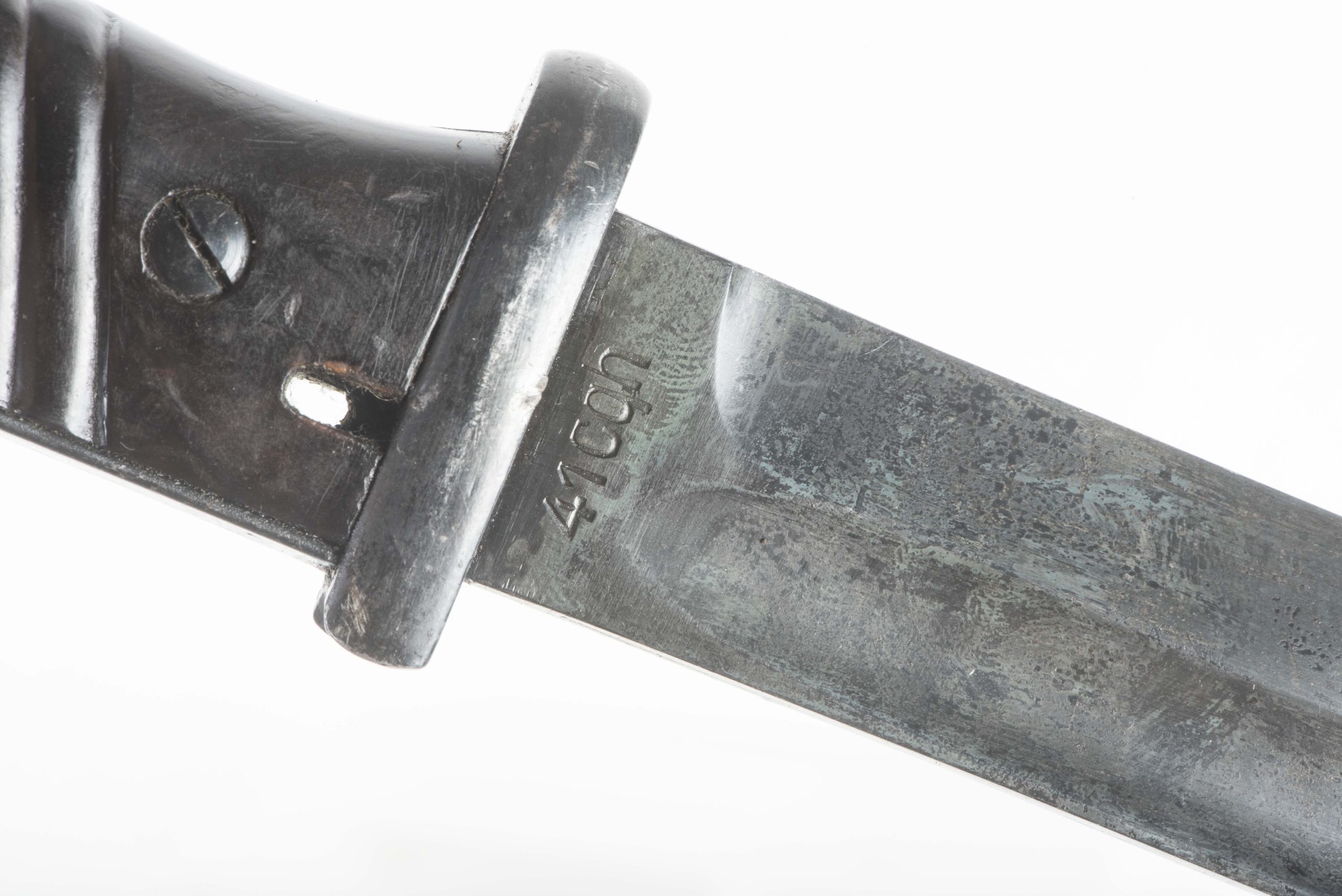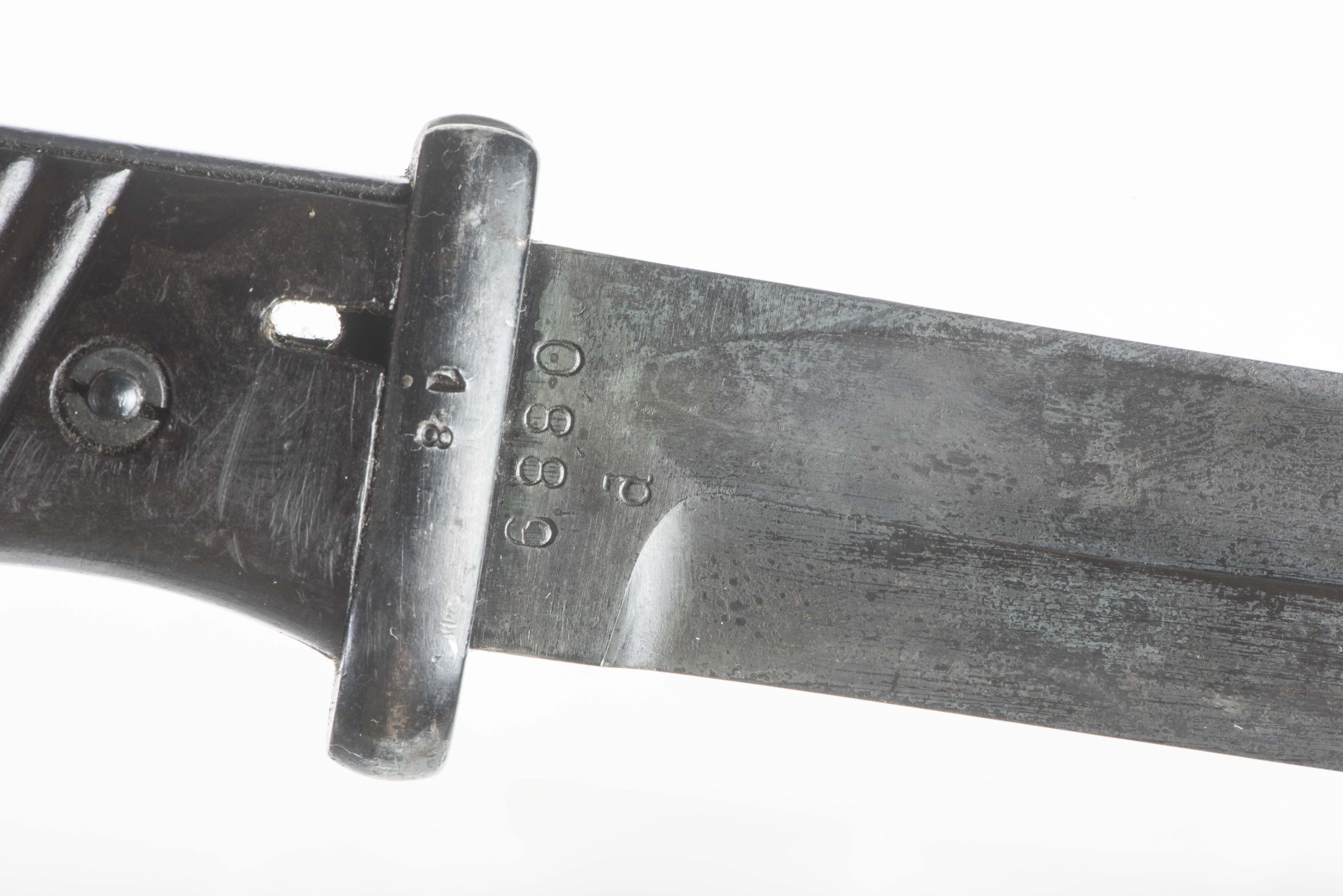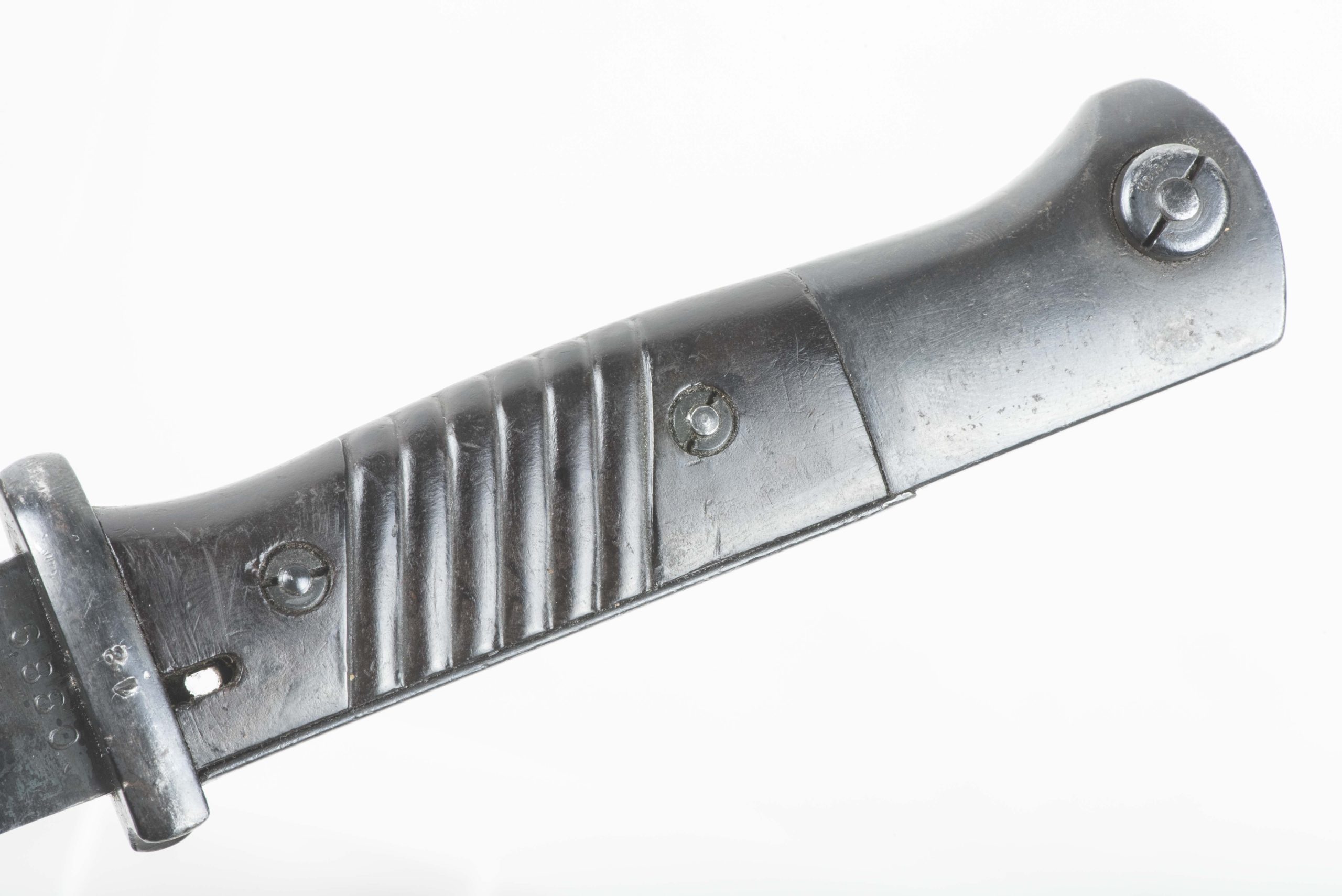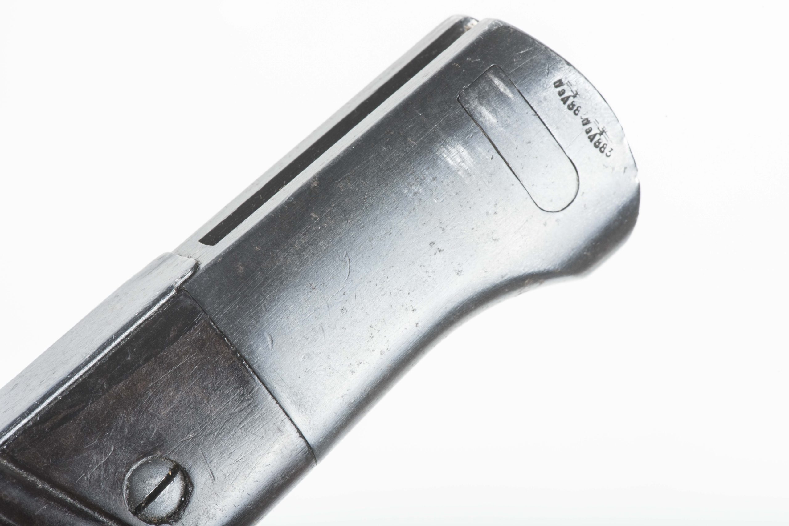 Matching K98 bayonet marked 41 cqh indicating production by Clemen und Jung,Solingen. A rare maker in good used condition but a dented scabbards which can be undented.