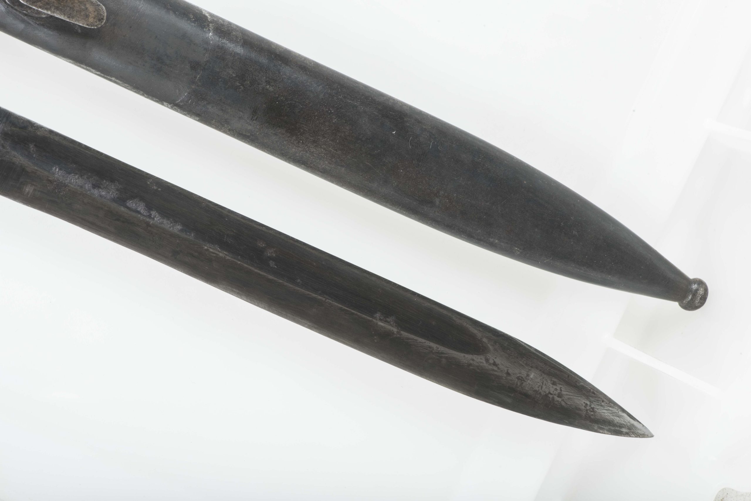 Very nice original and matching K98 bayonet marked fze 44 indicating production by F.W. Holler, Solingen. Nice mid to late war example with the scarcer fze marking and nice red bakelite grips. The bayonet has been sharpened at some point and retains its original factory finish.