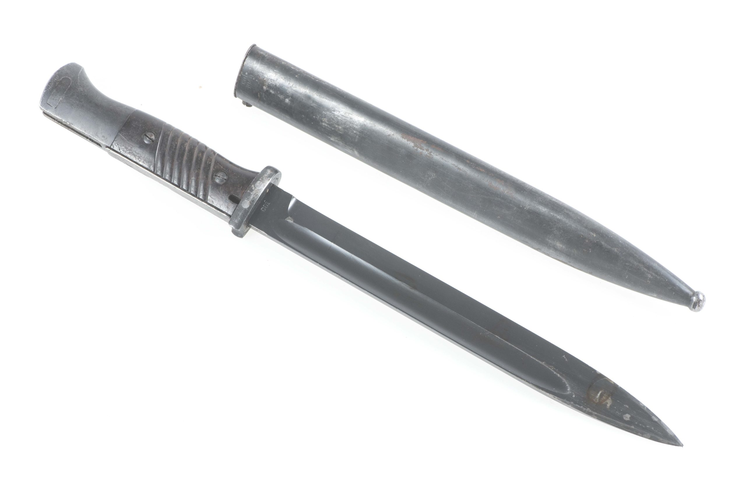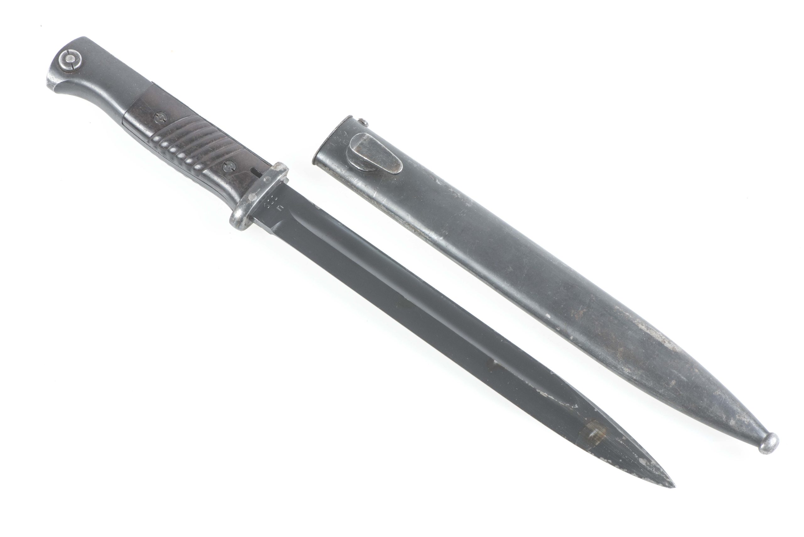 Matching K98 bayonet marked cof 1940 #122 in excellent condition. The bayonet retains most if not all of its factory blueing and has a very low serial number.