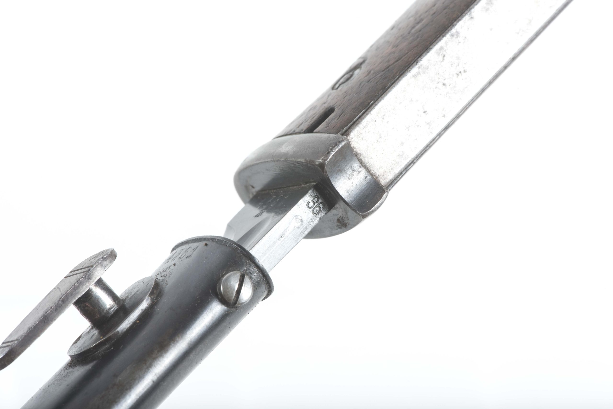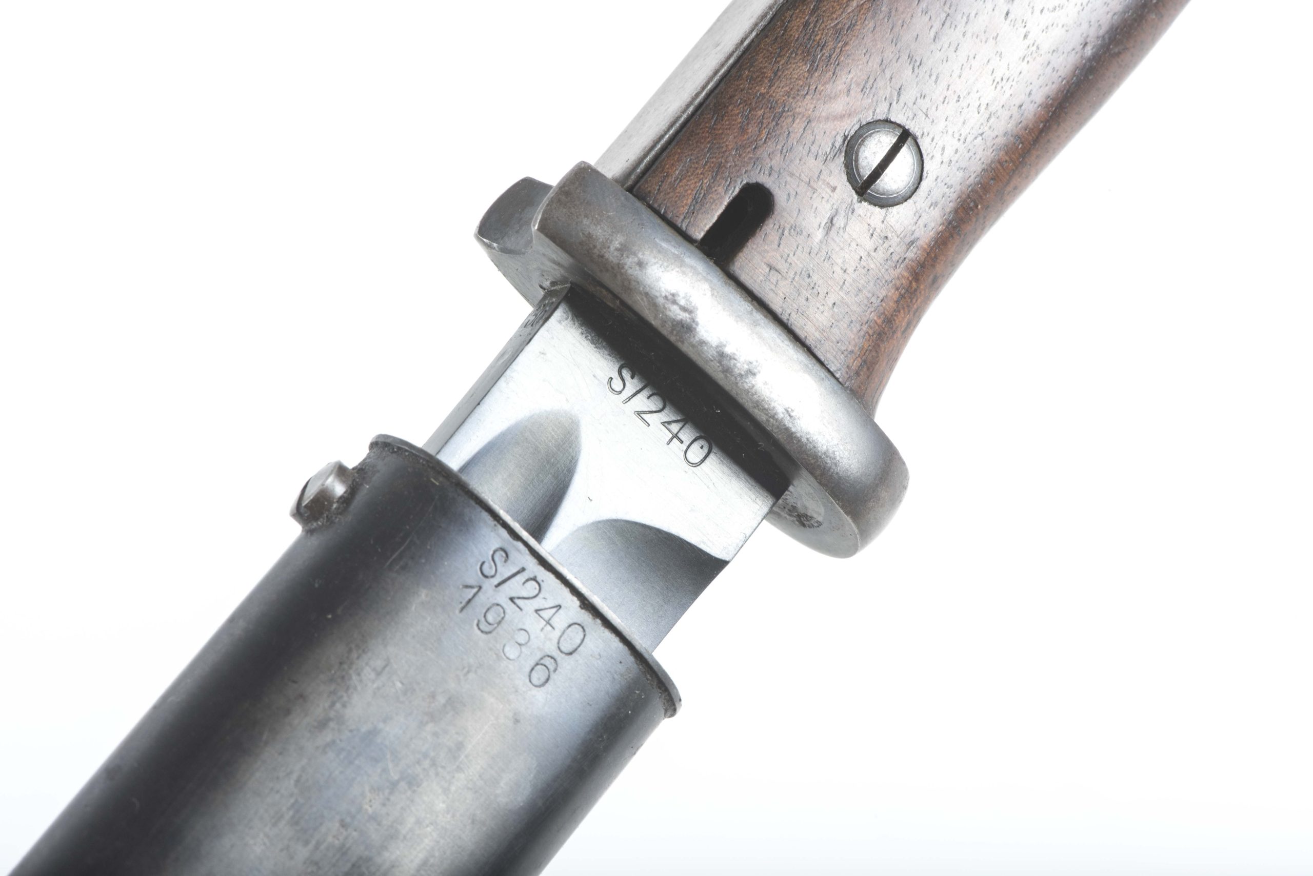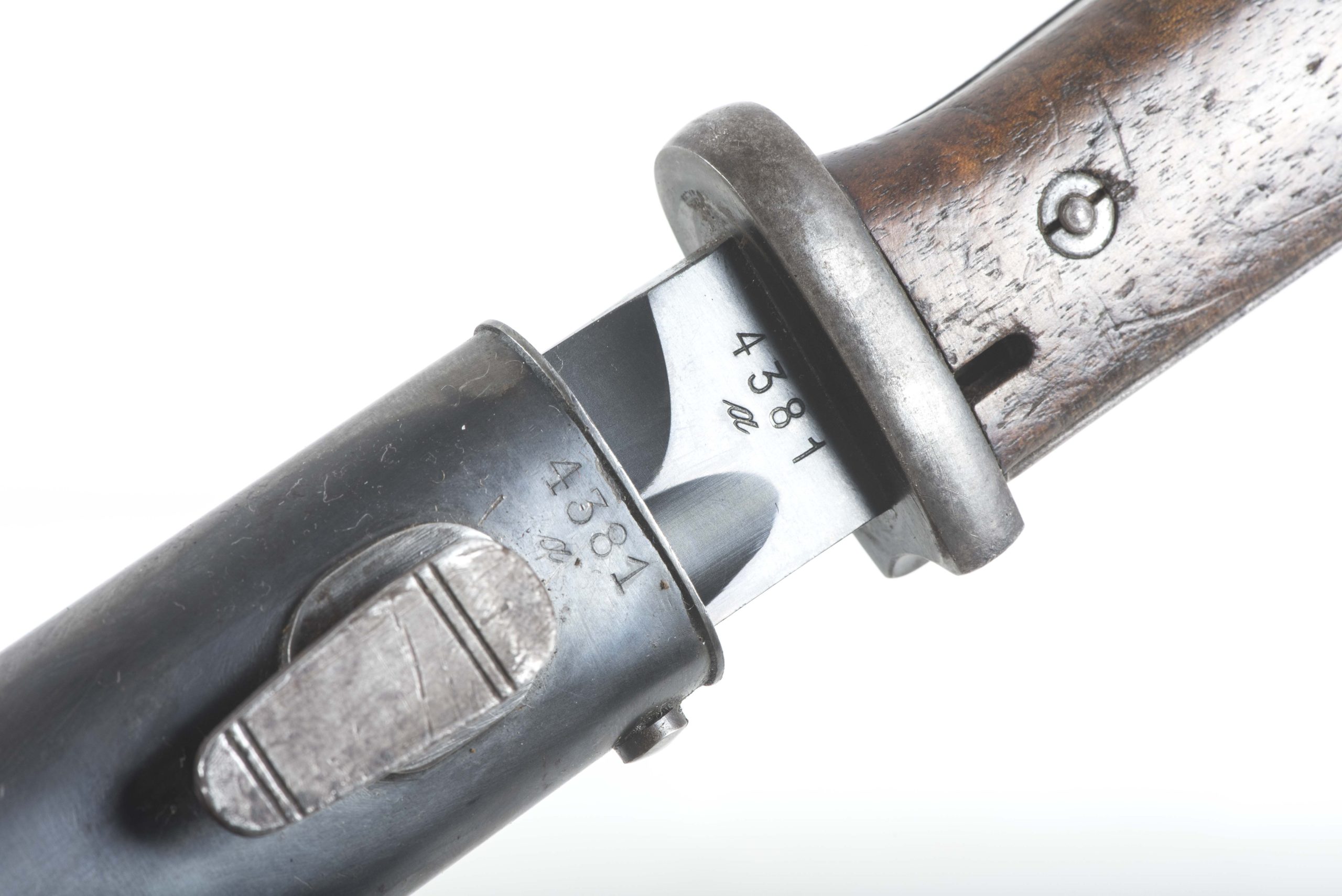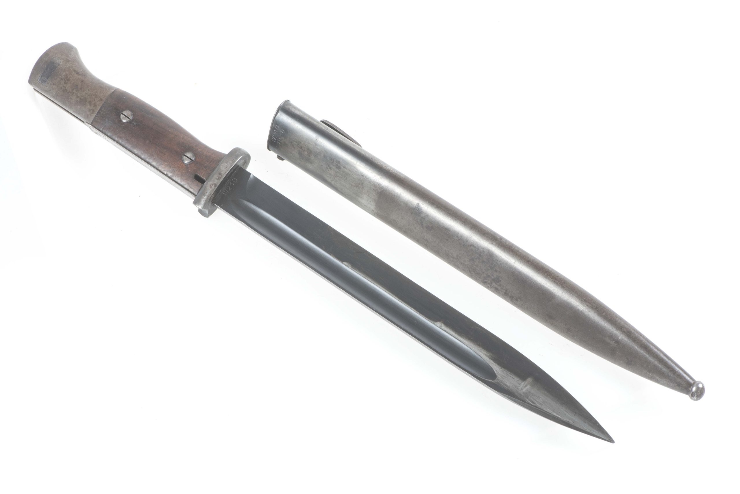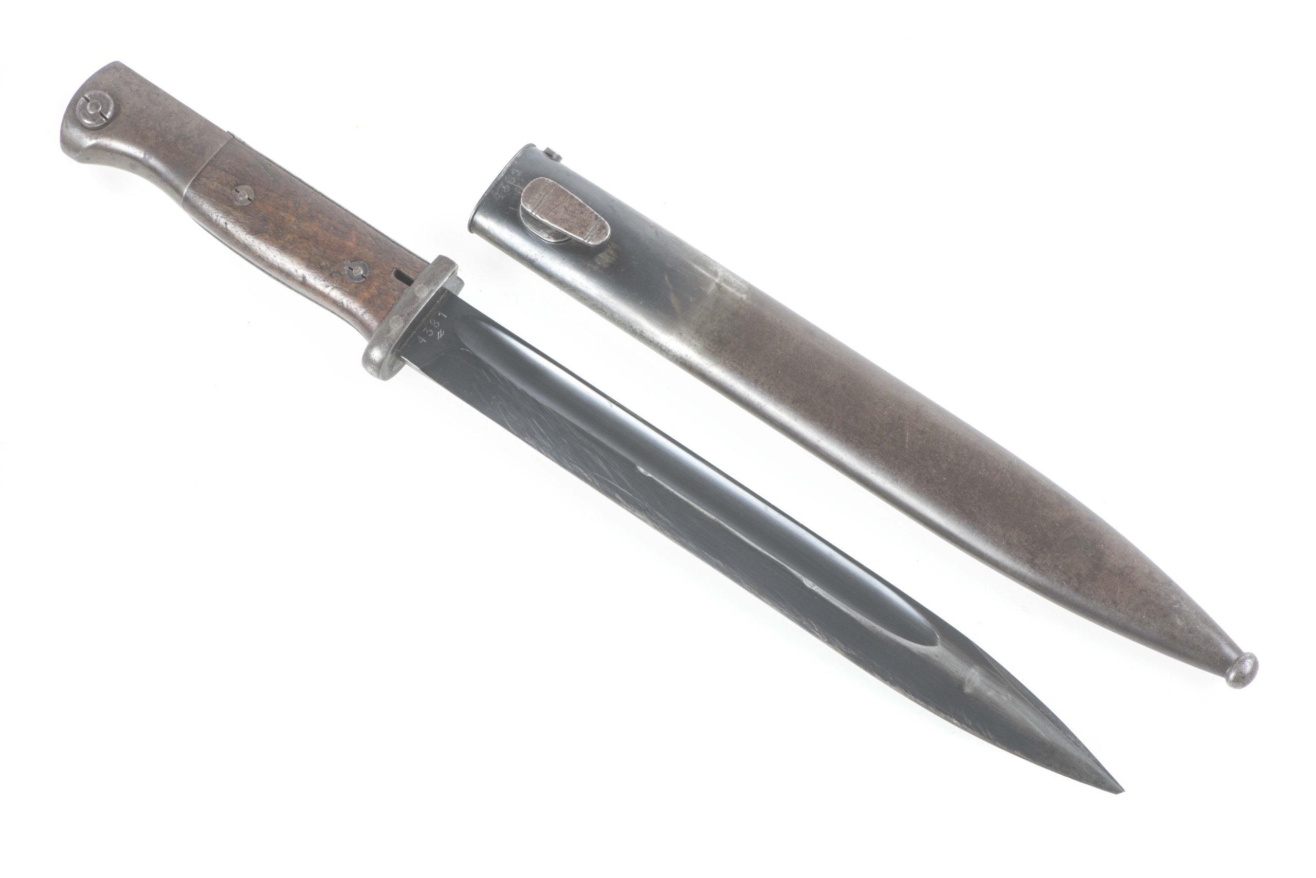 Matching K98 bayonet marked S/240 1936 #4381 indicating production by F. Herder. Hard to find maker in good condition!