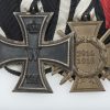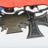 First and second world war medal bar with 4 awards. The bar is a neat example made by Ordensdekorationen Bruno Görlach, Berlin. The bar has three imperial awards consisting of a Iron Cross second class, Frontkämpfer medal and a Prussian Treue Dienste bei der Fahne IX. Additionally a world war two Treue Dienstkreuz 25 Jahre. Attractive medal bar in excellent condition!