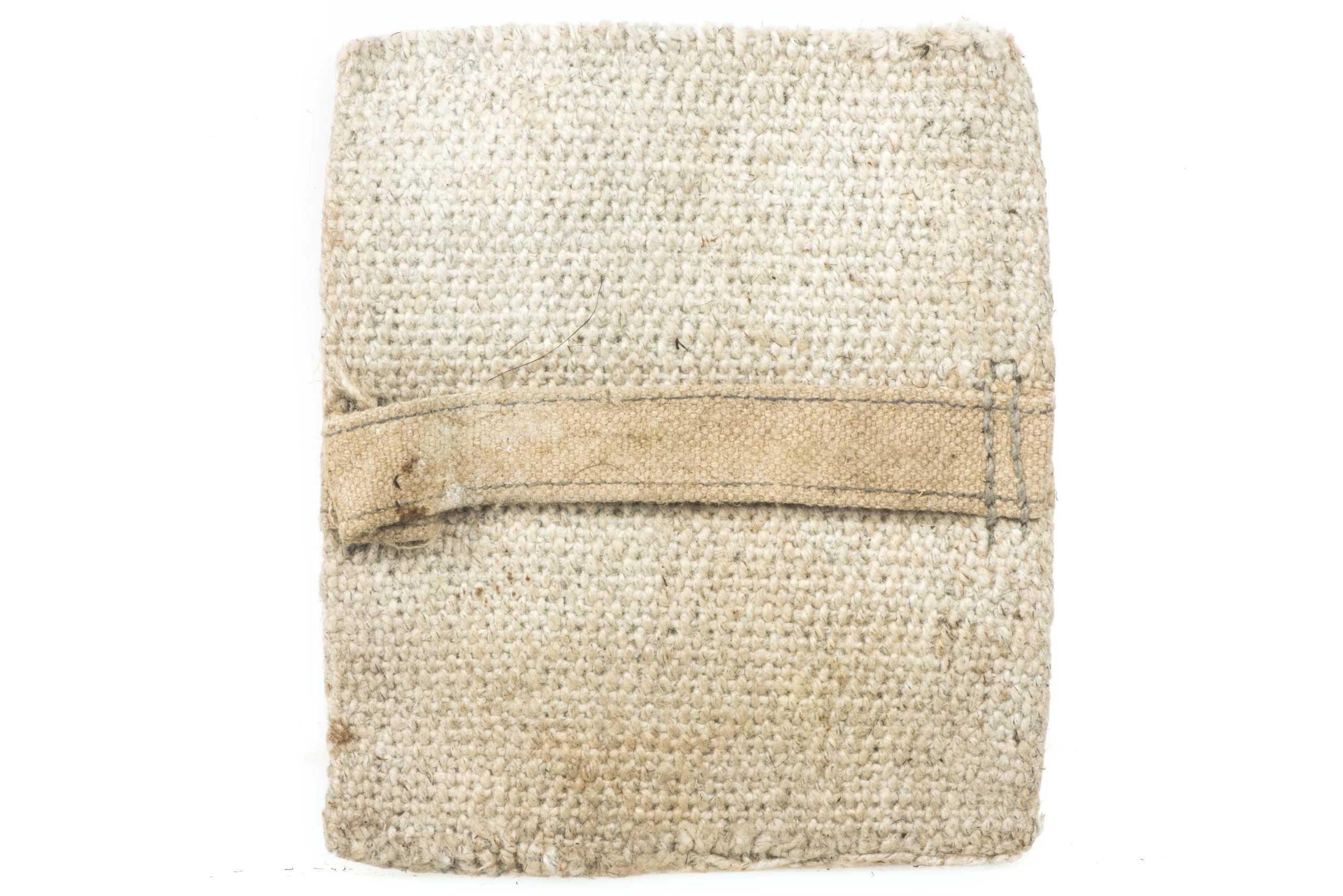 Rare wartime barrel changing mitt for the MG34 and MG42. When firing the MG34 and MG42 continuously the German soldiers where presented with a harsh and difficult task: changing the barrel. The MG34 and MG42 where both made with a quick-change barrel and to help in the changing of the barrel these gloves where invented and issued. These gloves where issued with the accessories of the MG34 and MG42. It is simply used by placing the hand under the strap and using the pad to cover your hand when you grab the hot, sometimes even glowing barrel. The barrel is then placed in the Laufschützer to cool down and a cool new barrel is inserted. According to regulations, the barrel had to be changed after 150 rounds fired continuously. Hard to find item!