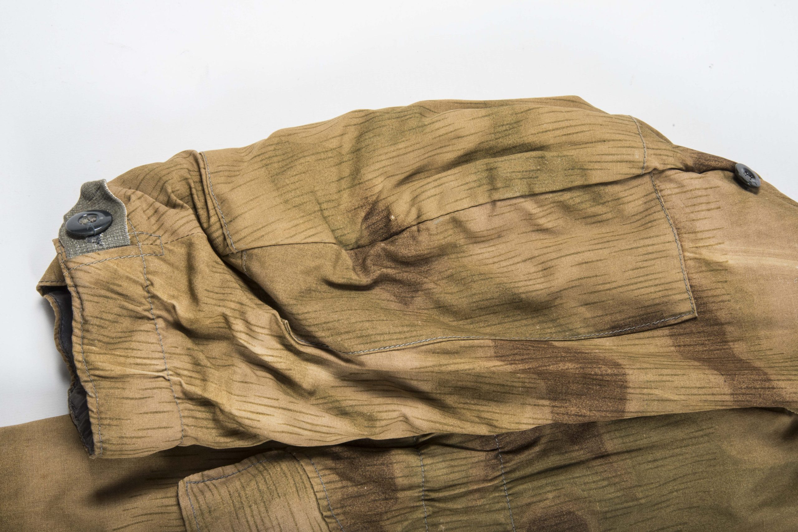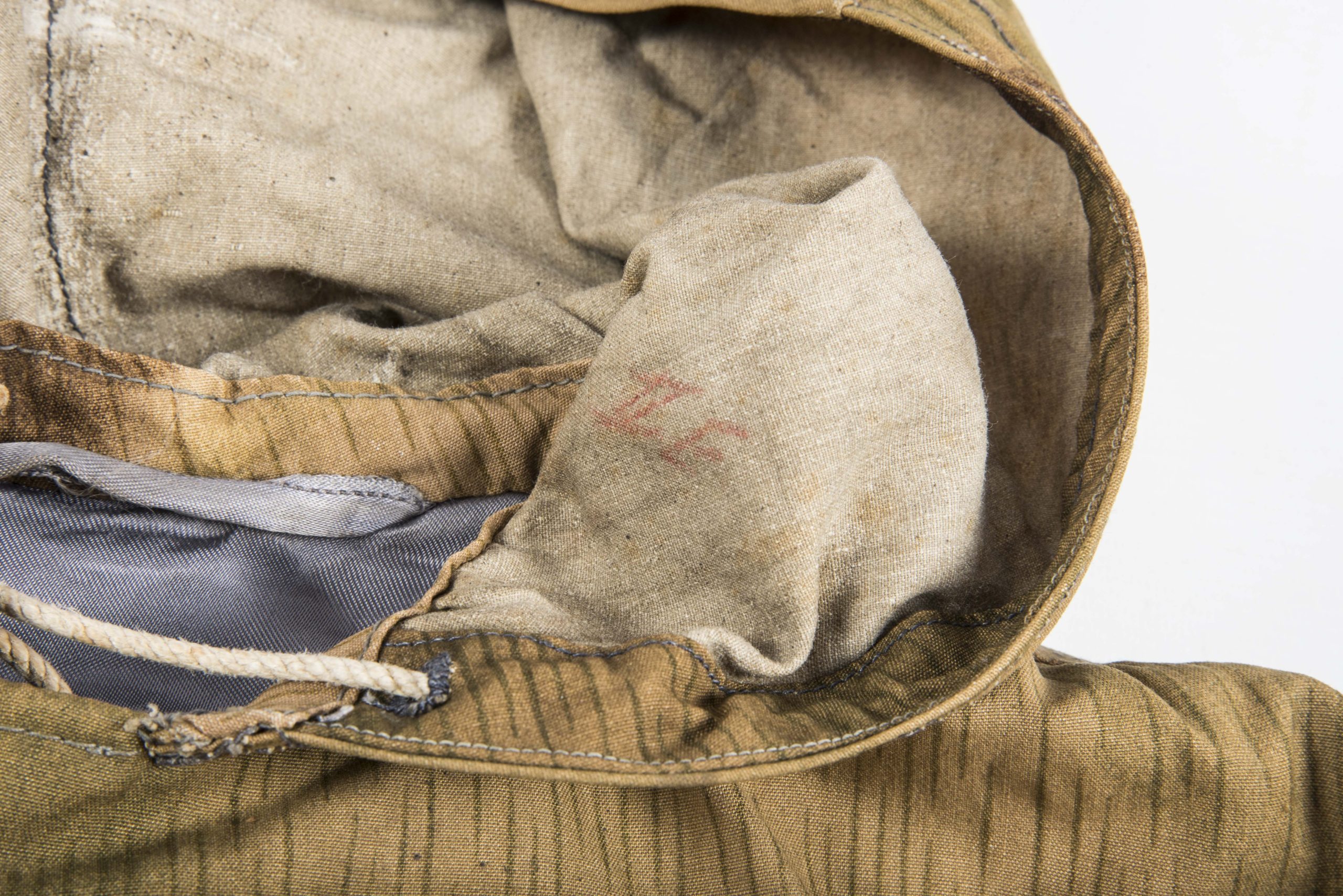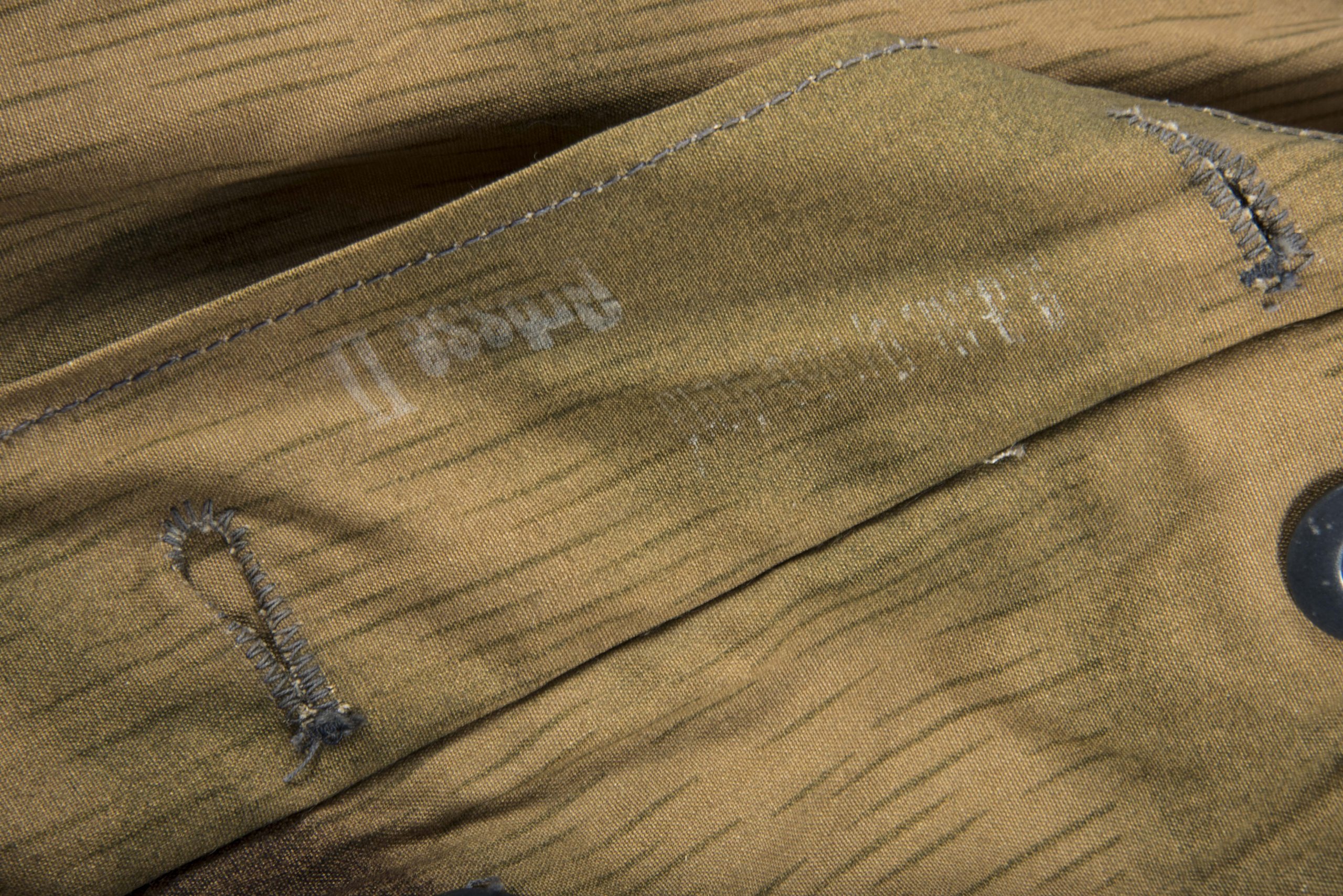 Textbook winter parka jacket executed in Sumpftarn camouflage. The trousers are nicely marked RBNr. and II which would indicates a medium size which would easily fit any mannequin! The camouflage used for the construction of this garment is the so called hard-edged Sumpftarn which was developed in 1943. The jacket is in excellent condition without any damages and very bright beautiful colours. Hard to upgrade!