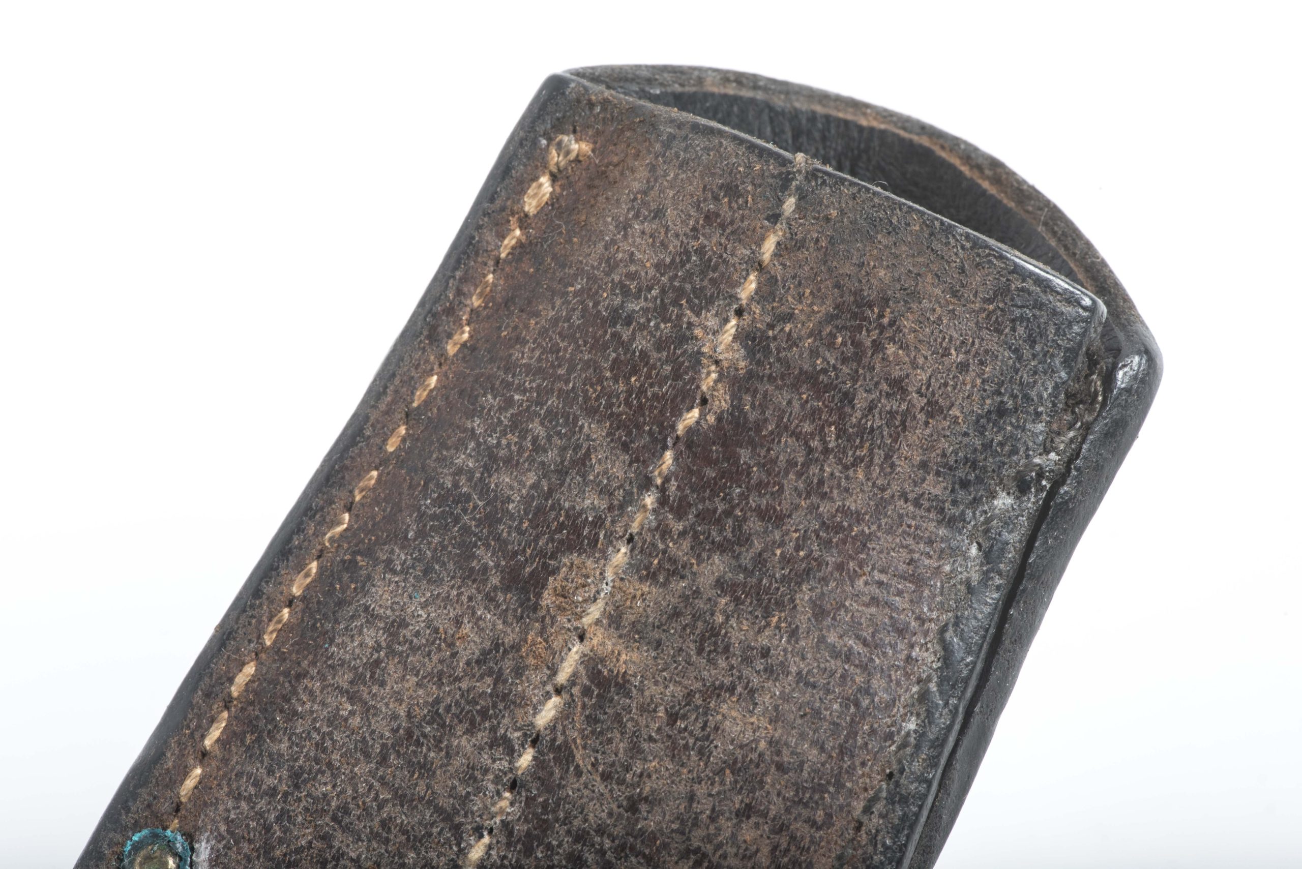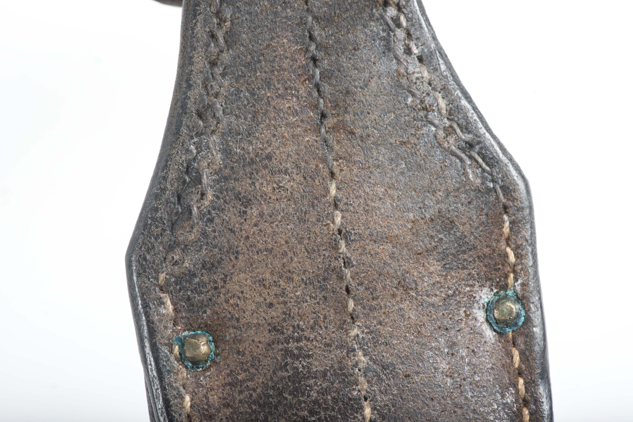 Pre war K98 bayonet frog with brass rivets, hard to read markings but hard to find very early example!