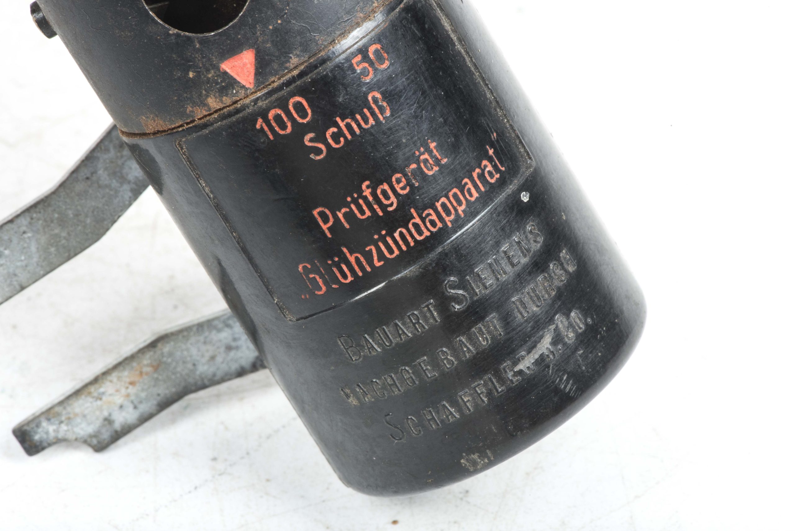 Rare original bakelite testing device or Prüfgerät for the Glühzündapparat in very good condition. The testing device is manufactured by Schaffer & Co. based on Siemens its design. This example features a WaA ink marking on the bottom. Hard to find as a spare!