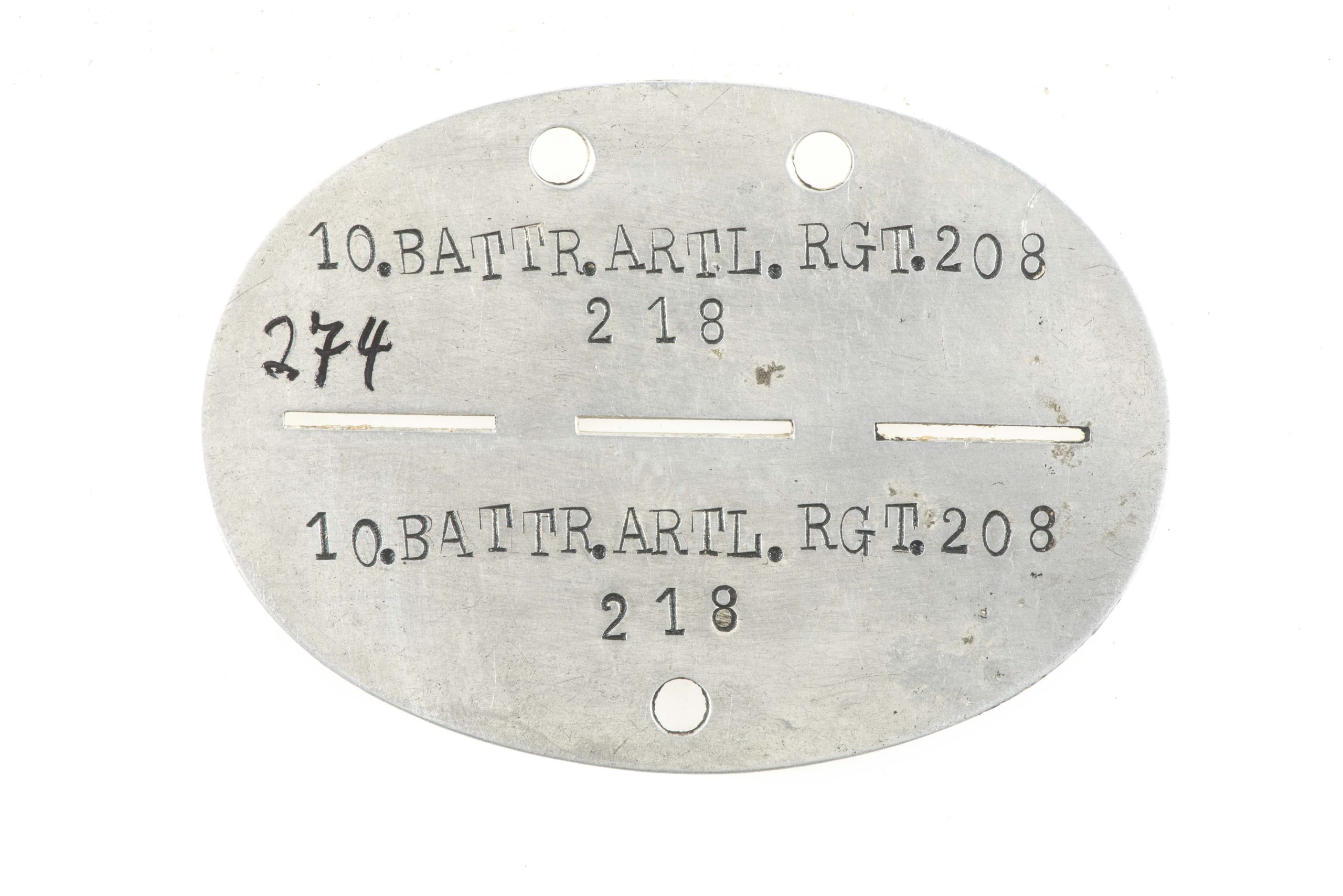 Published German ID disc or Erkennungsmarke marked 10. Battr. Art.L.Rgt.208