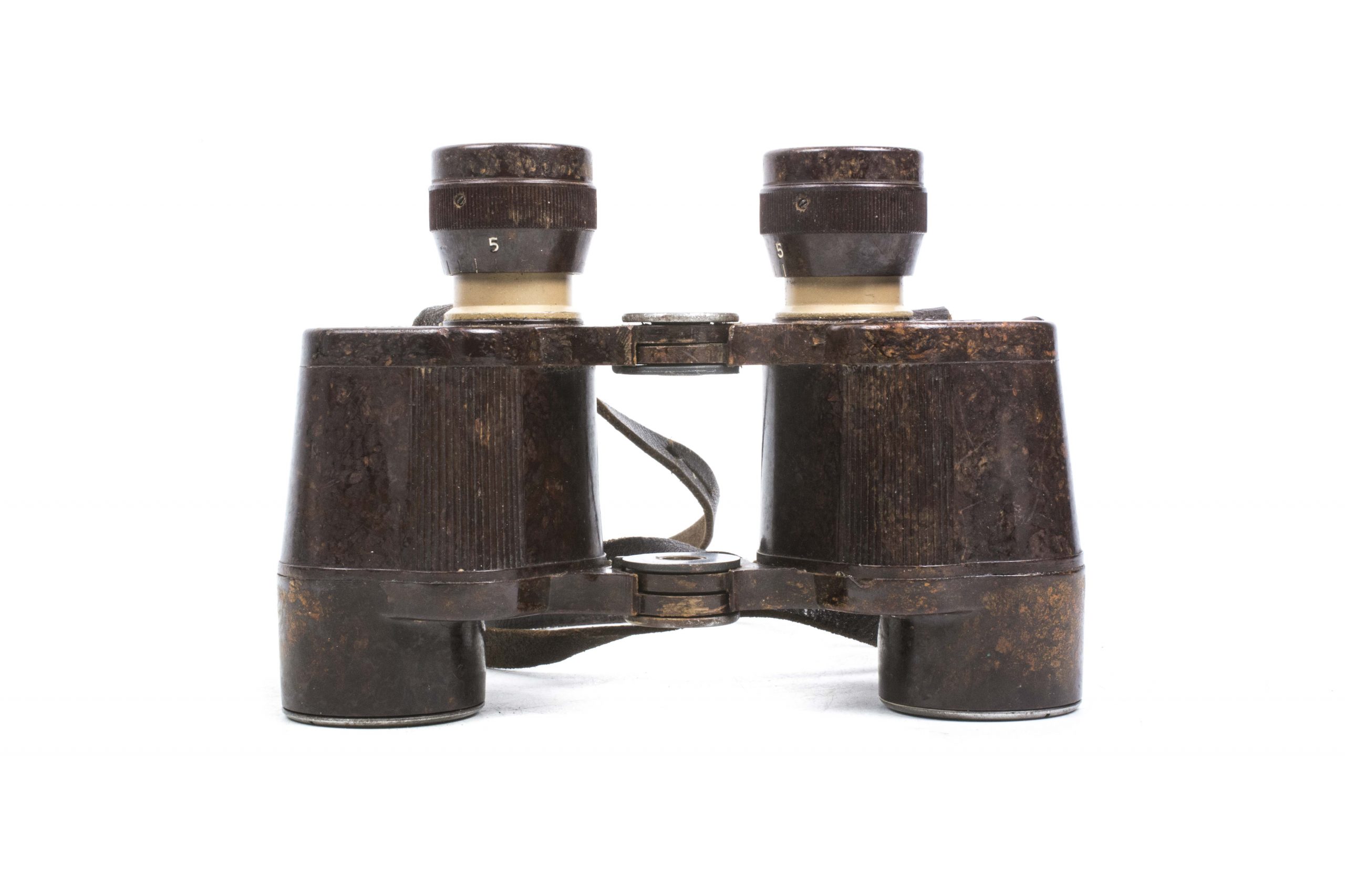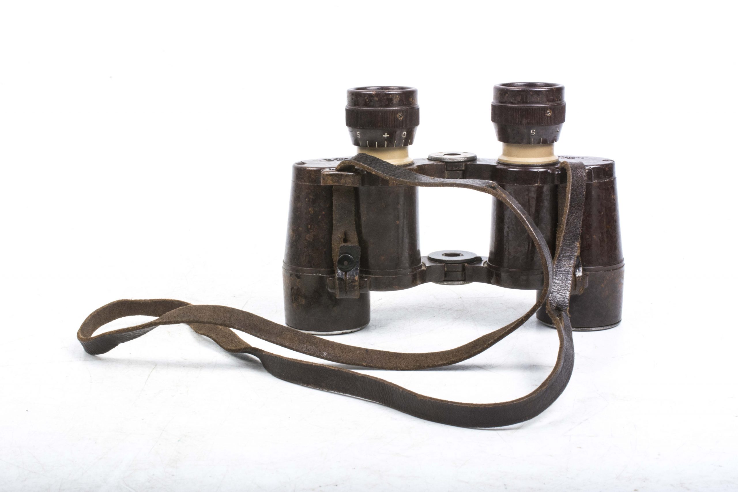 A stunning pair of 6×30 Dienstglas or binoculars manufactured out of Bakelite. The binoculars are nicely marked cxn which indicates production by Emil Busch A.-G., Rathenow. These Bakelite binoculars were produced to reduce the usage of metal in the production process and are rare late war production! The binoculars retains the original leather strap which is specifically issued with these bakelite binoculars and is virtually always missing. One of the rarest bits of equipment used by the German army which is highly collectable and IMO hard to upgrade!