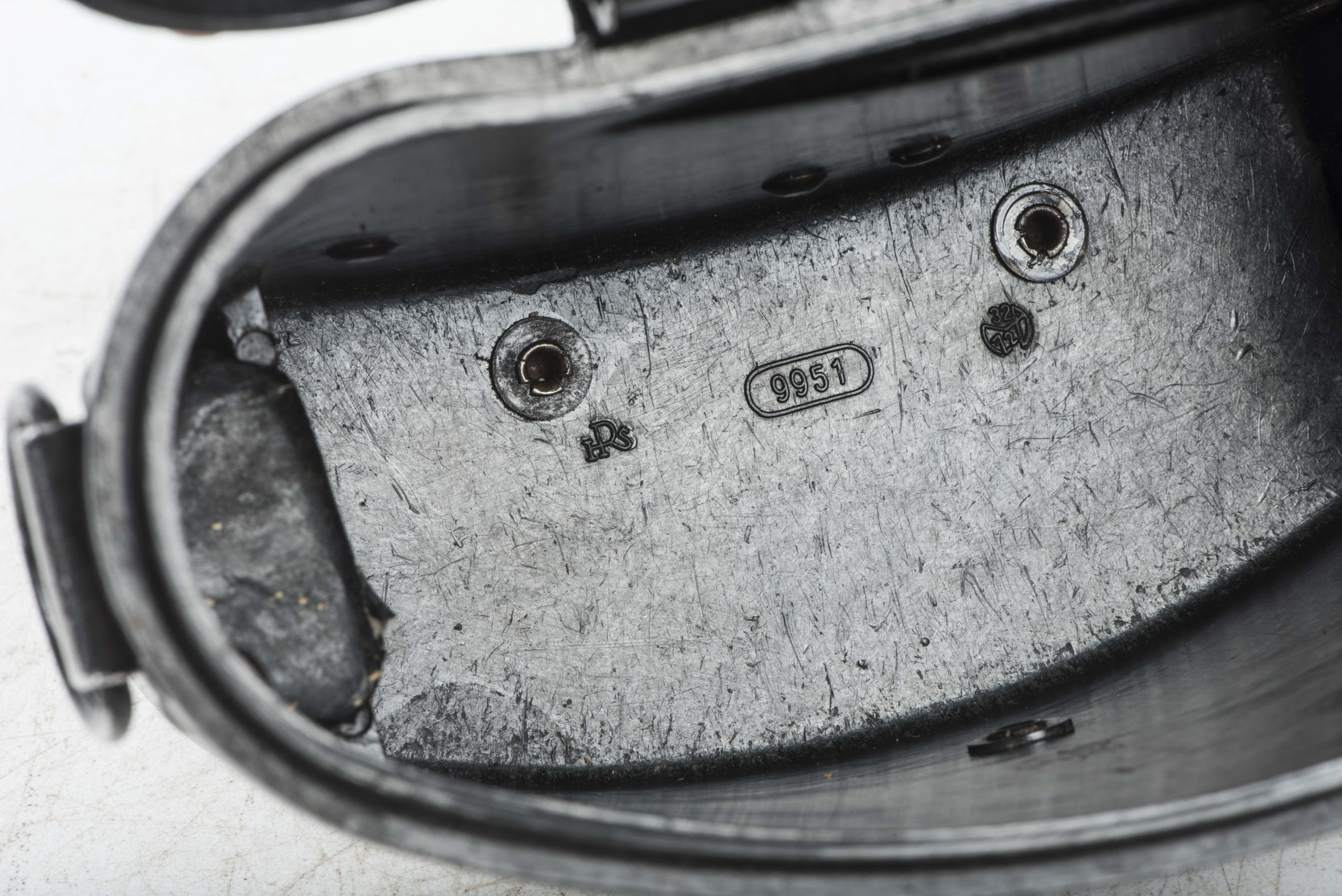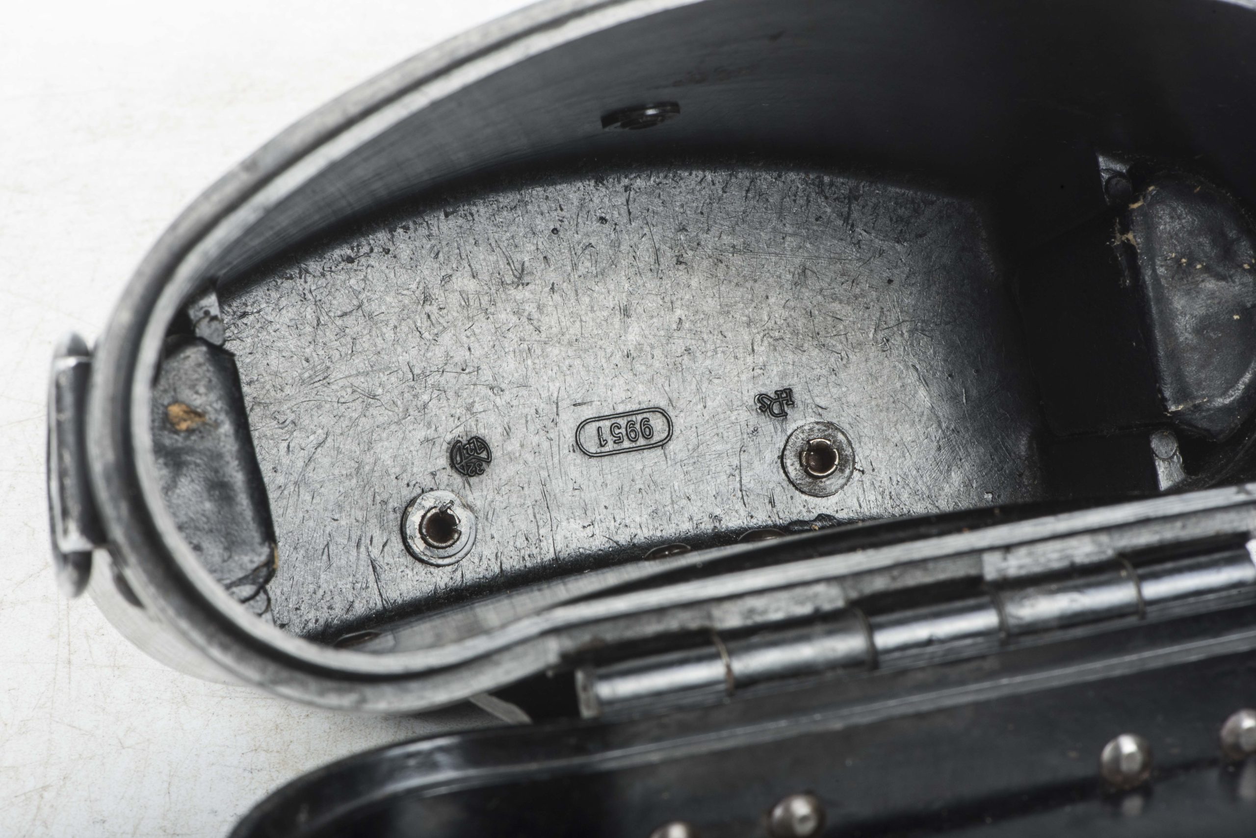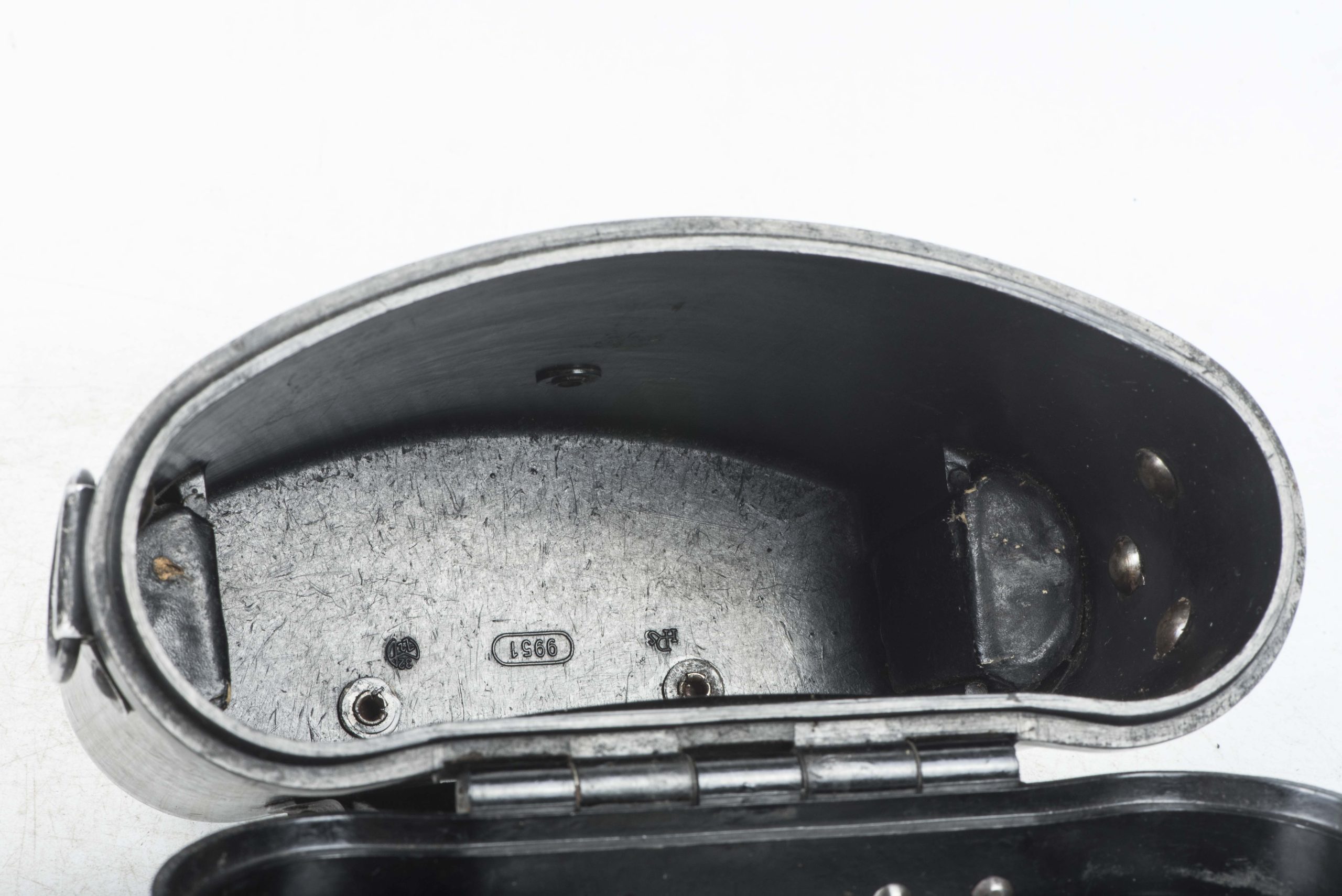 Black bakelite 6×30 Dienstglas case in excellent condition. Textbook example with all functional straps, cushions and pull tab. Rare example with the circular marking on the lid. Typical example in great condition!