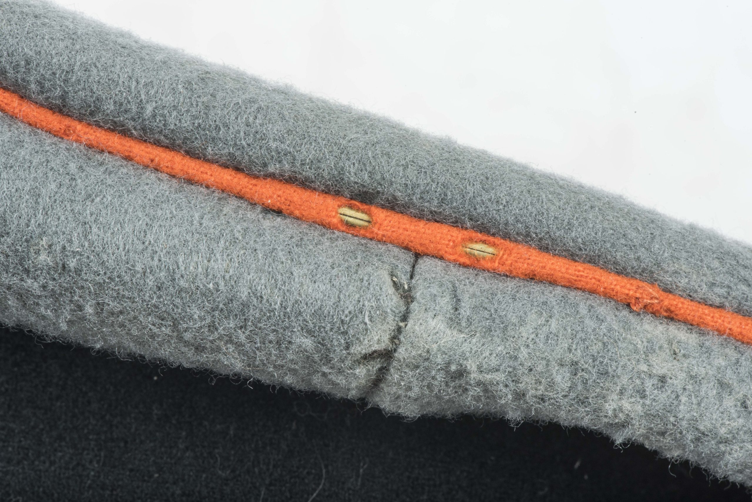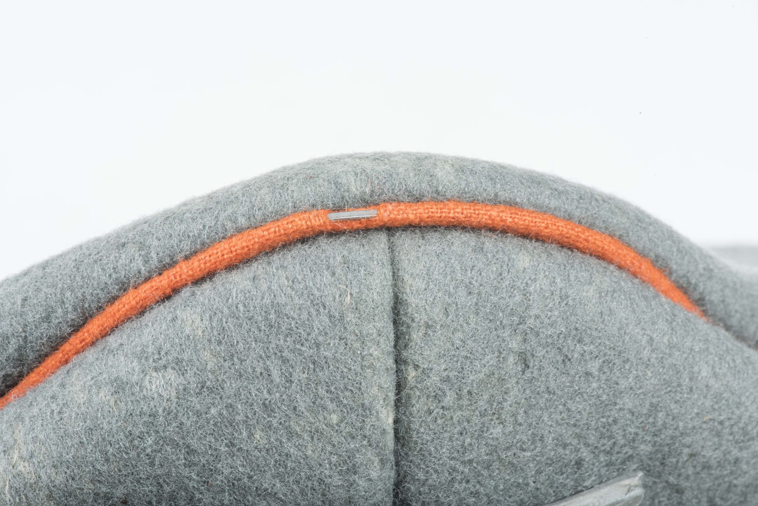 Rare Heer Feldgendarmerie officer visor by Luxus in used condition. The visor is a typical example with true orange piping indicating Feldgendarmerie. At some point its insignia was upgraded from bullion to metal. Very hard to find visor!