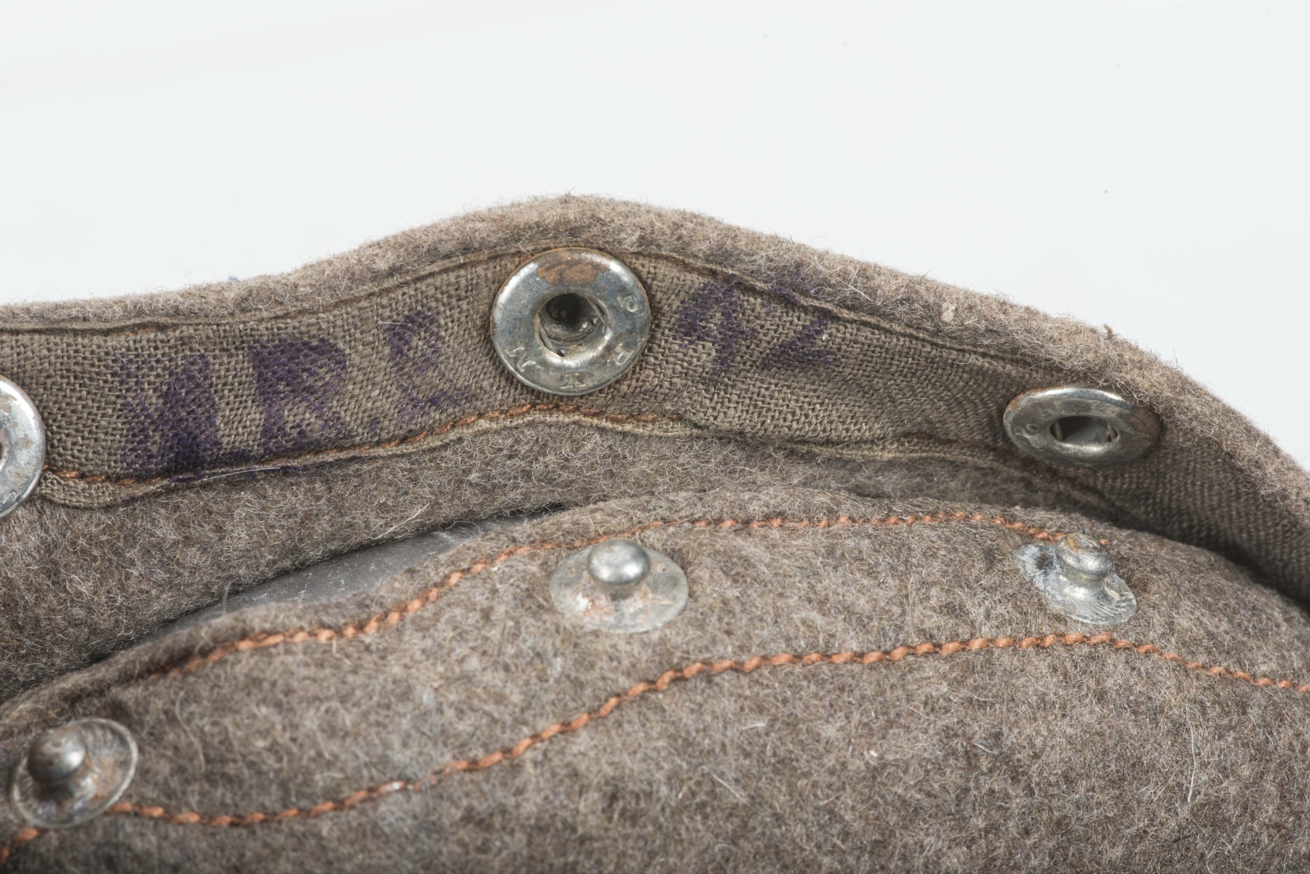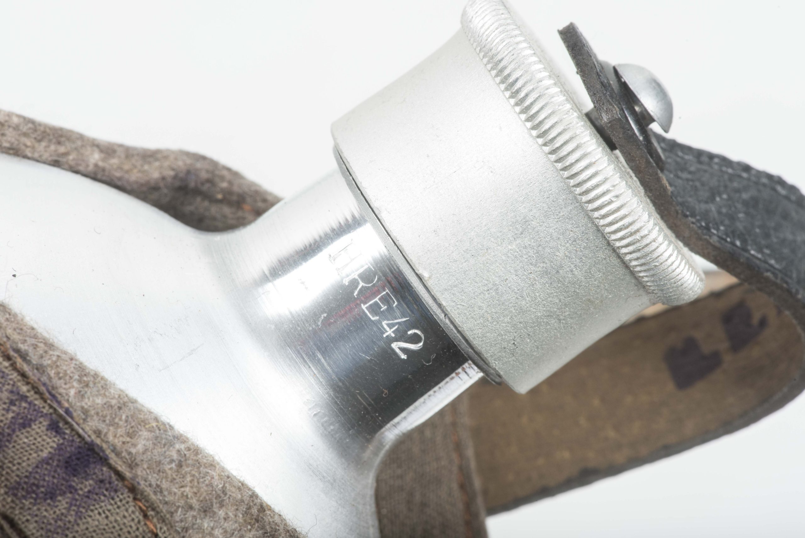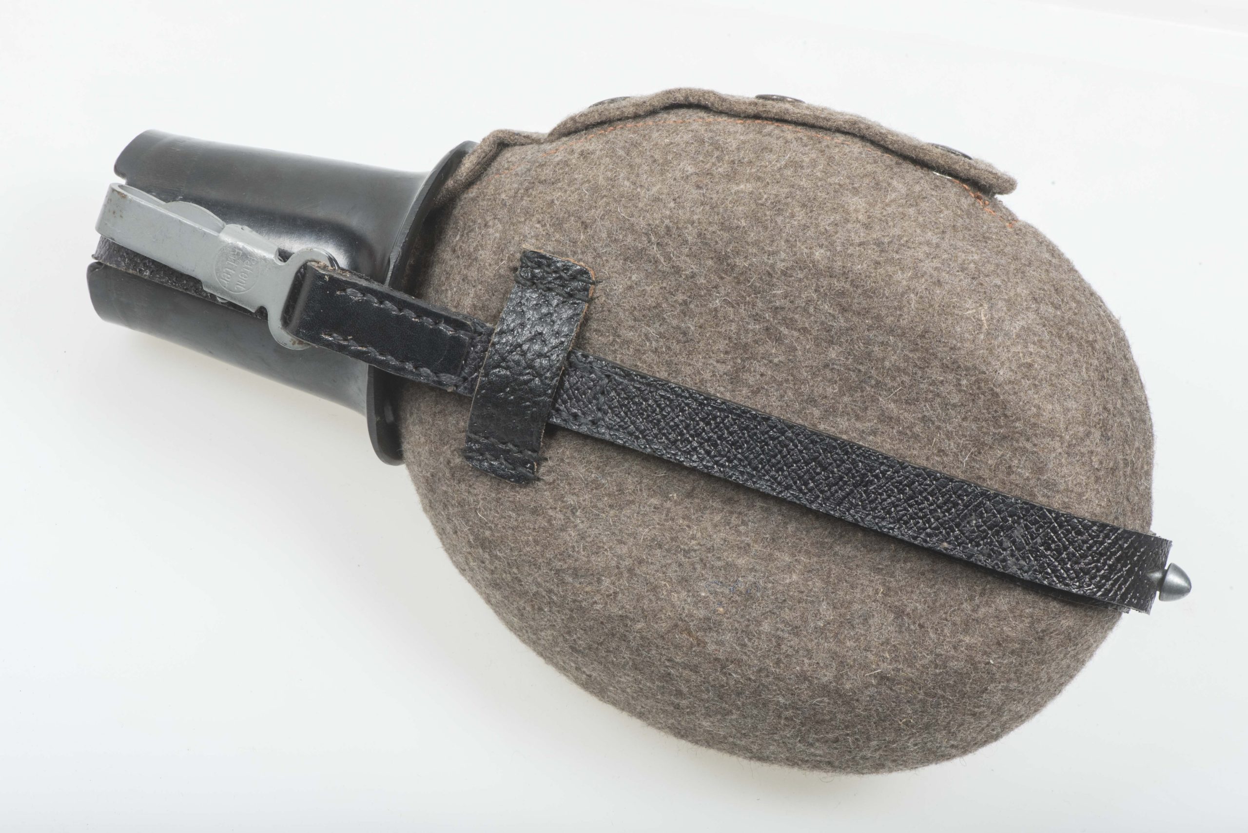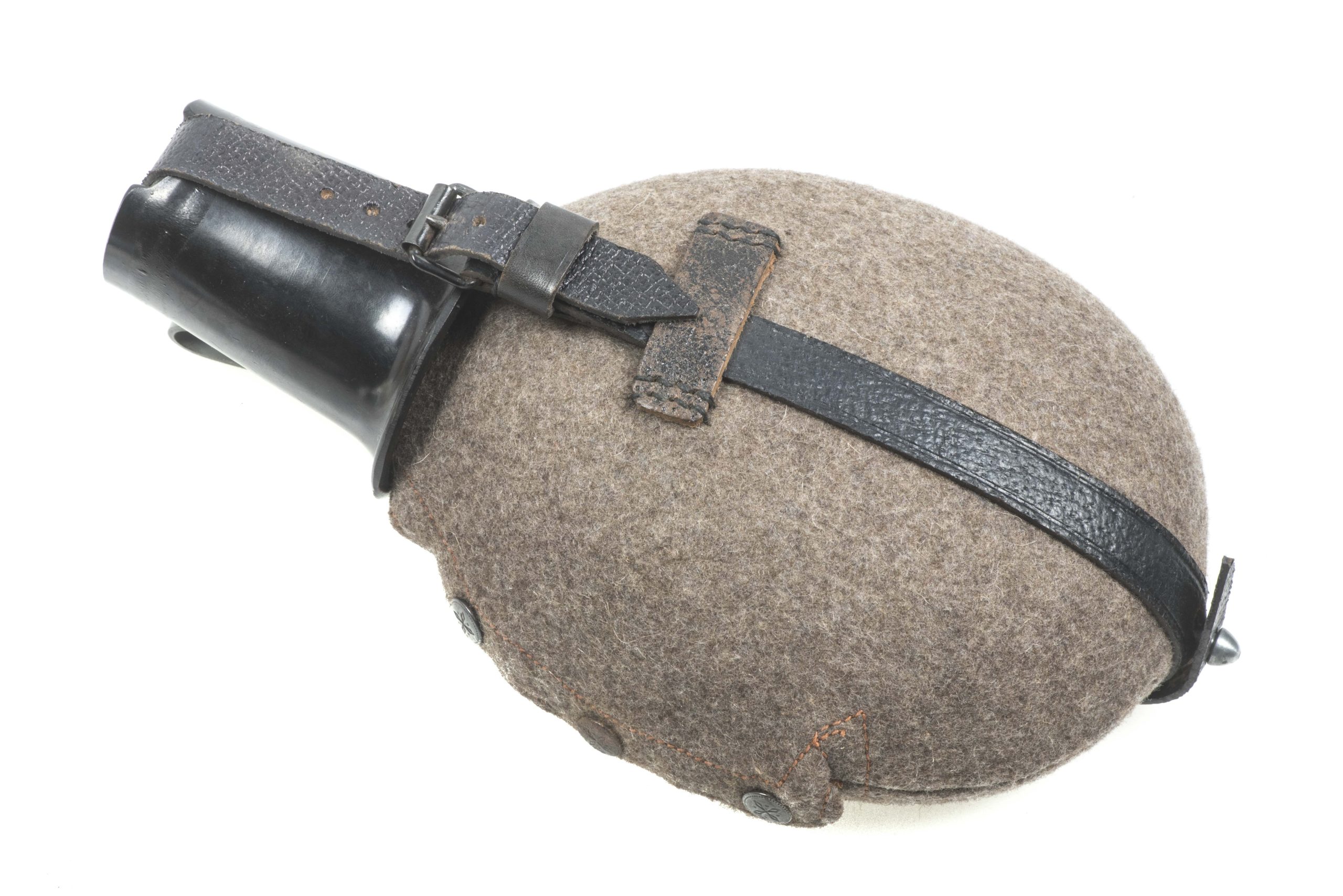 Rare M31 canteen marked HRE 43 indicating production by Heinrich Ritter, Esslingen. This is a rare canteen considering Ritter switched 100% to producing coconut type canteens exclusively in 1943. The flask and felt is marked HRE 42, but the lid is marked HRE 43 indicating it was produced in early 1943, surely one of the last M31 canteens they produced!