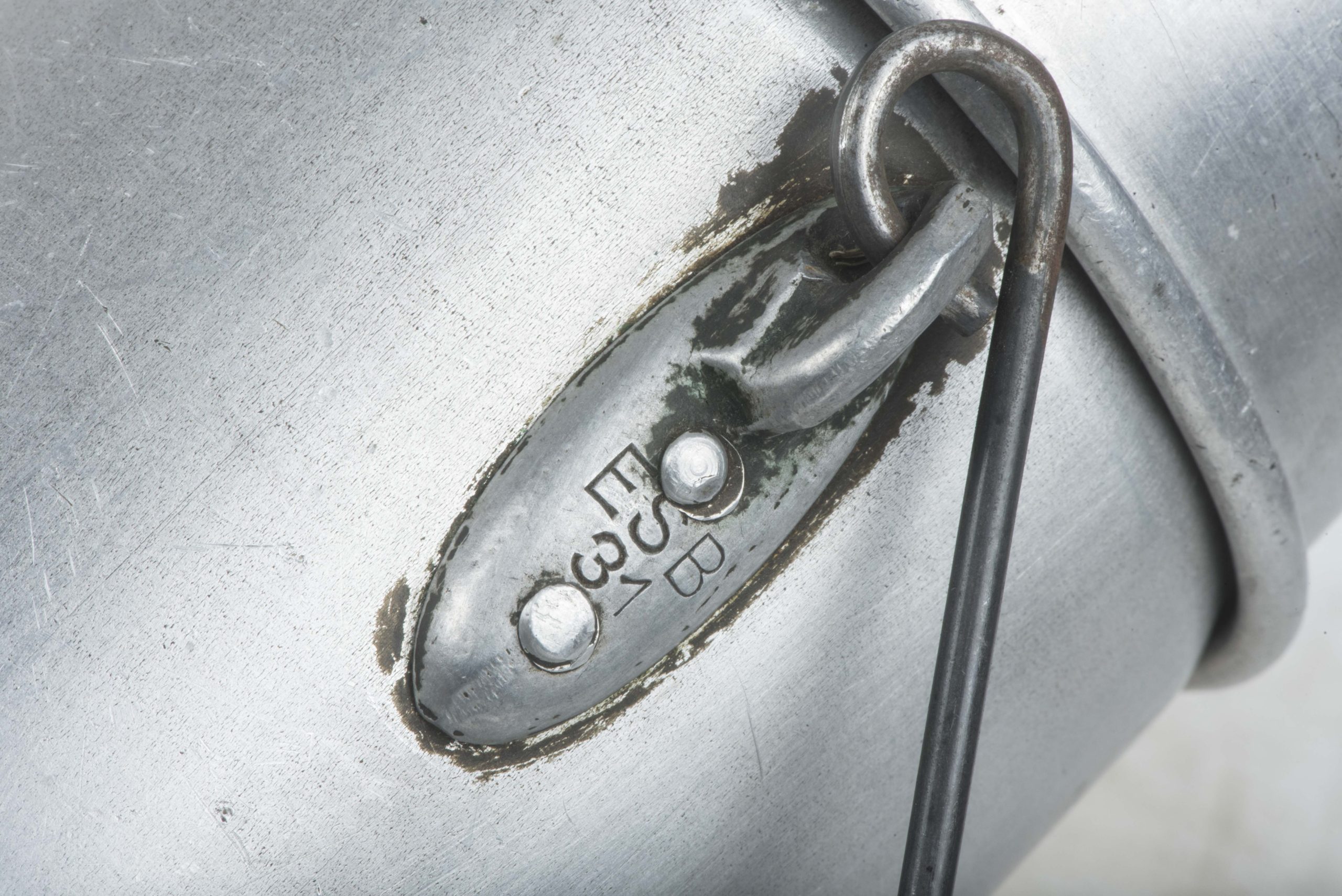 Rare M31 messkit marked ESB 31 and VDNS35 and named Gehr on the lid. This is a very hard to find, first year of production and testing for the German army. The messkit has lost most of its factory paint. Finding pre 1935 examples is exceedingly hard as most if not all of them were used up during the following war. Rare opportunity to acquire a genuine 1931 dated example!