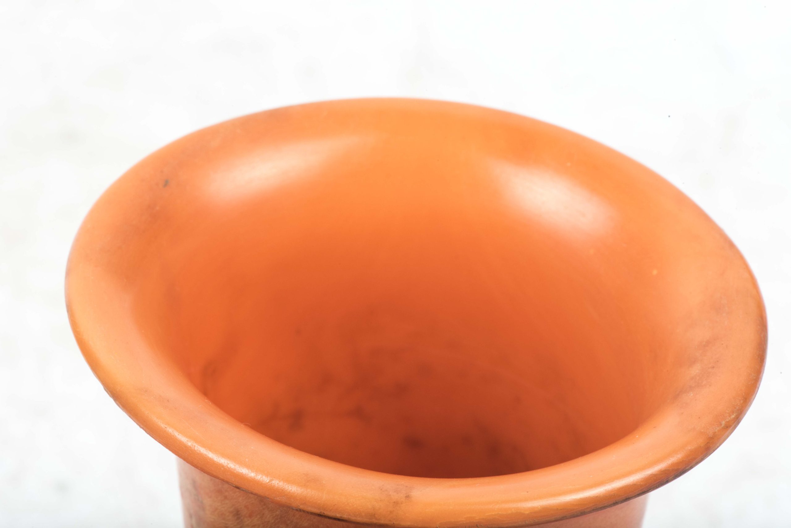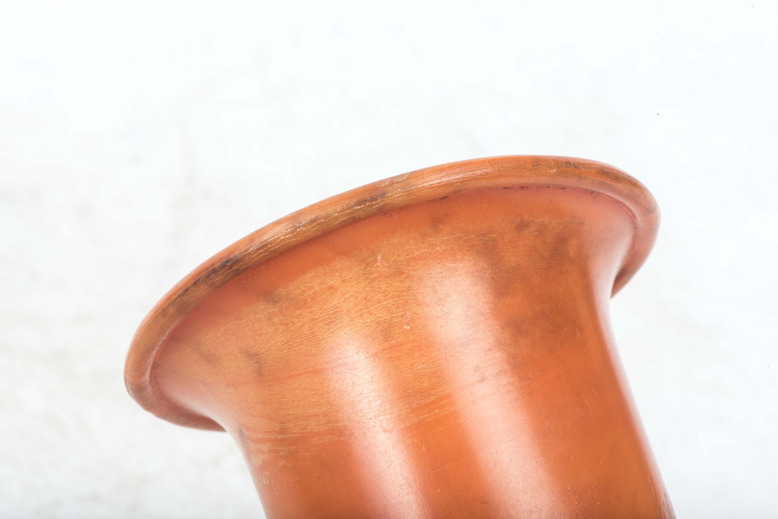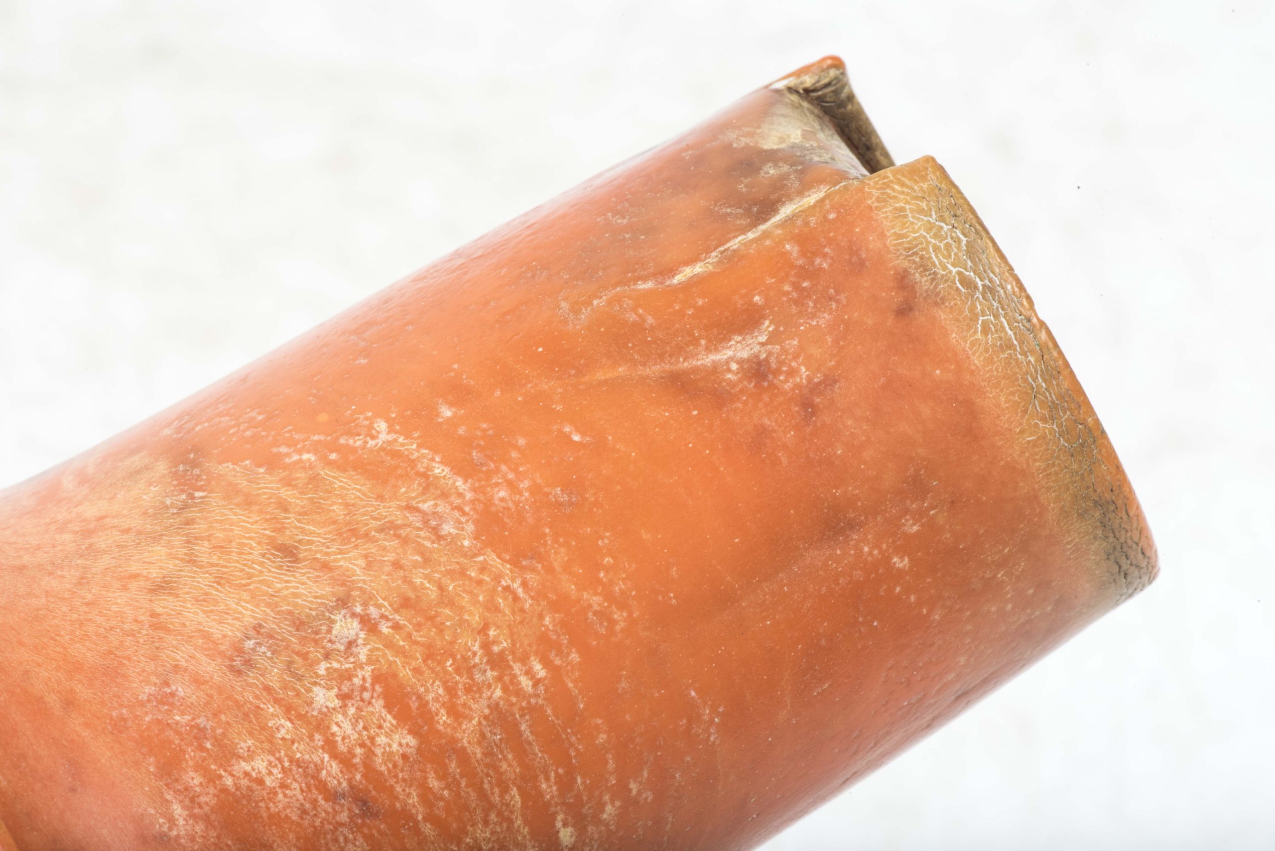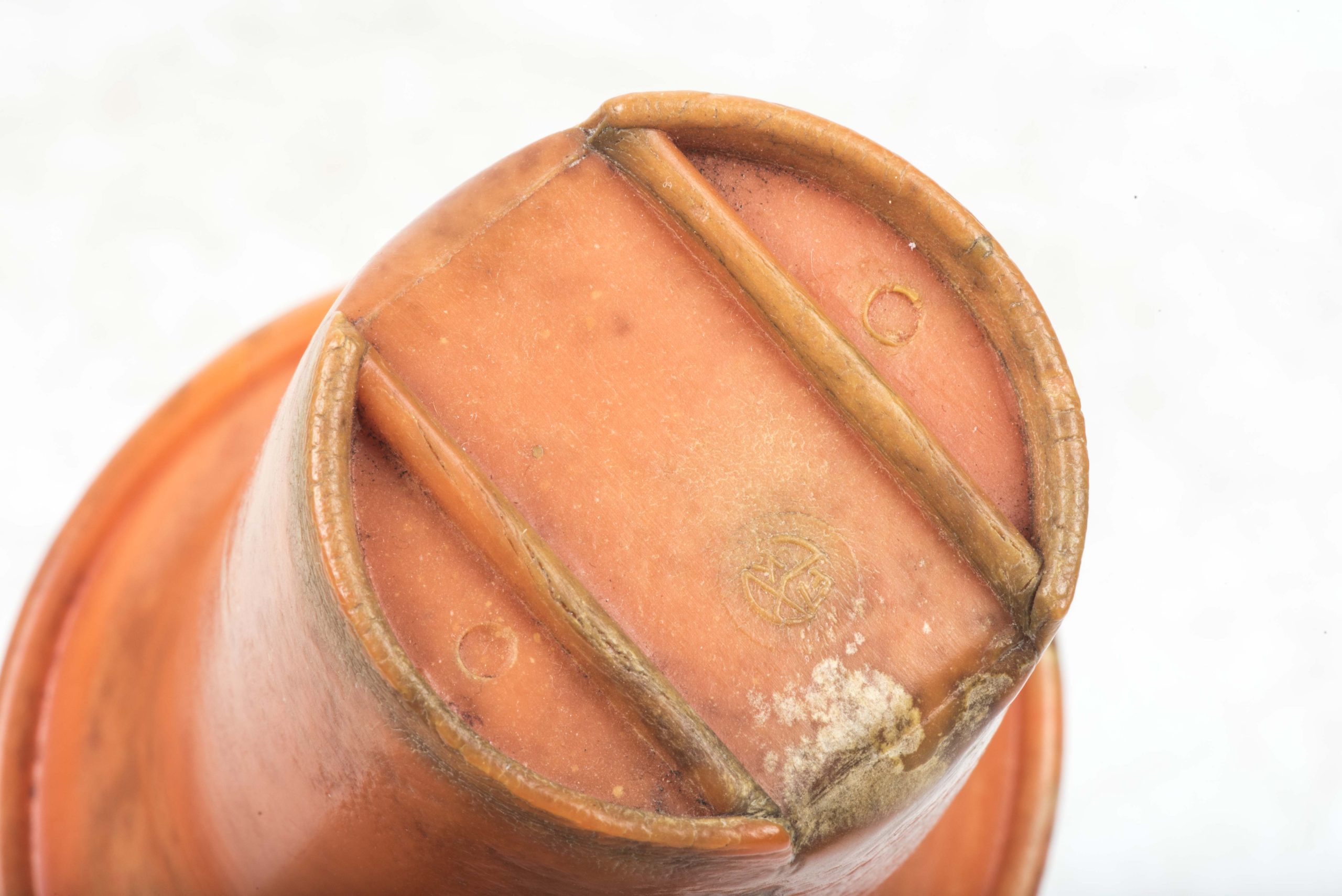 Incredibly rare original orange bakelite canteen cup. This is a rare opportunity to buy an original orange bakelite canteen cup. This example is beautifully marked with a MPD code which was typical for period produced bakelite items. The MPD code F7/K indicates production by a still unknown maker and the usage of urea resin (which is a certain type of Bakelite) with an organic filler material. The bakelite is still in a very good and rather smooth condition and the material isn’t heavily affected by all the years in the ground except for some discoloration which in my opinion could be further cleaned. The only damages are some tiny cracks at the top of the cup. Beautiful original and very rare example!