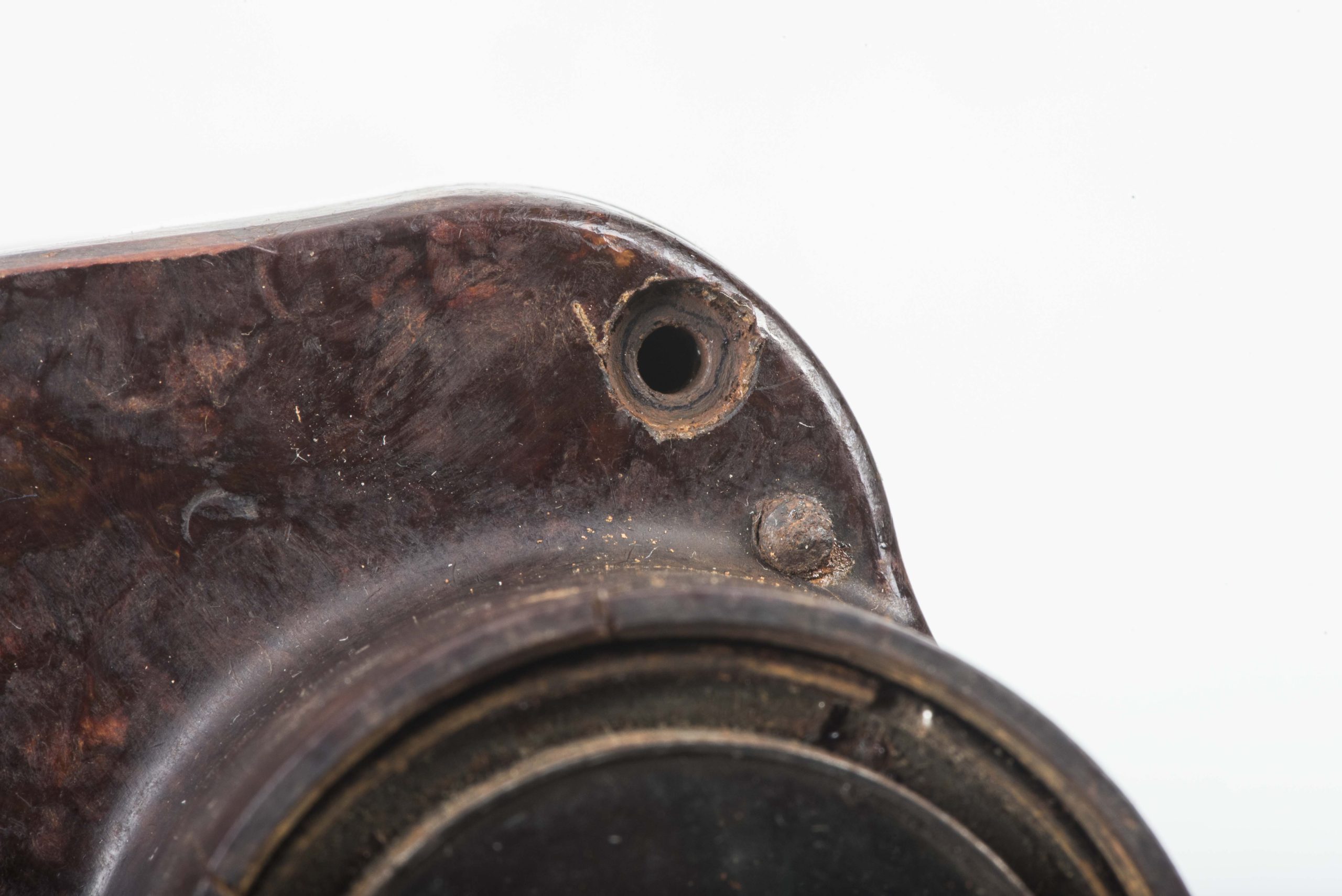 A nice partial (only the left side) 6×30 Dienstglas or binoculars manufactured out of Bakelite. The binoculars are nicely marked cxn which indicates production by Emil Busch A.-G., Rathenow. These Bakelite binoculars were produced to reduce the usage of metal in the production process and are rare late war production! This Dienstglas most likely broke in the field and has been modified to a monocular. The lower ring and screws are missing but the other parts for this side are all there! Nice and interesting example which can be displayed or used as is or used for its often damaged parts!