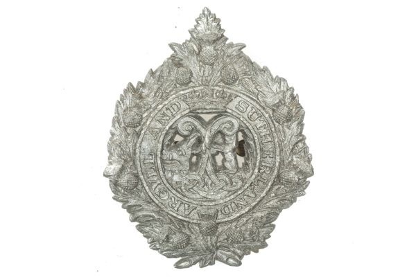 Rare plastic Argyll & Sutherland Highlanders capbadge in good condition. The badge is in good used condition. Rare variant!