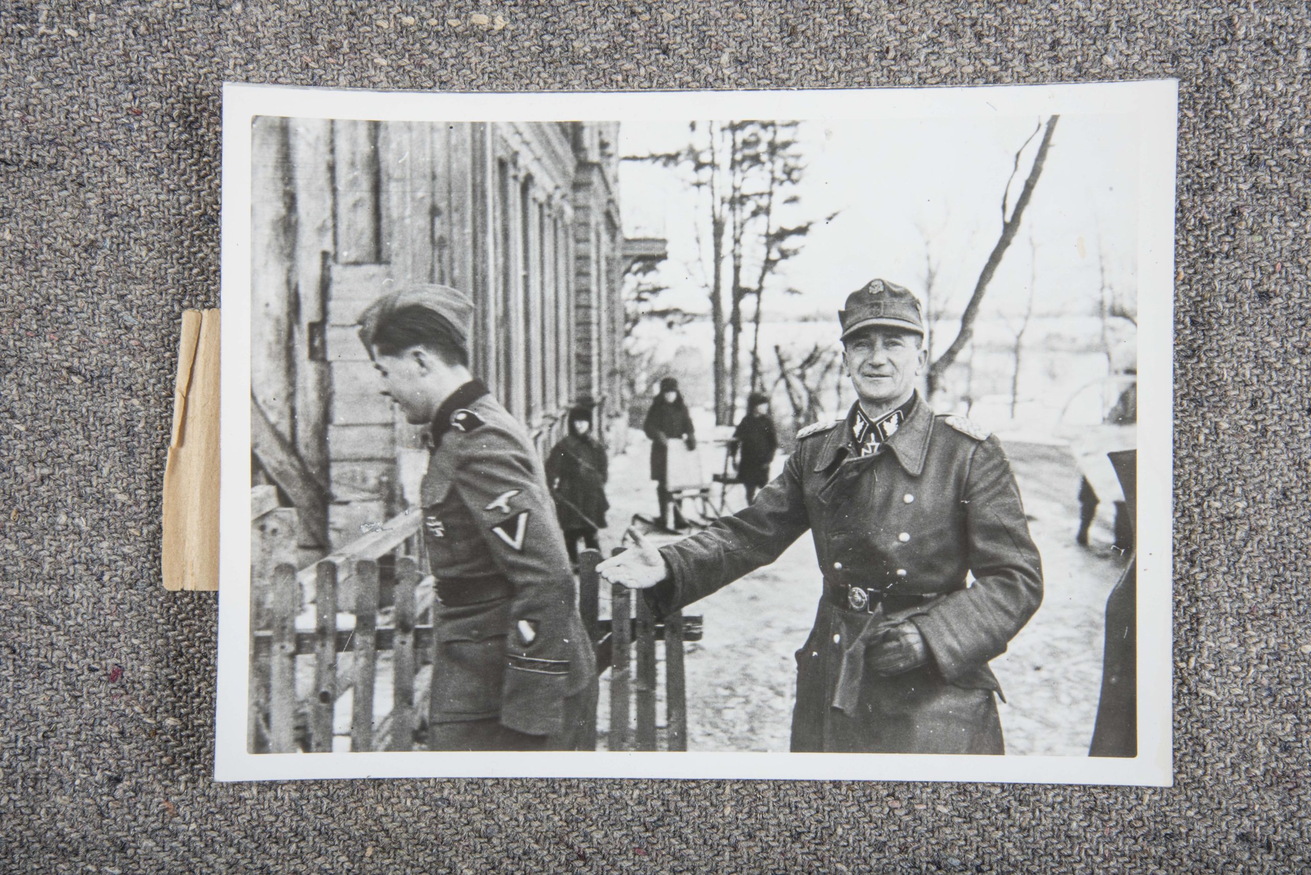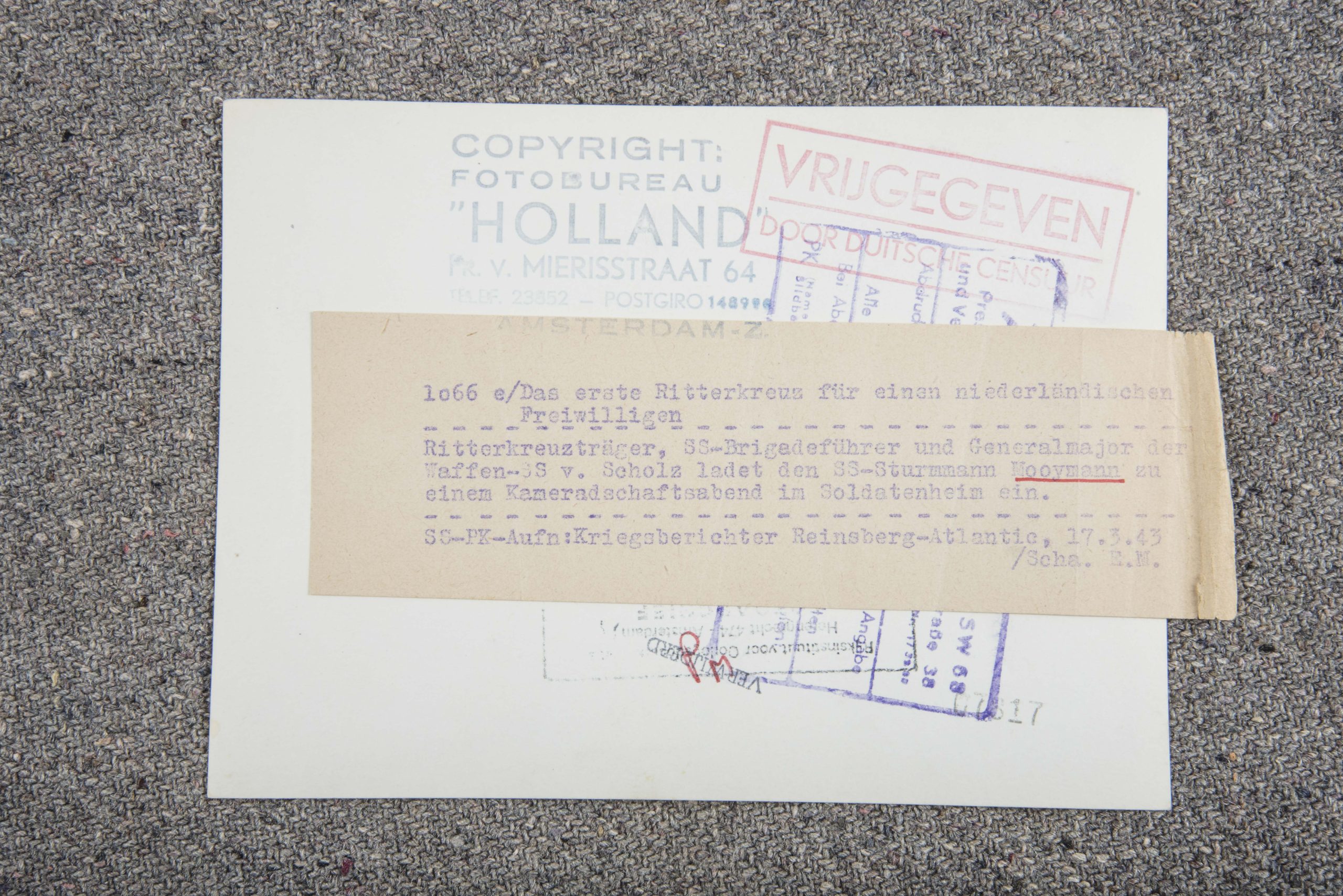 Rare Press Photo; Gerardus Mooyman with Generalmajor der Waffen-SS v. Scholz in good condition.