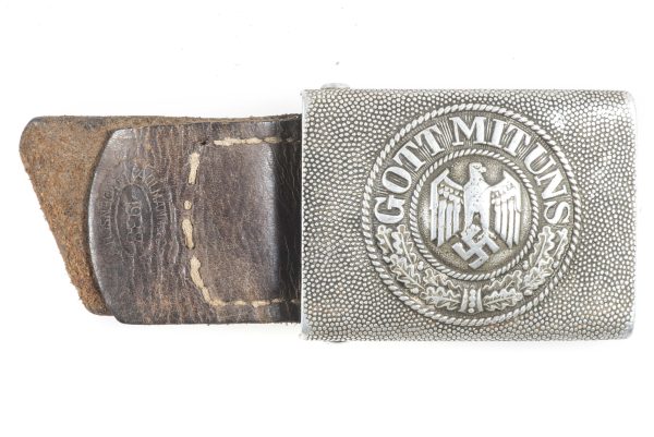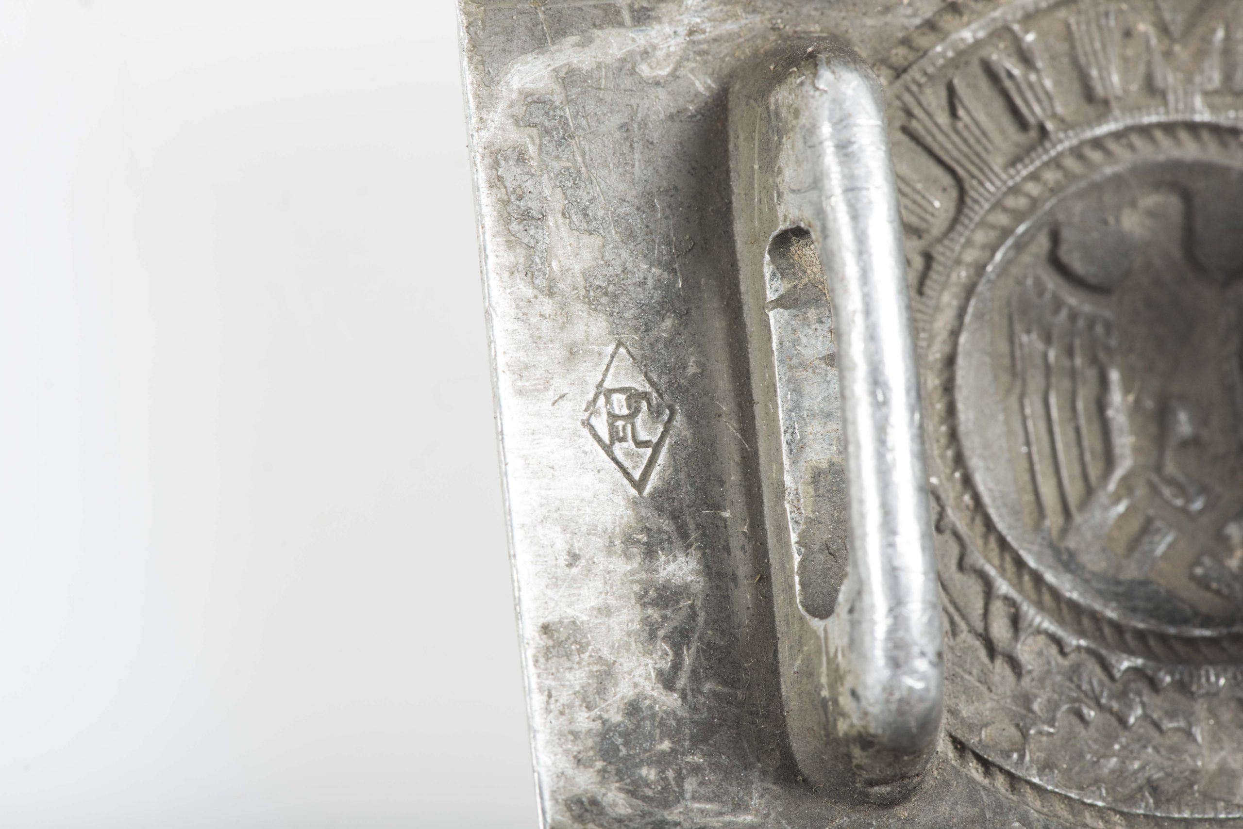 Tabbed Aluminium Heer belt buckle marked Paulmann & Crone 1938 in good condition. One of the rarer makers to find!