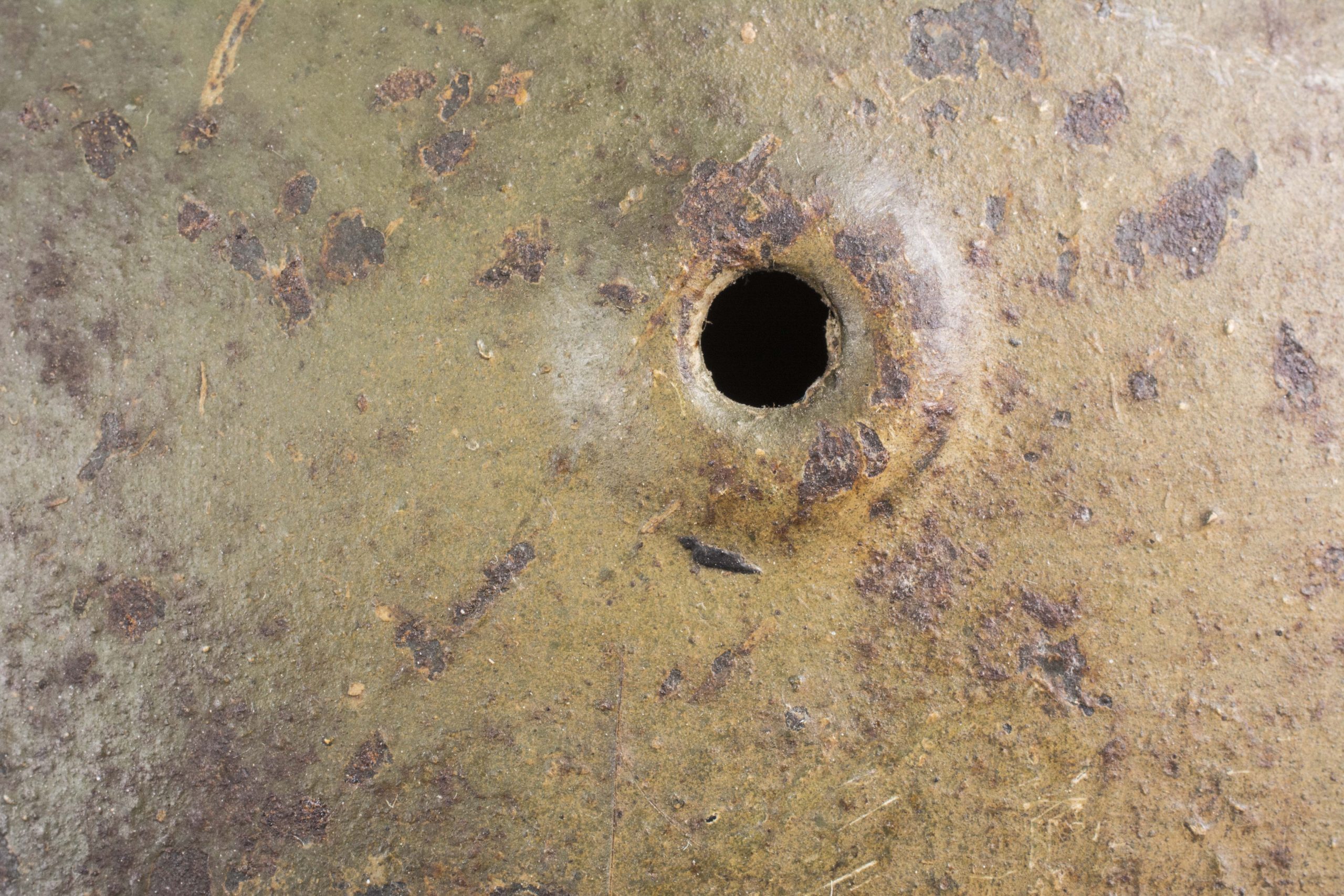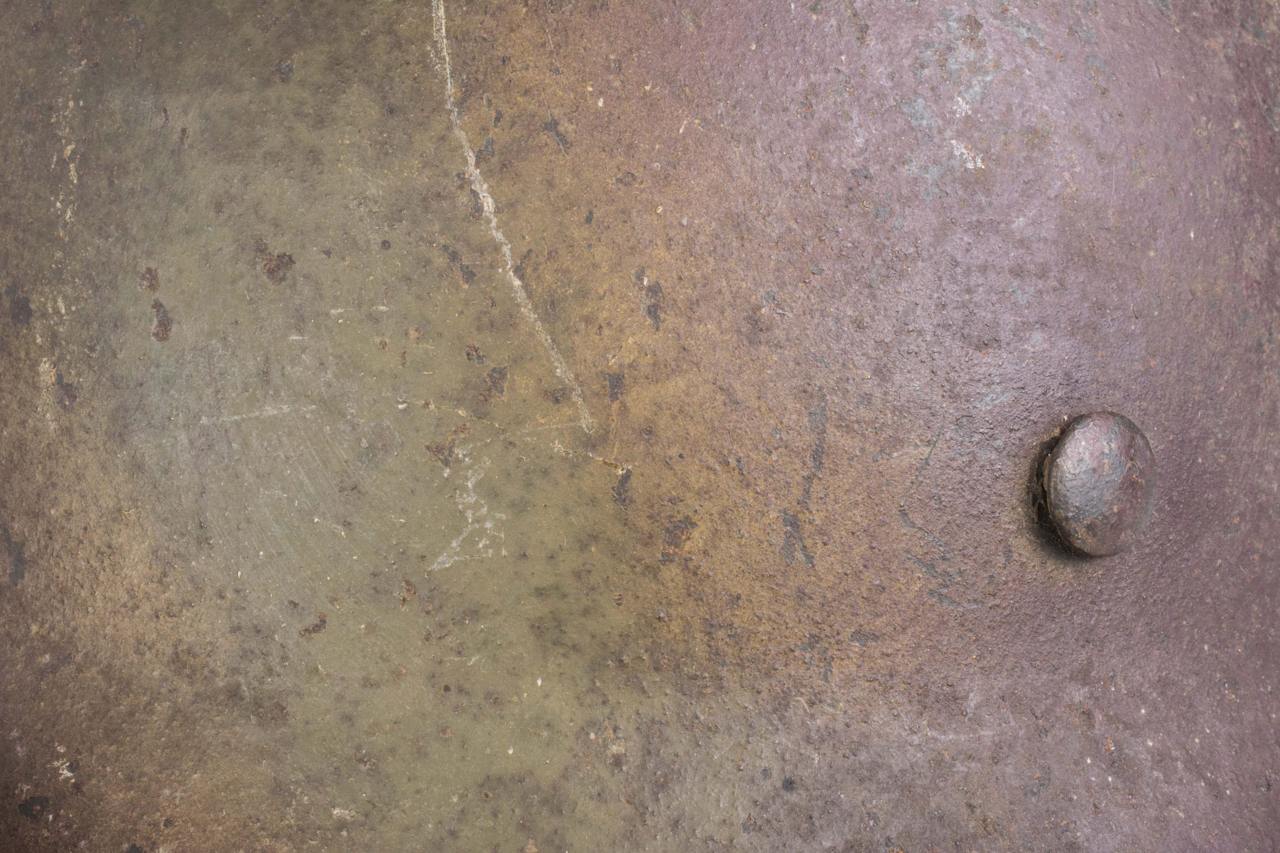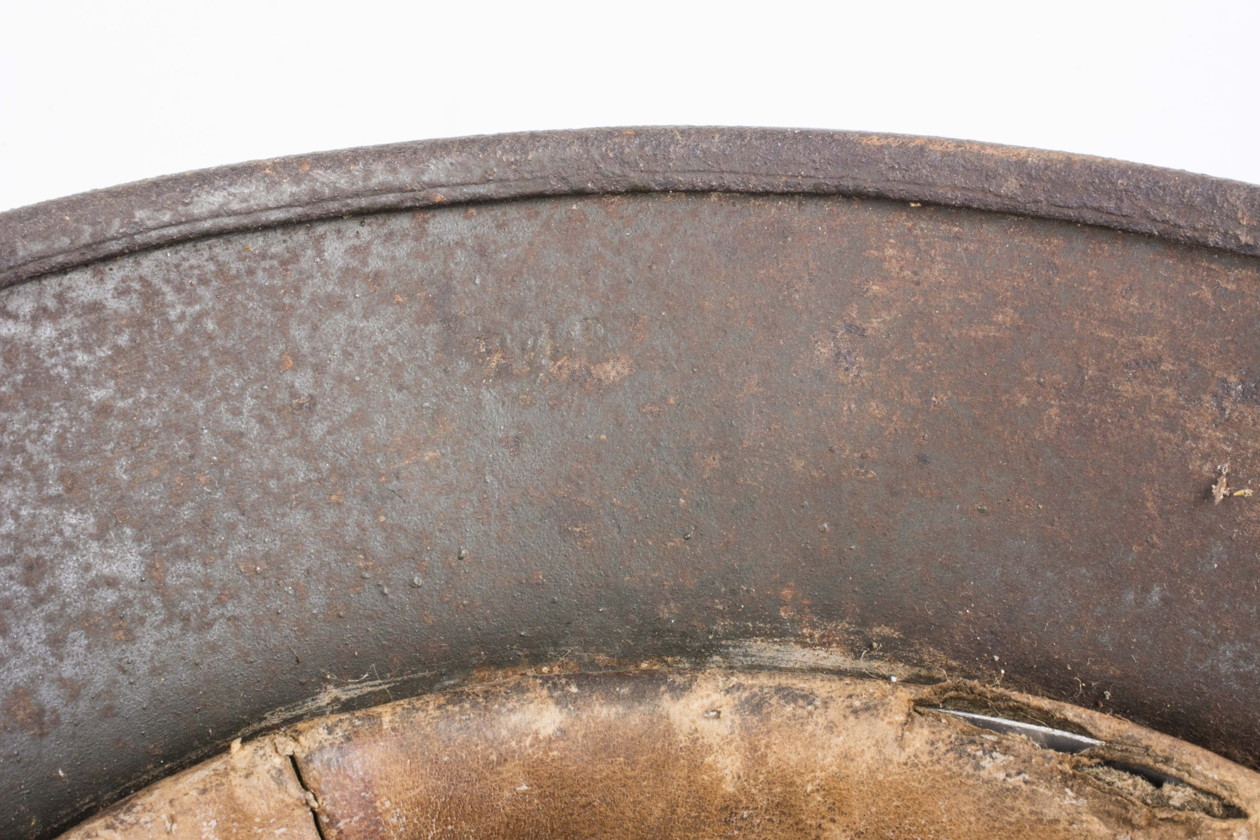 Stunning three-tone normandy camouflage helmet marked SE66 indicating production by Sachsichse Emaillierwerke. The helmet retains its period applied three-tone camouflage pattern up to 95% and is a real ‘one looker’ example in untouched, uncleaned condition. The helmet was found in Cairon Le vieux which saw heavy battles on June 8th between the Regina Rifles and Grenadier Regiment 736, 716 Infanterie-Division. This is most probably the unit this helmet belonged to, the 716th ID was stationed at Gold, Juno and Sword beach as a defensive unit around 1942. The helmet is a textbook and excellent example of a ‘Normandy’ camouflage helmet that would be very hard to upgrade ánd has its provenance right in the middle of the fighting area.