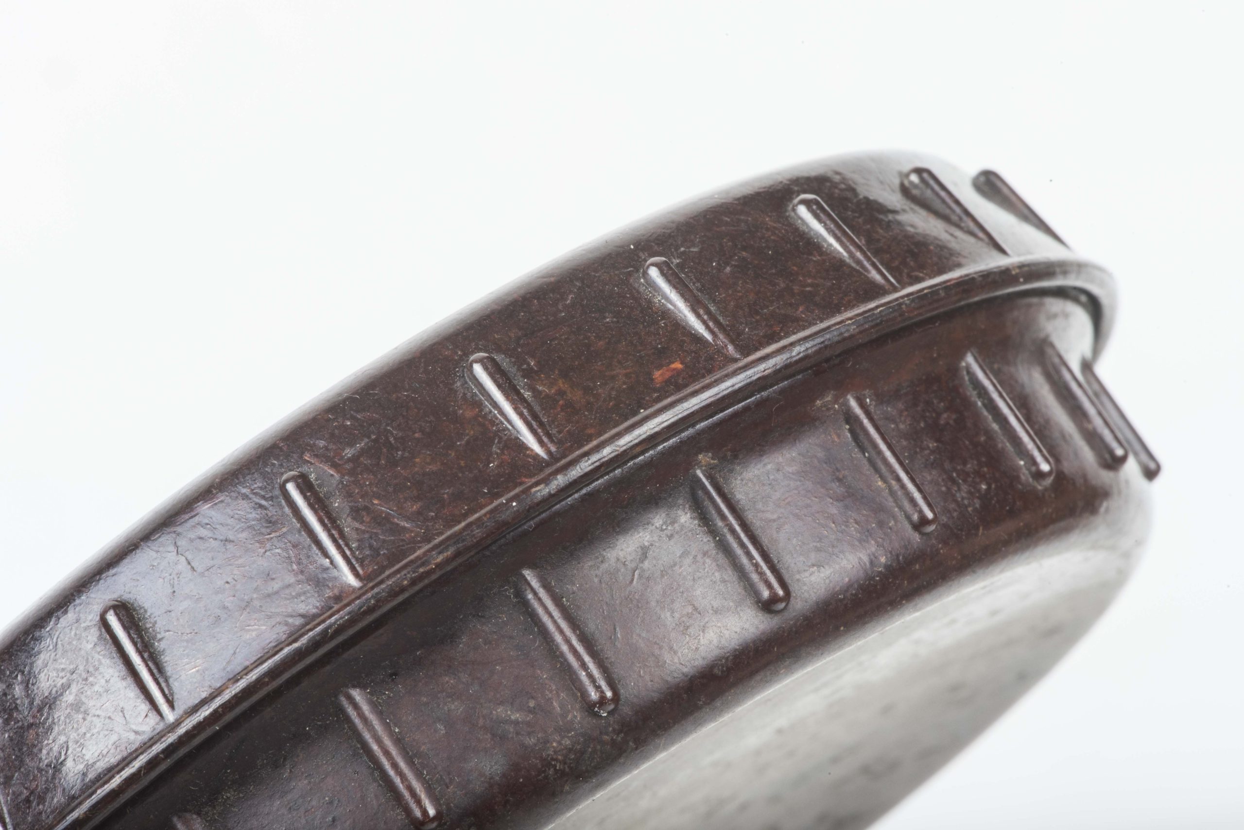 Textbook late war brown bakelite butterdish or Fettbuchse dated 1944.