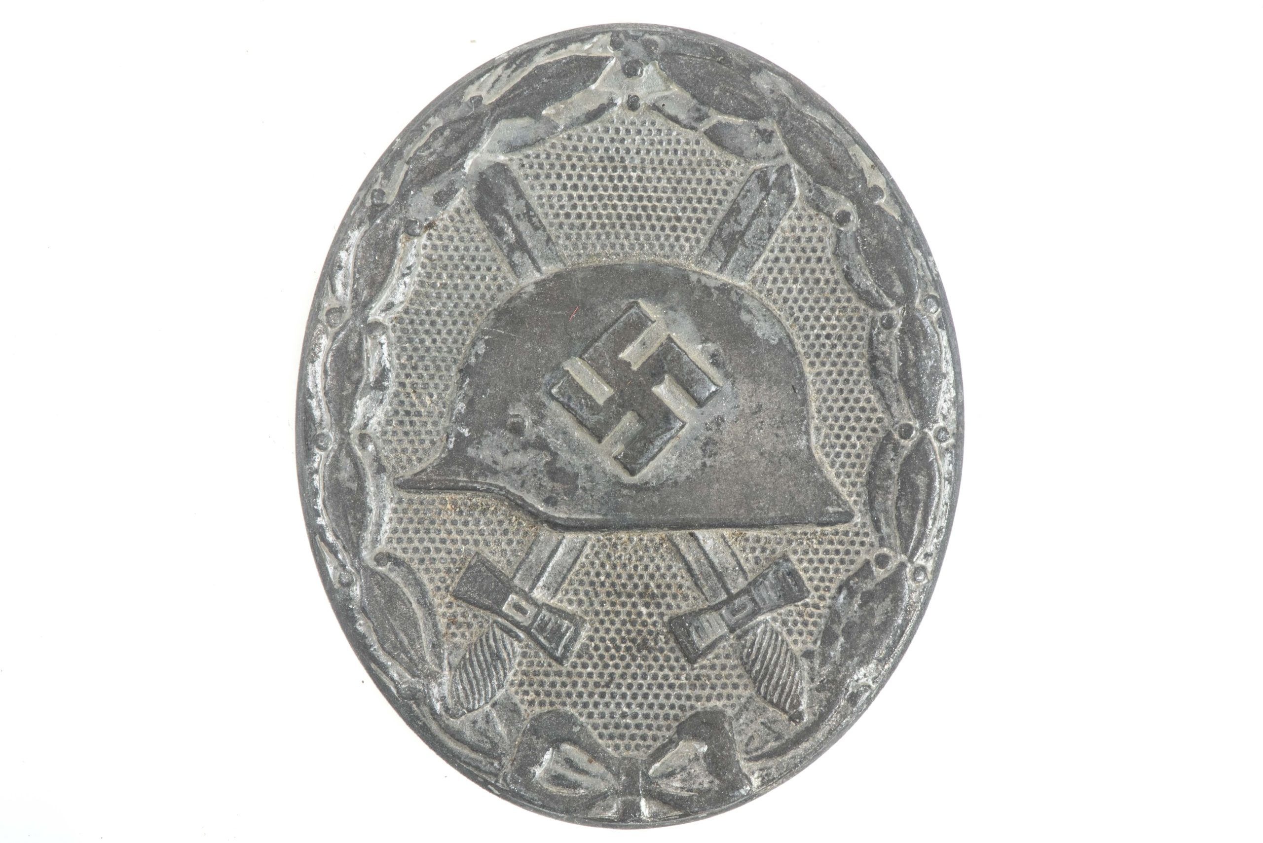 Original silver wound badge or Verwundetenabzeichen in Silver in very good condition still retaining its original factory finish. Nicely marked “107” indicating production by Carl Wild, Hamburg.