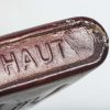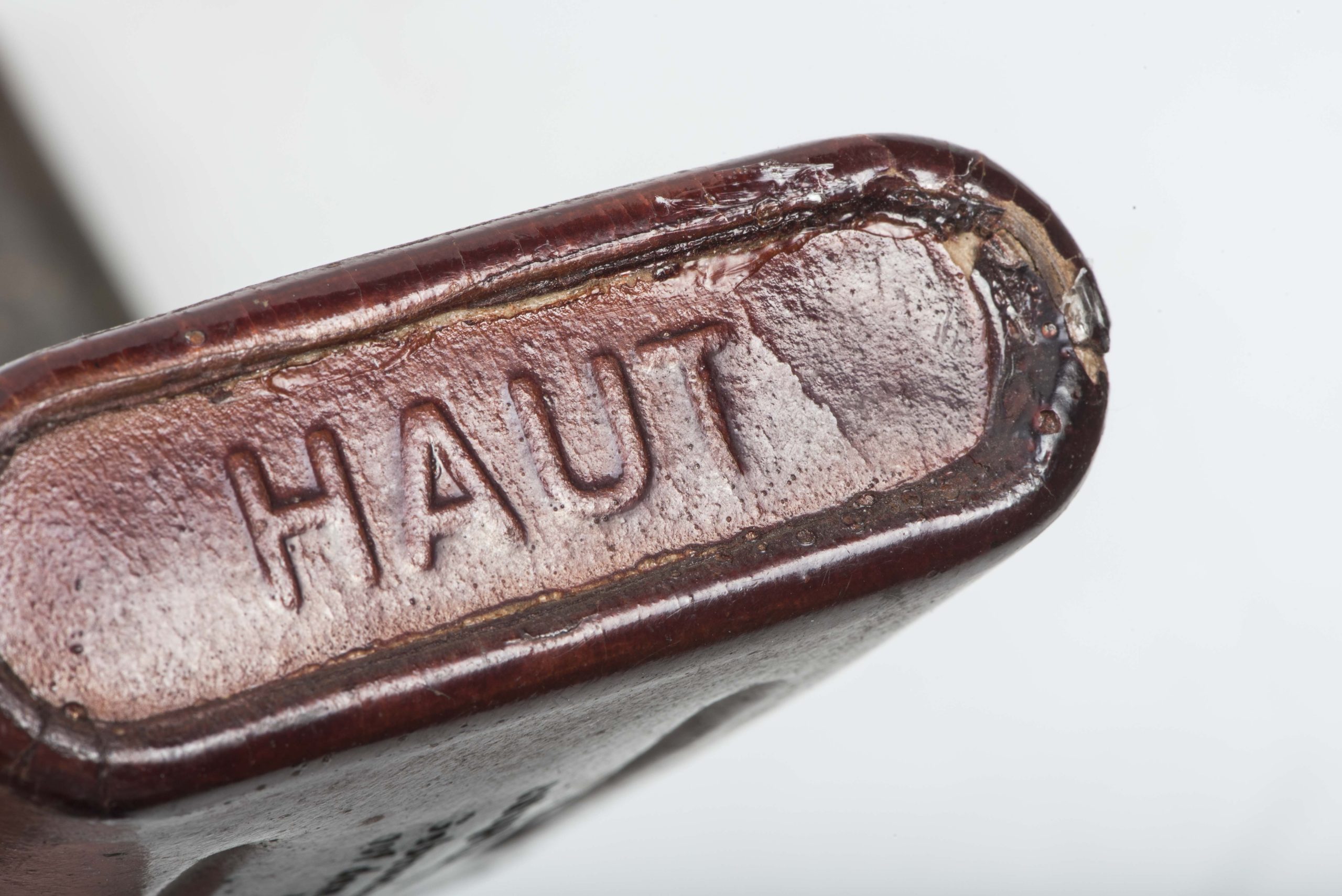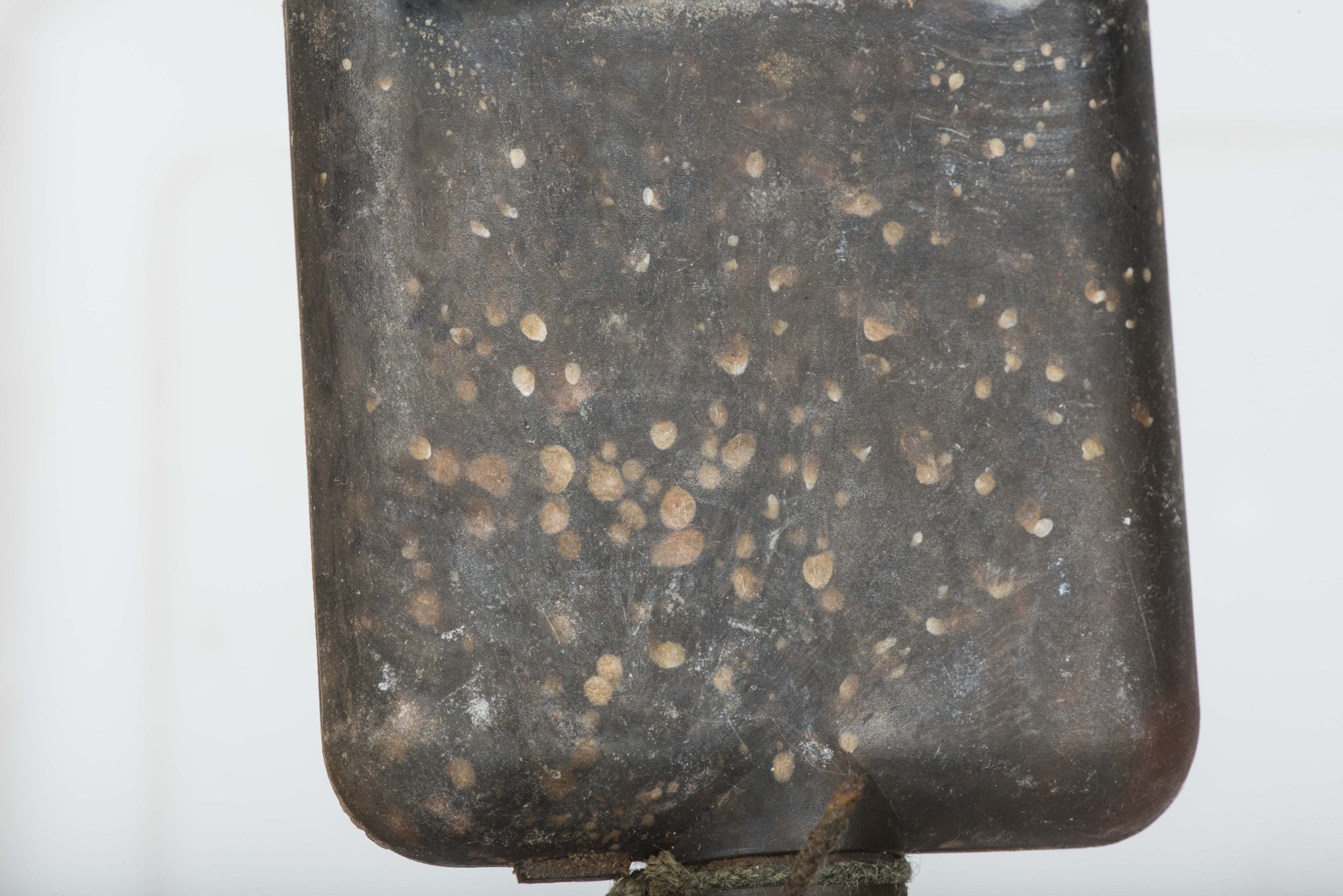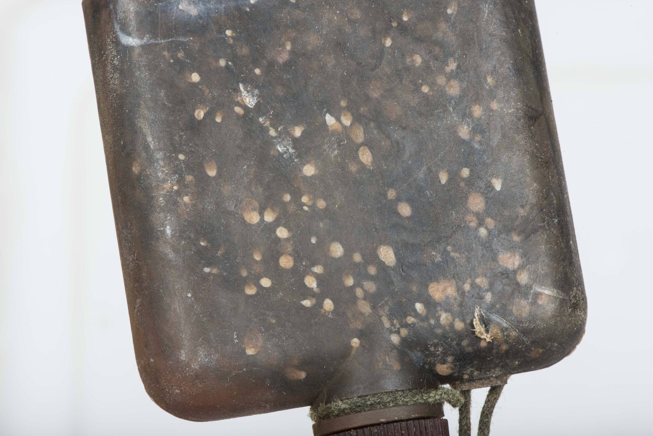 A rare Waffen u. Hautentgiftungsmittel box with contents. Rare to encounter with the red pressed paper box and swabs inside. The flask inside is a Waffenentgiftungsmittel canister in nice speckled bakelite.