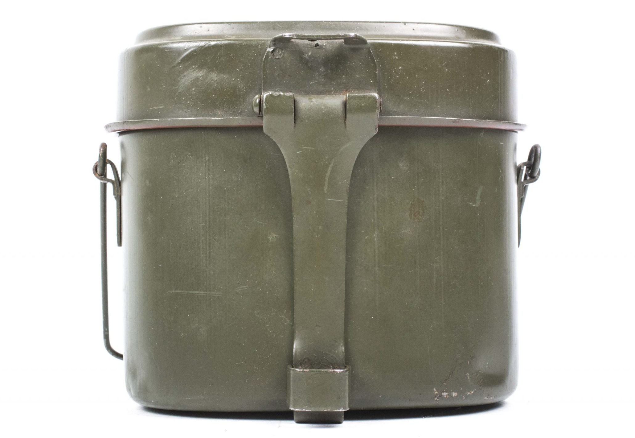 Textbook unmarked late war steel M42 messkit in most likely unissued condition. Very nice example which only has a damage to the red primer paint on the interior. Nice example!