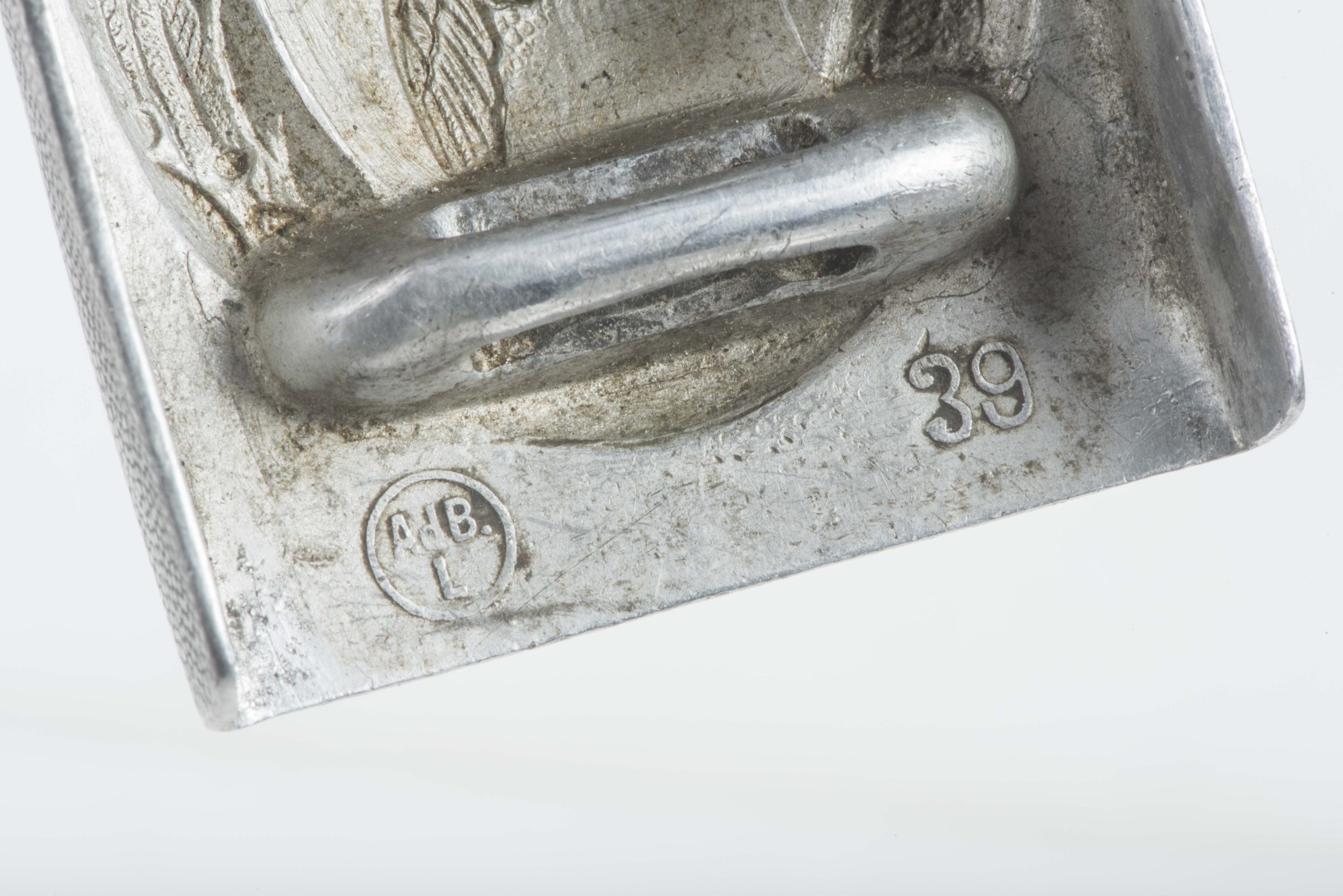 Tabbed Aluminium Luftwaffe belt buckle marked Ad Baumeister, Lüdenscheid 1939. Rare manufacturer!