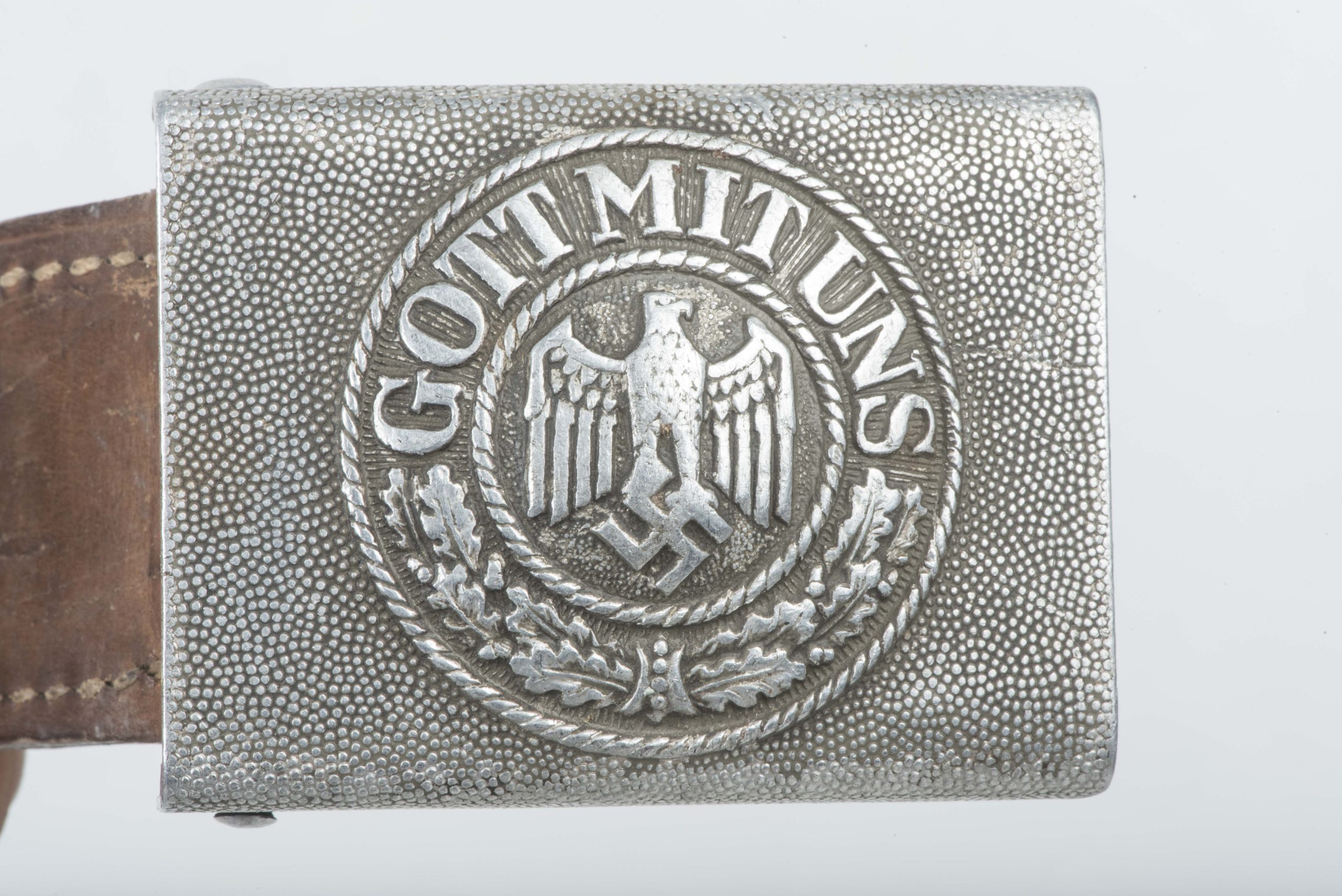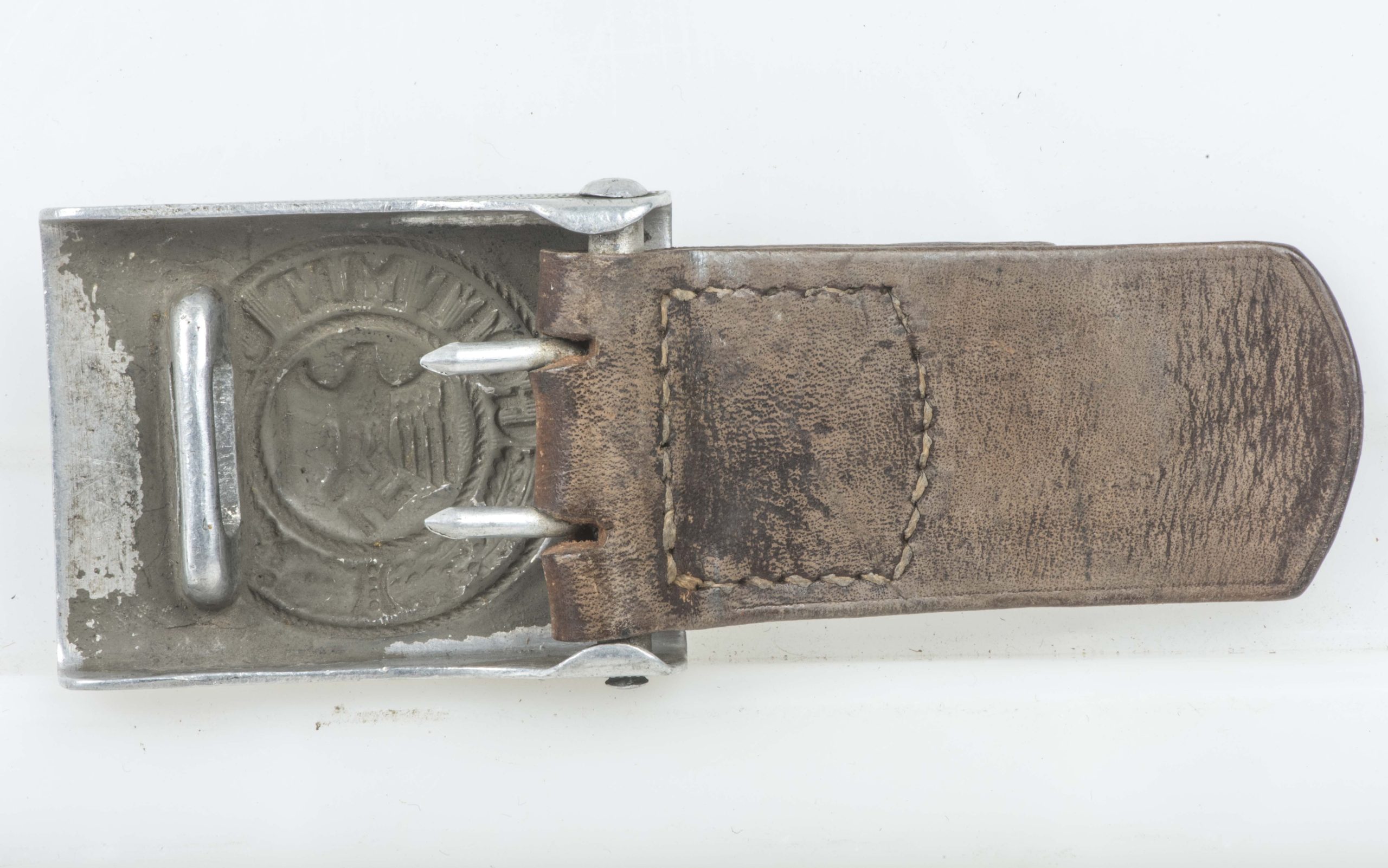 Tabbed Aluminum Heer belt buckle marked Lehmann & Wunderberg 1938. This is a rare manufacturer to find!
