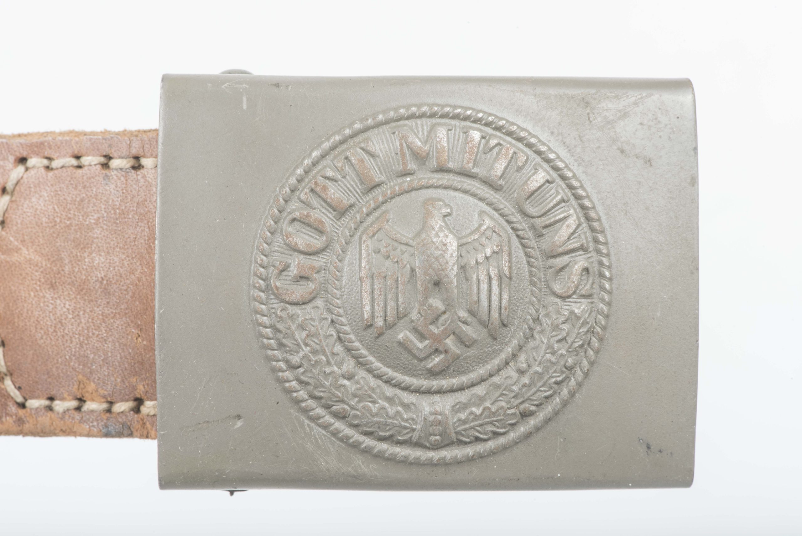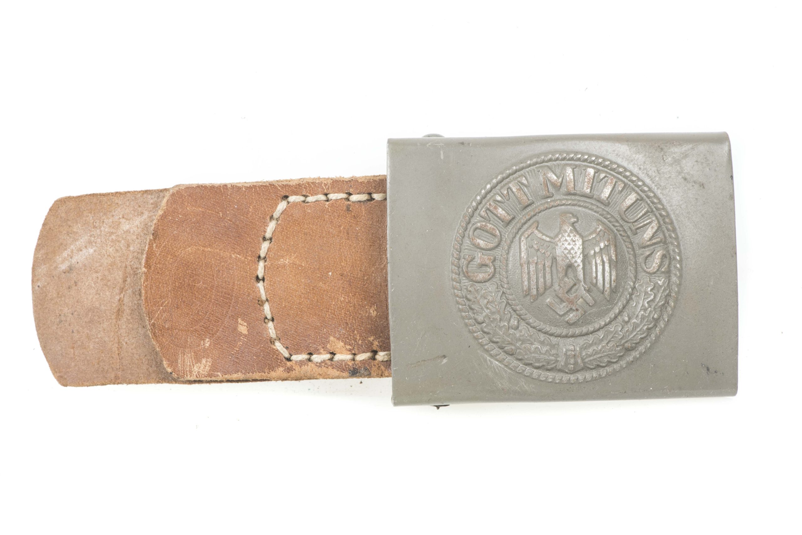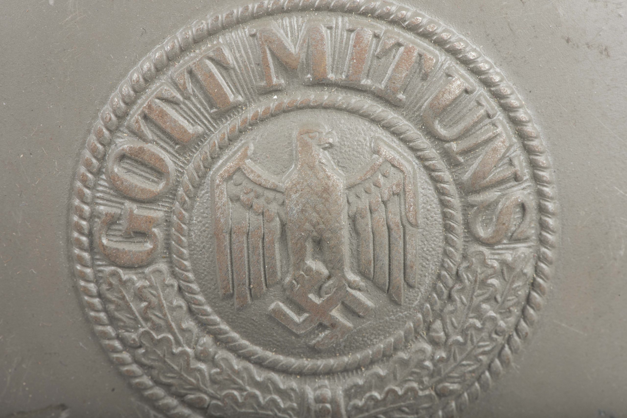 Tabbed steel Heer belt buckle marked Brüder Schneider Wien 1942 in excellent condition. The buckle retains up to 99% of its factory paint and would be very hard to upgrade.