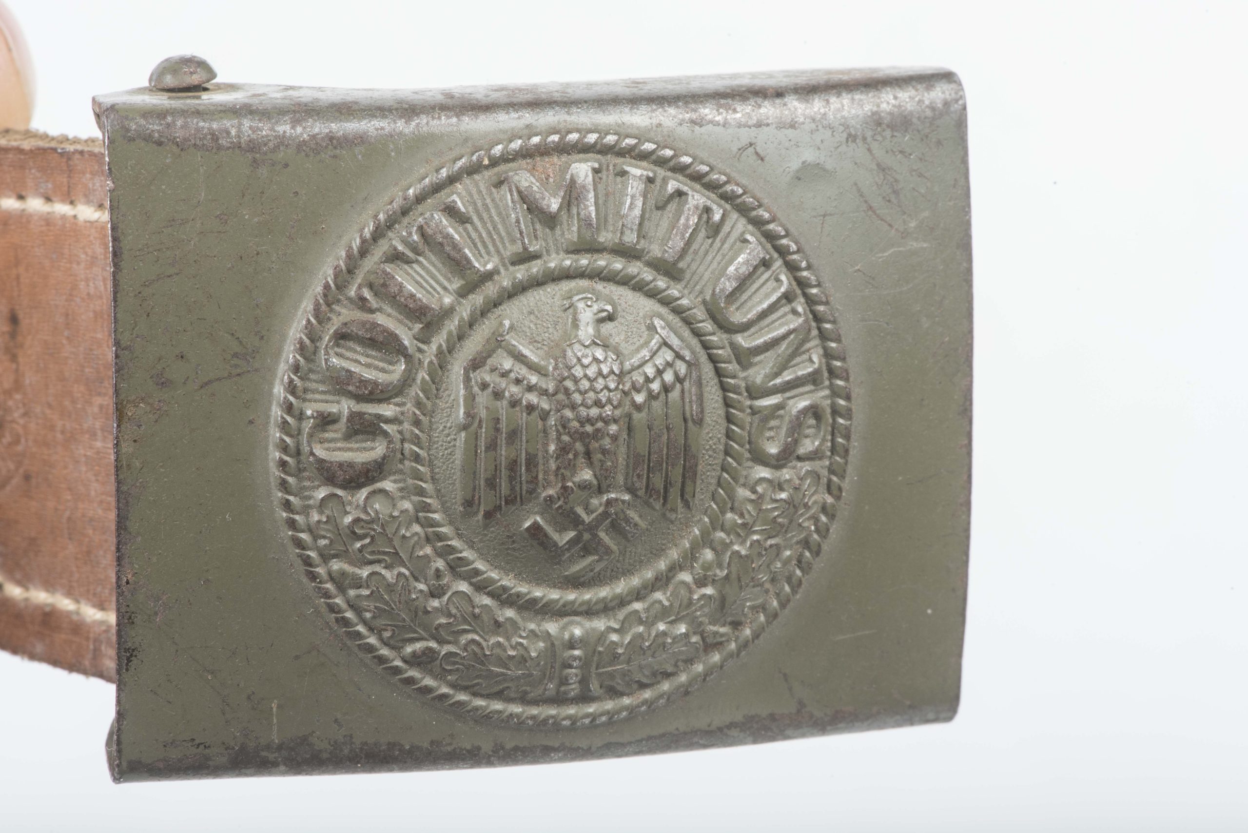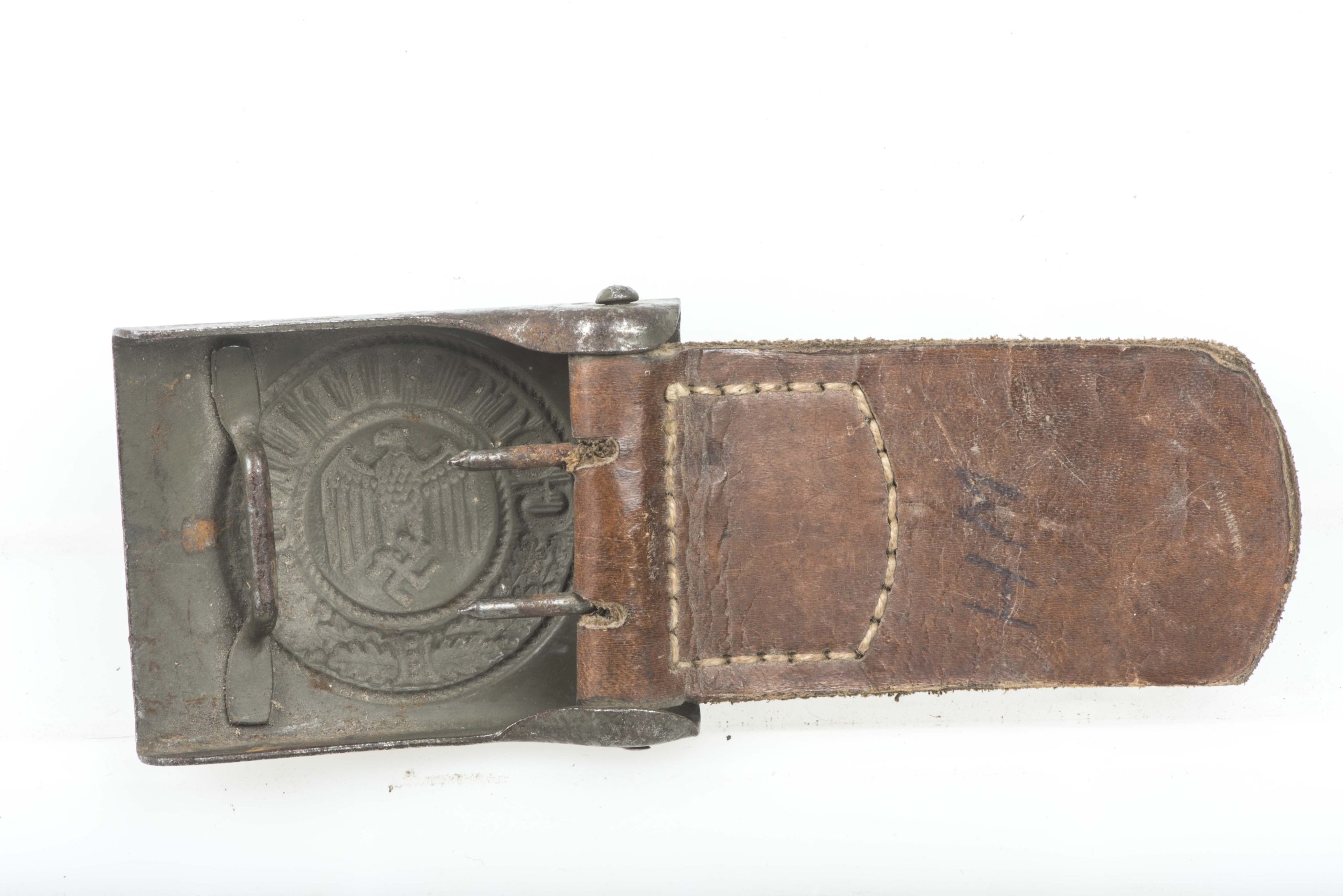 Tabbed steel Heer belt buckle marked C.W. Motz & Co. Brandenburg a. H. 1941 in excellent condition.