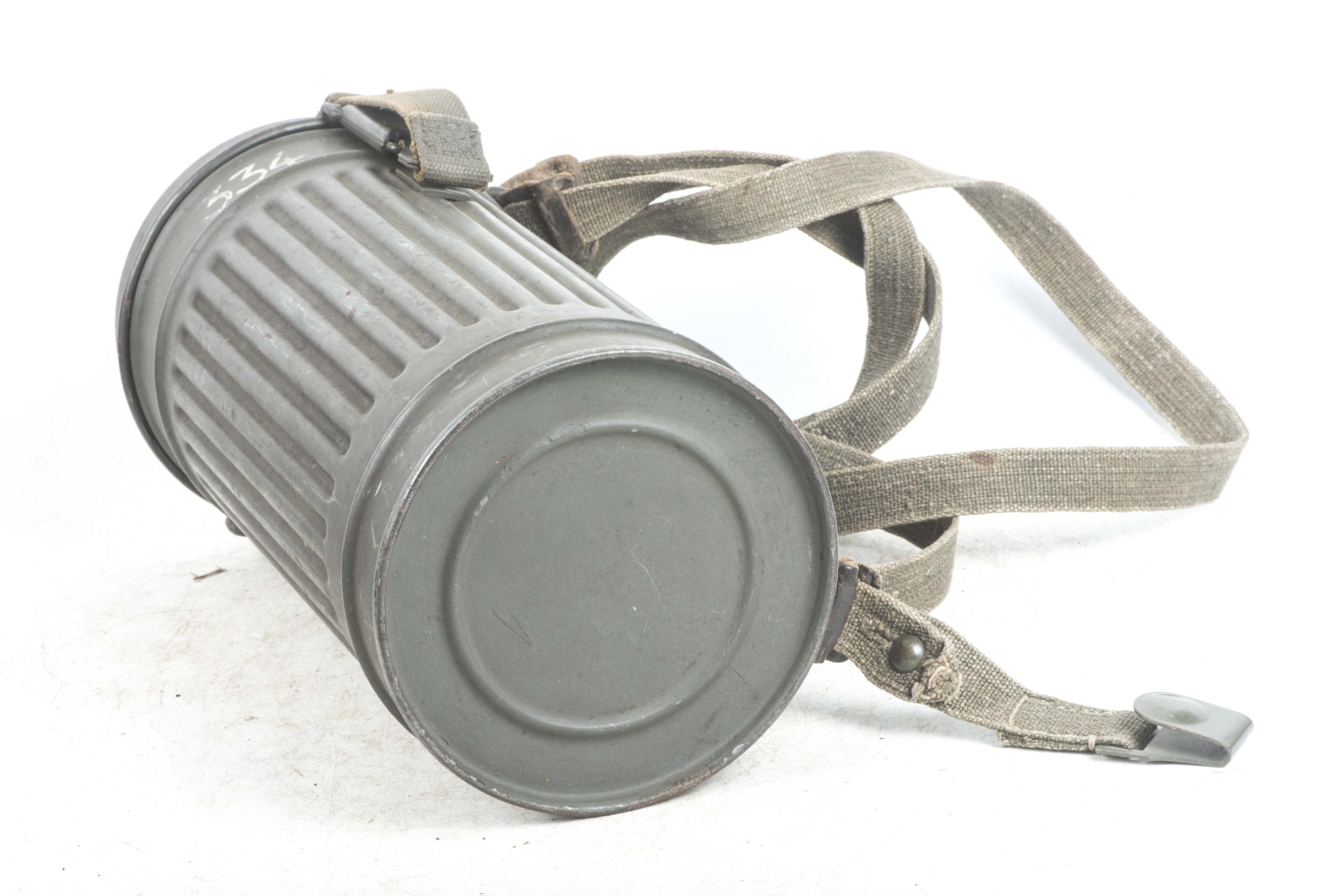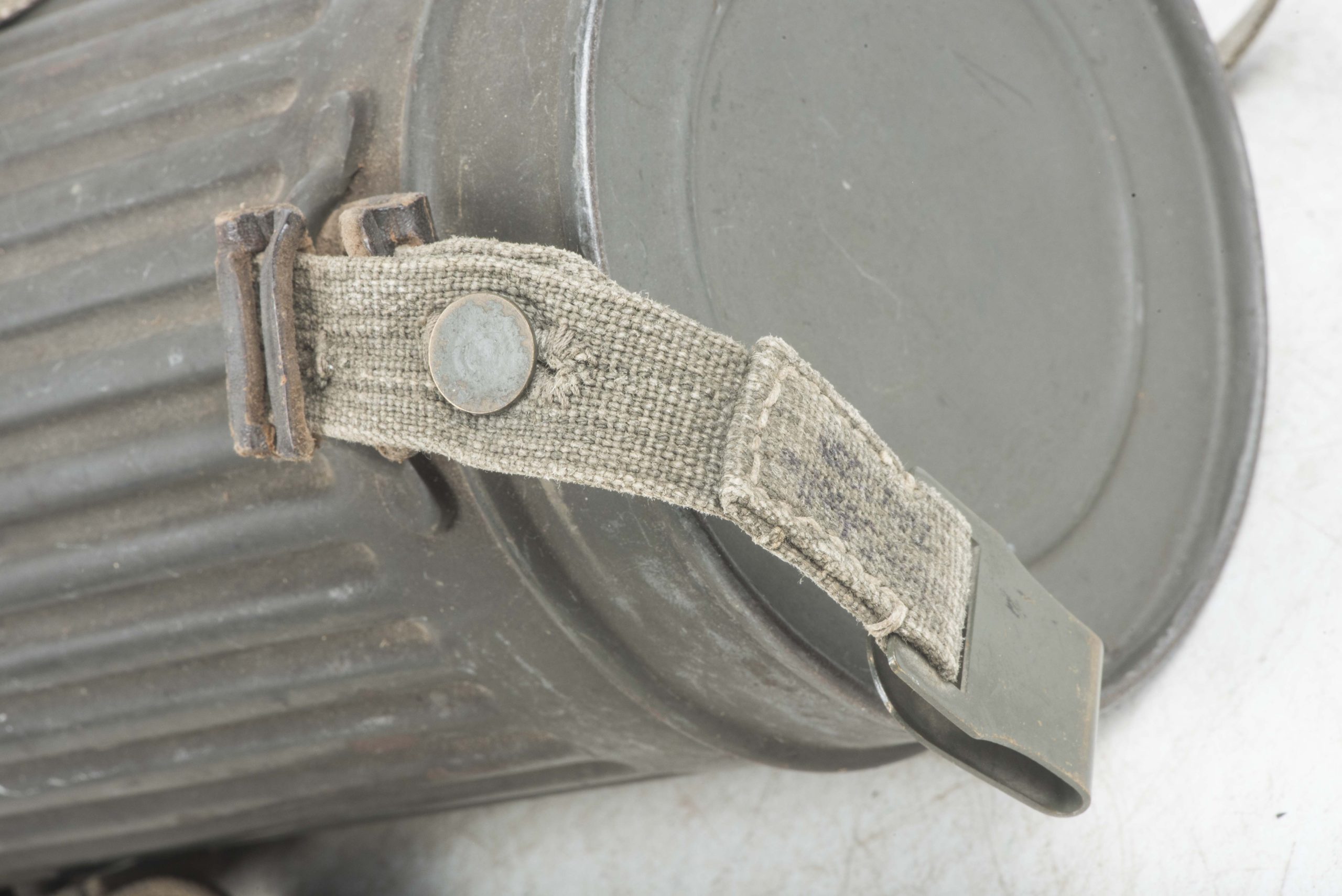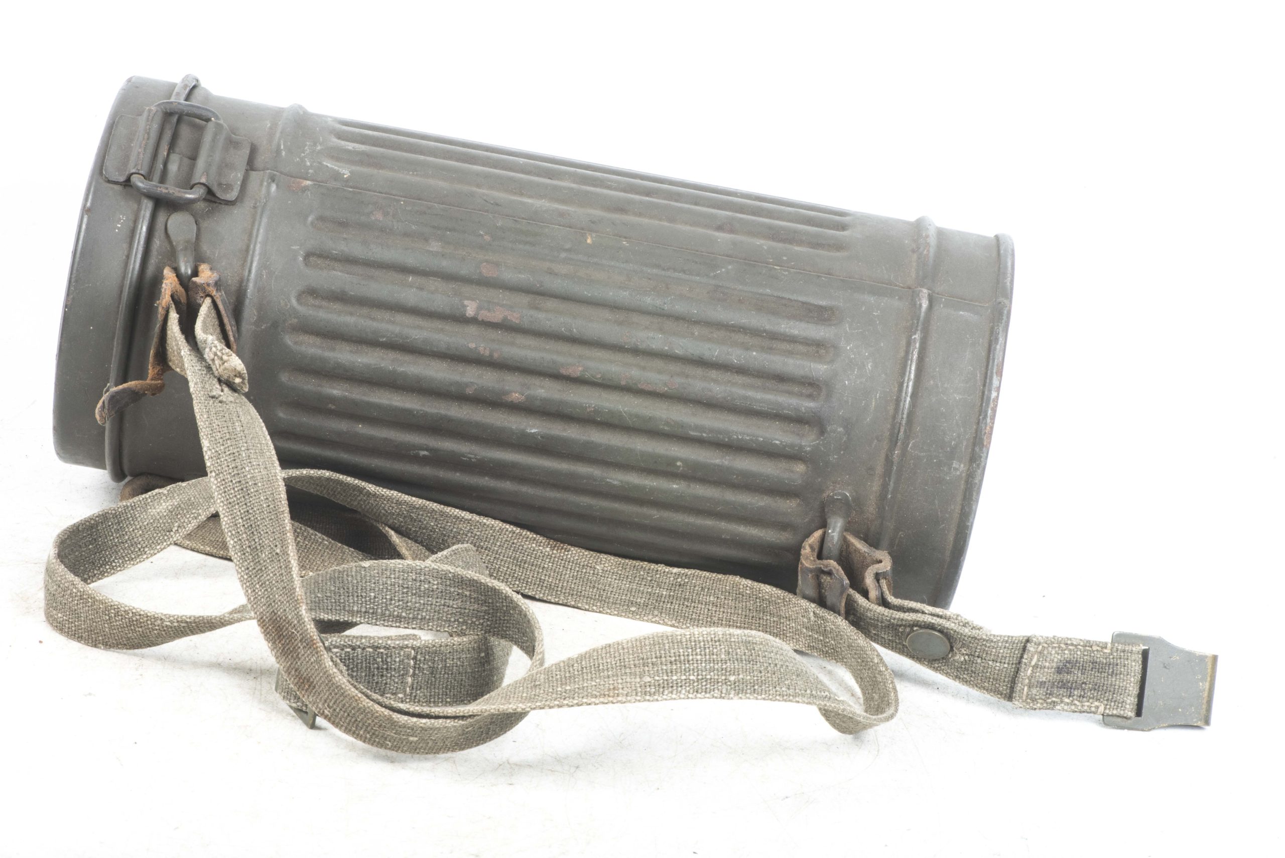 Tall early M38 gasmask set in excellent condition. Nice complete example with straps with leather reinforcements. Hard to find !