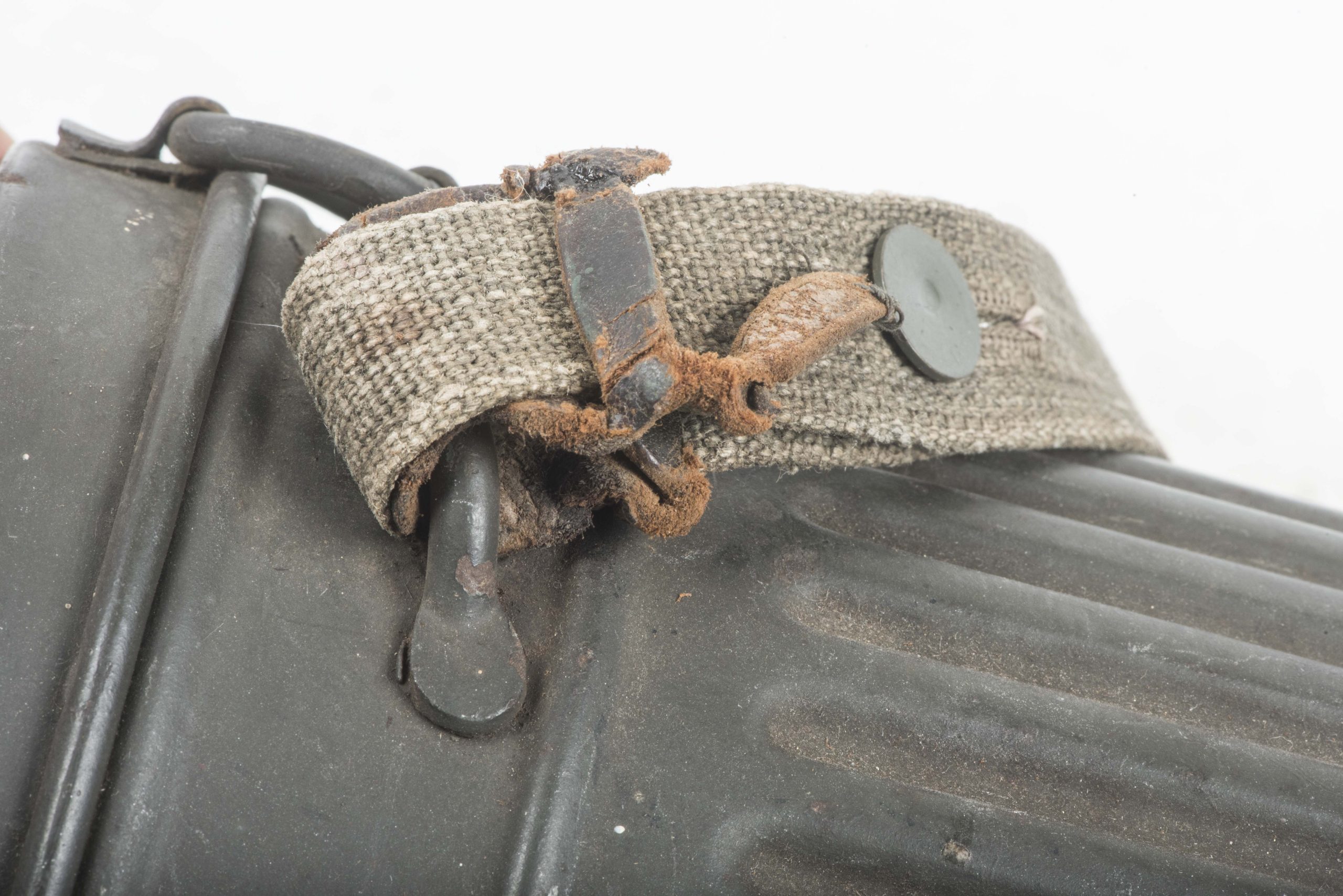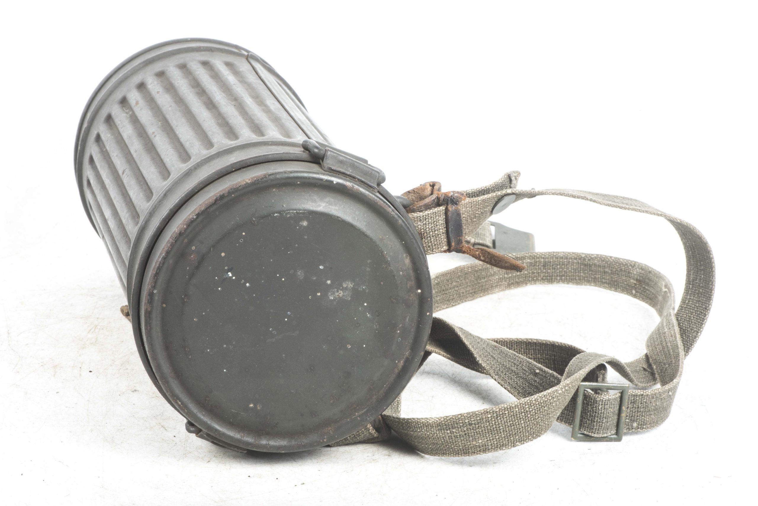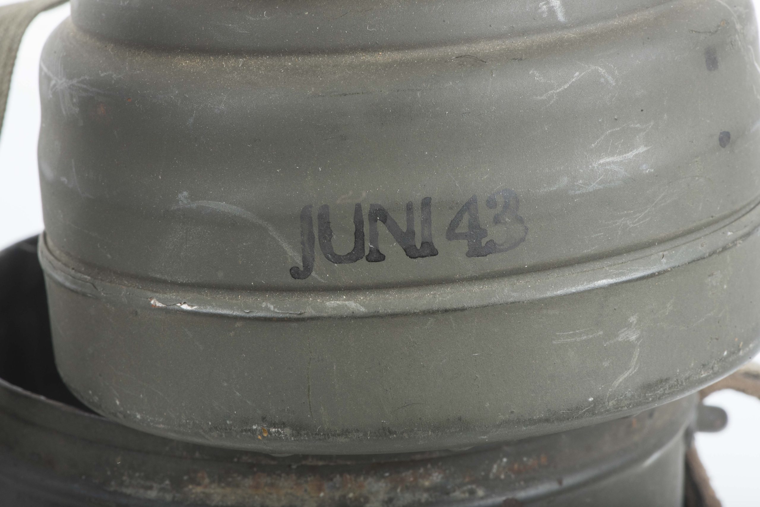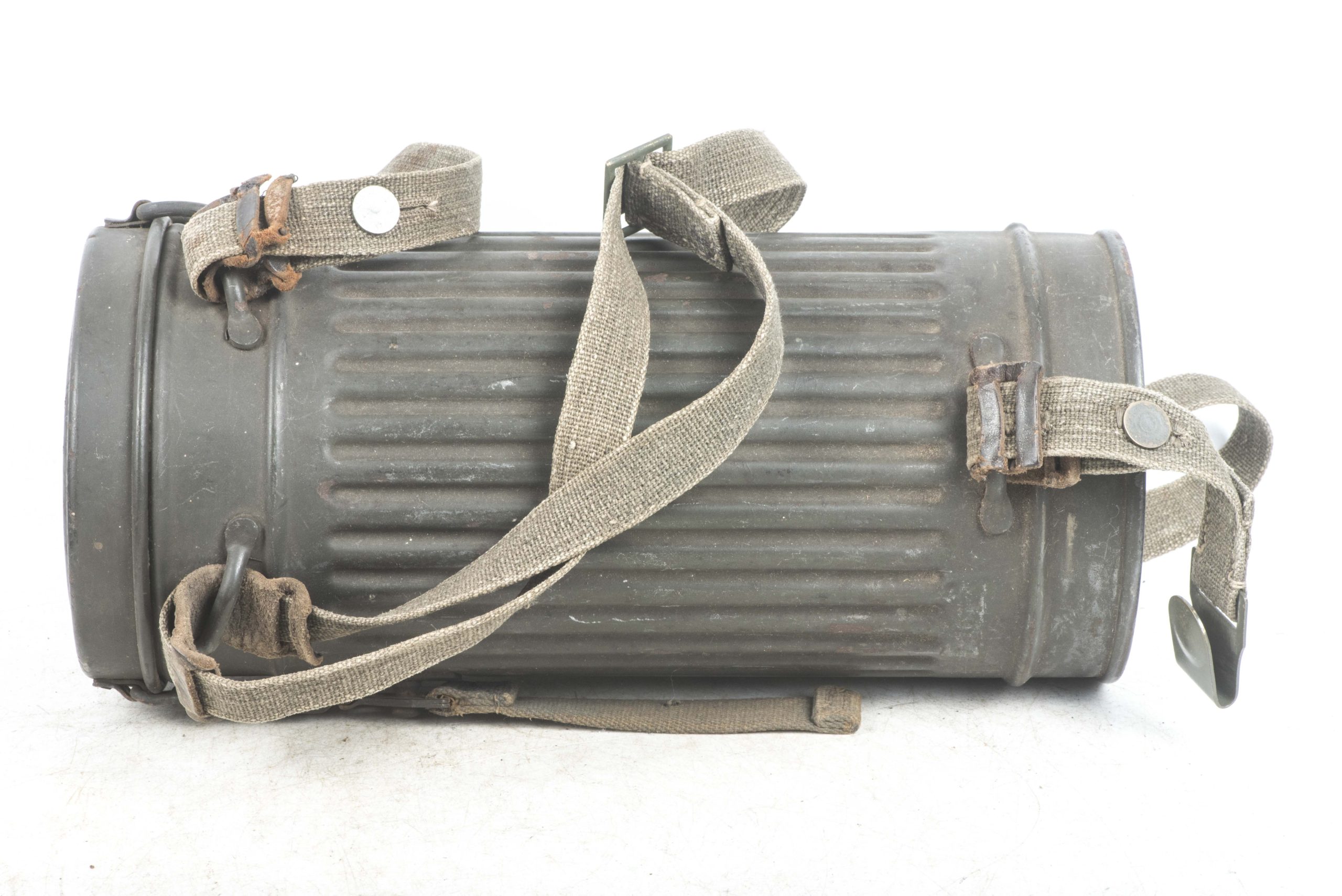 Tall early M38 gasmask set in excellent condition. Nice complete example with straps with leather reinforcements. Hard to find !