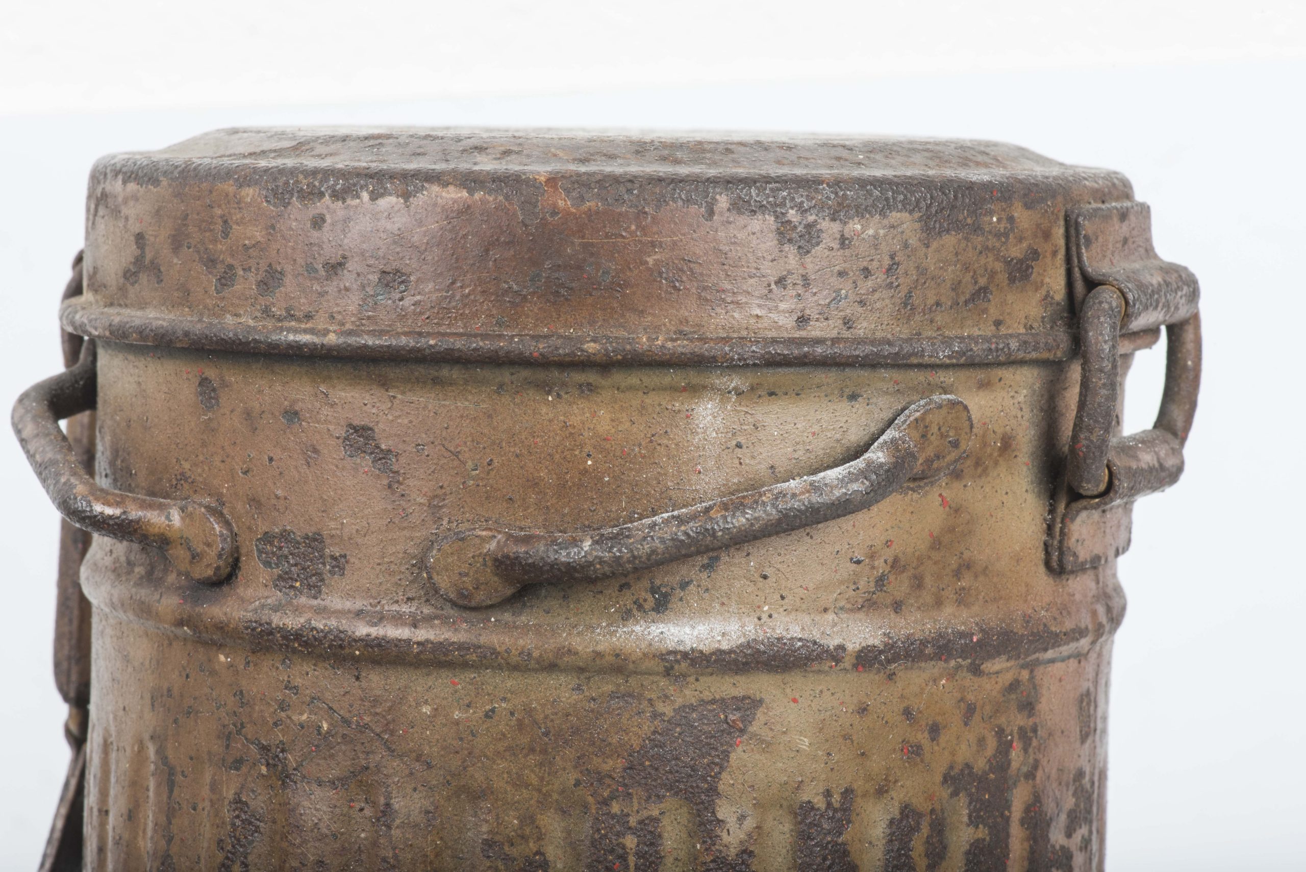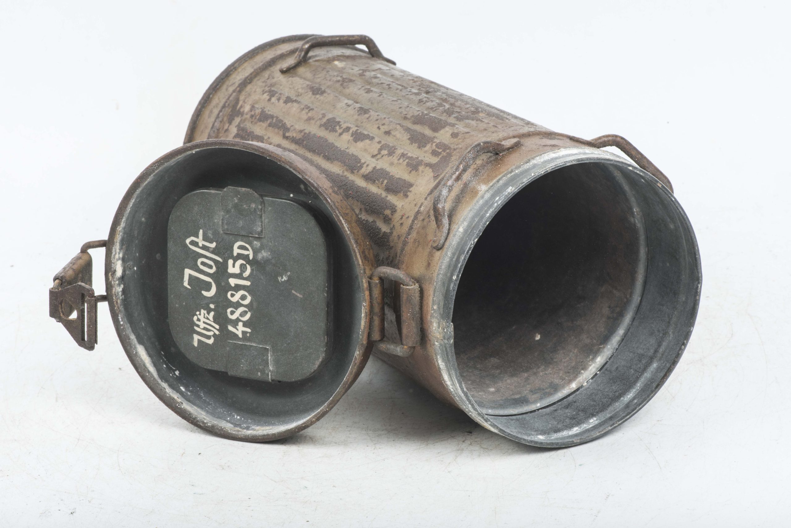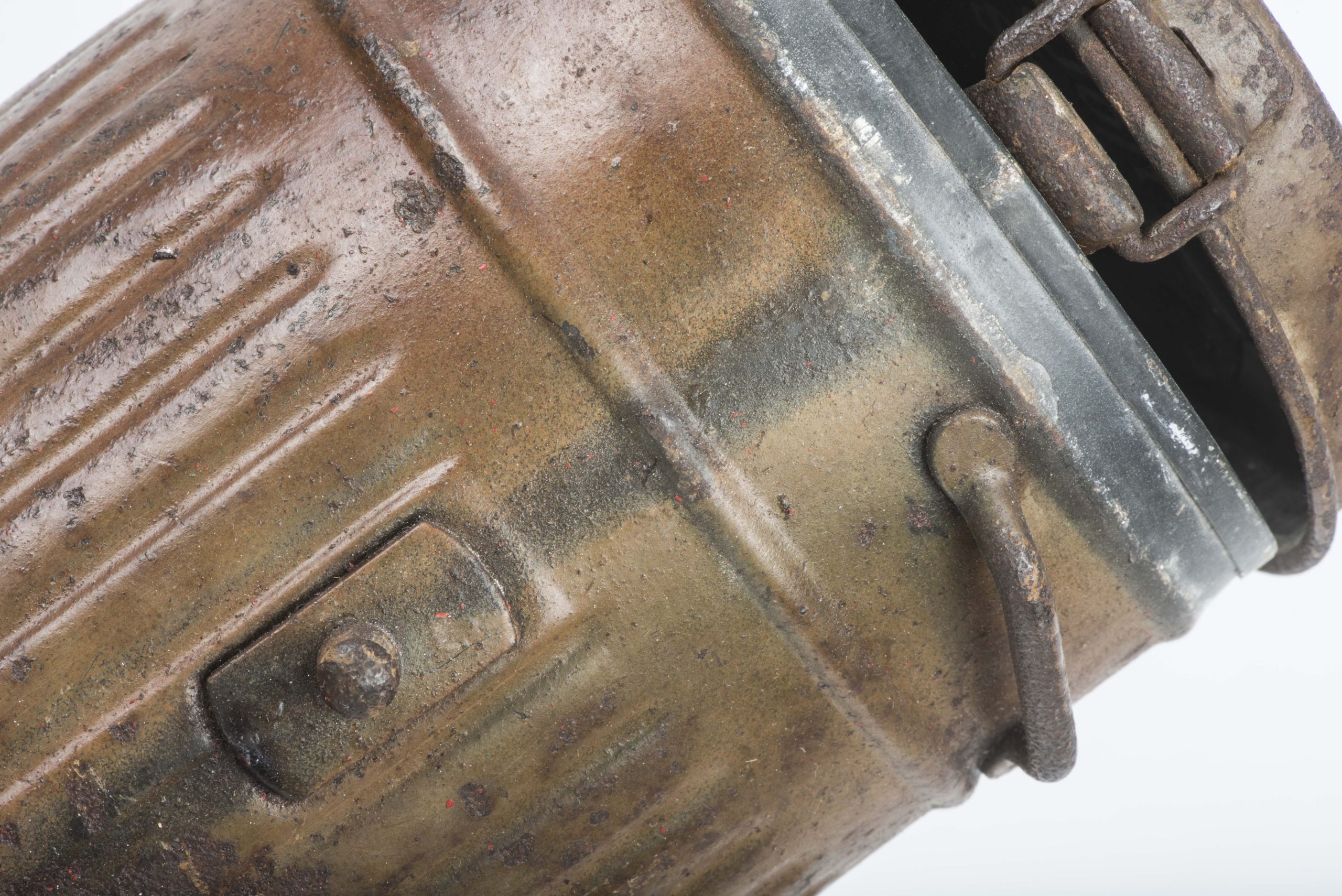 Tall M38 gasmask canister in three-tone ‘Normandy’ camouflage Fest. Gren. Regt. 751
