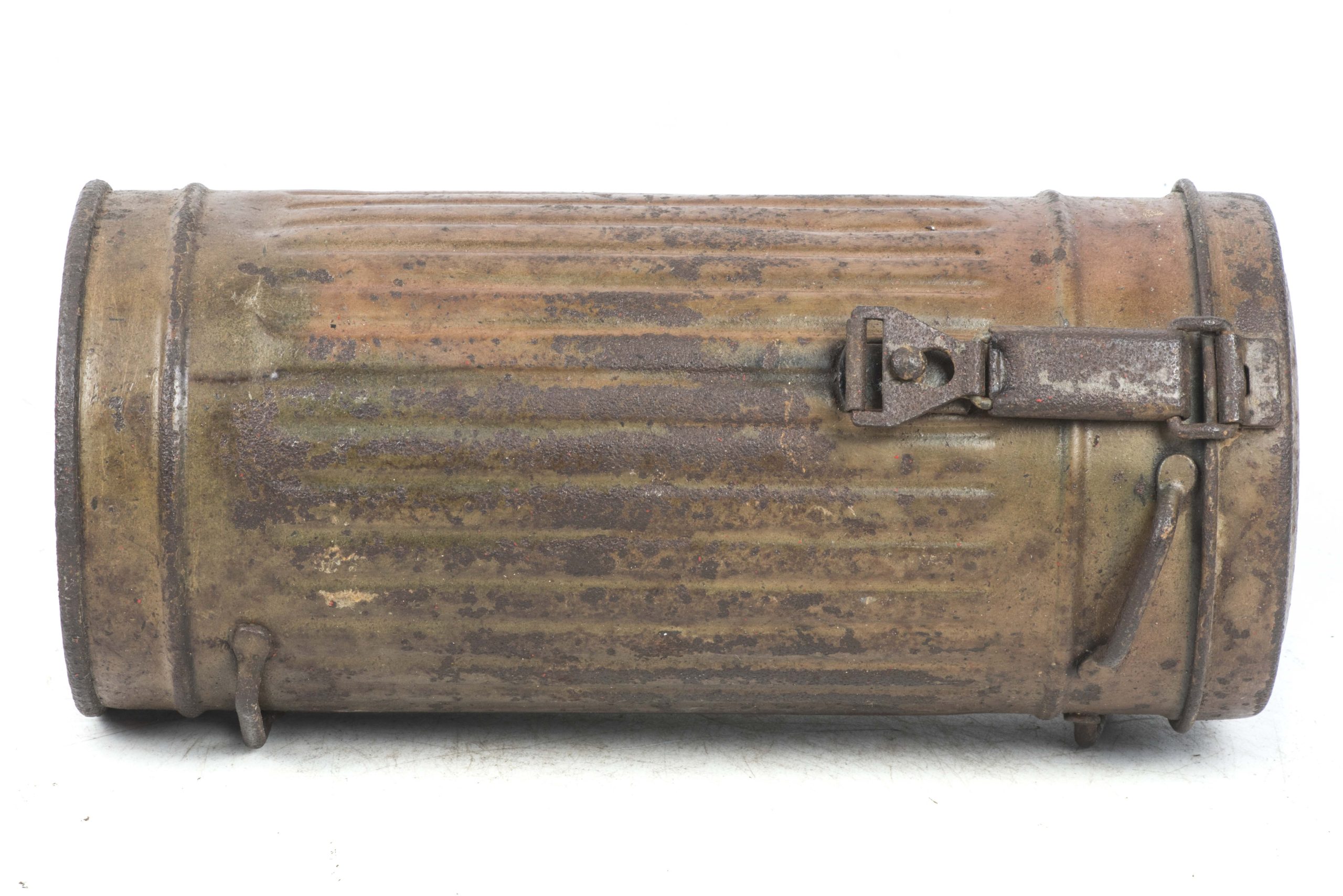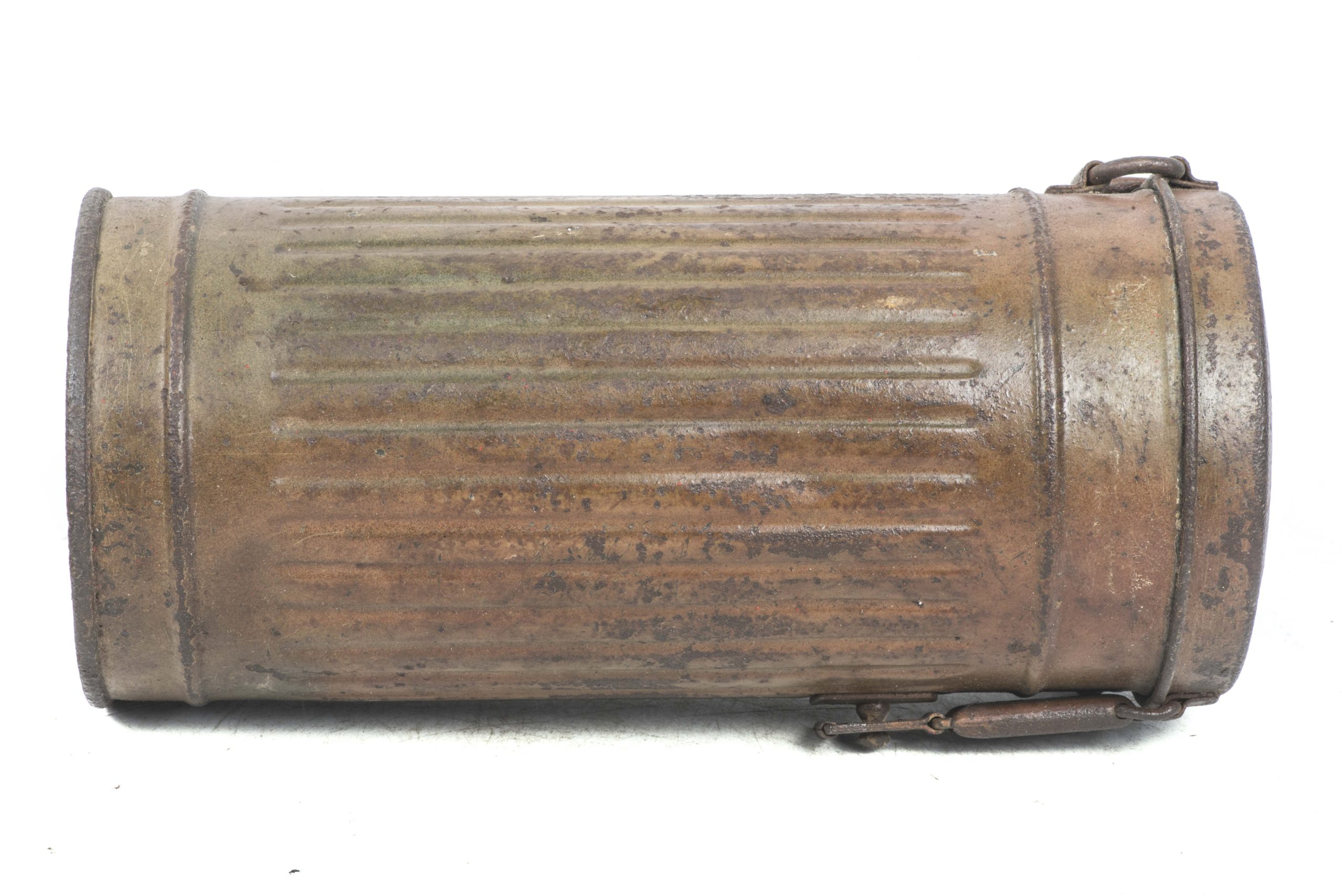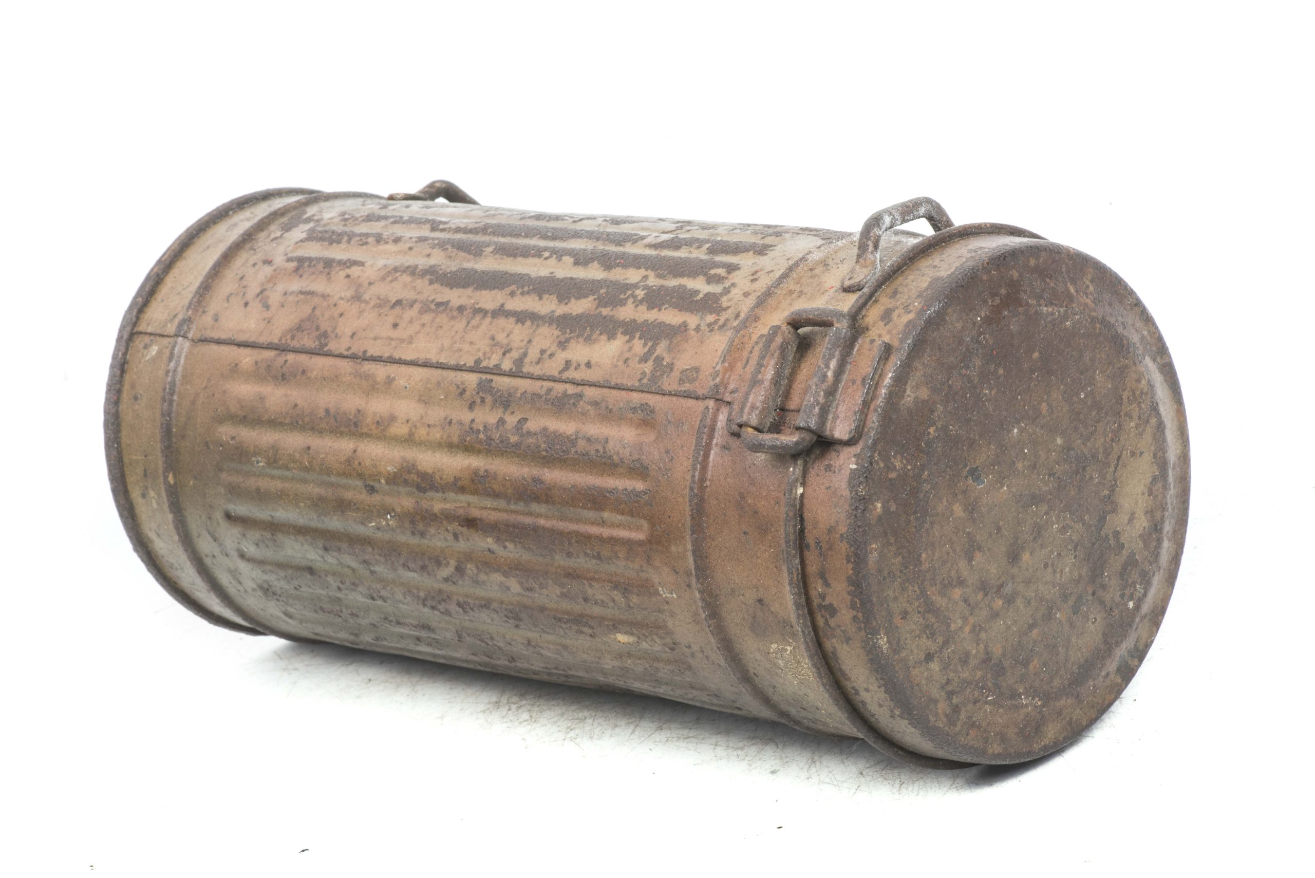 Tall M38 gasmask canister in three-tone ‘Normandy’ camouflage Fest. Gren. Regt. 751