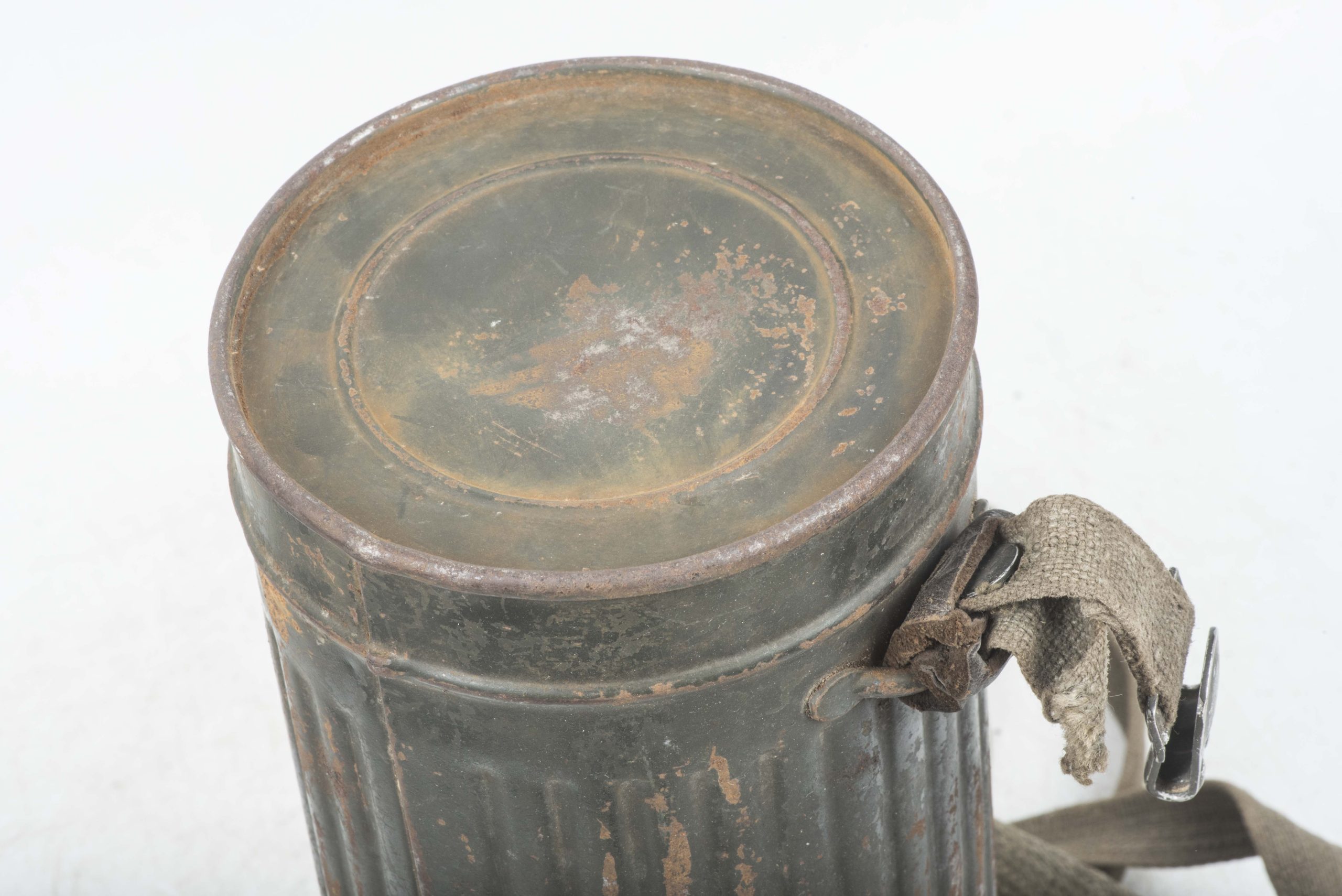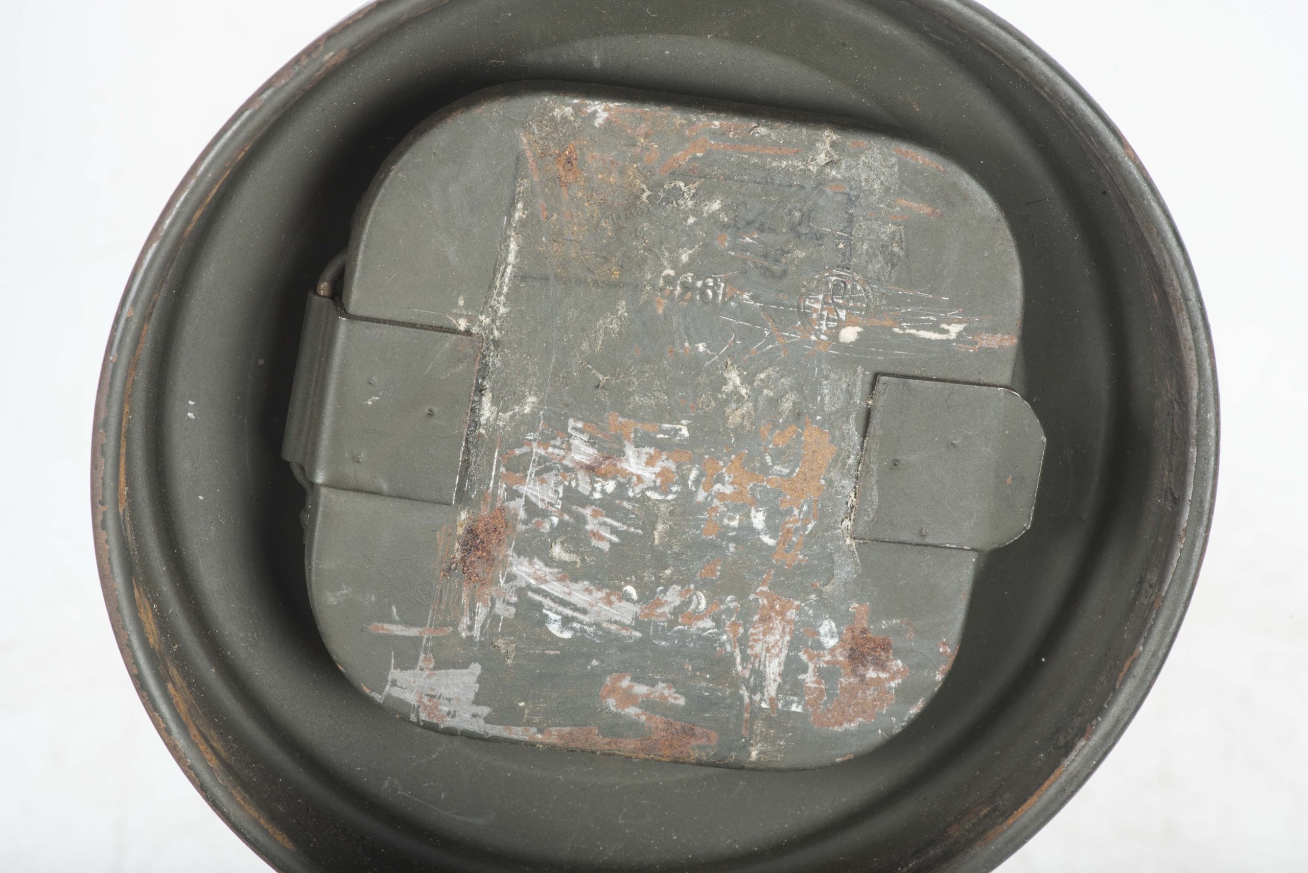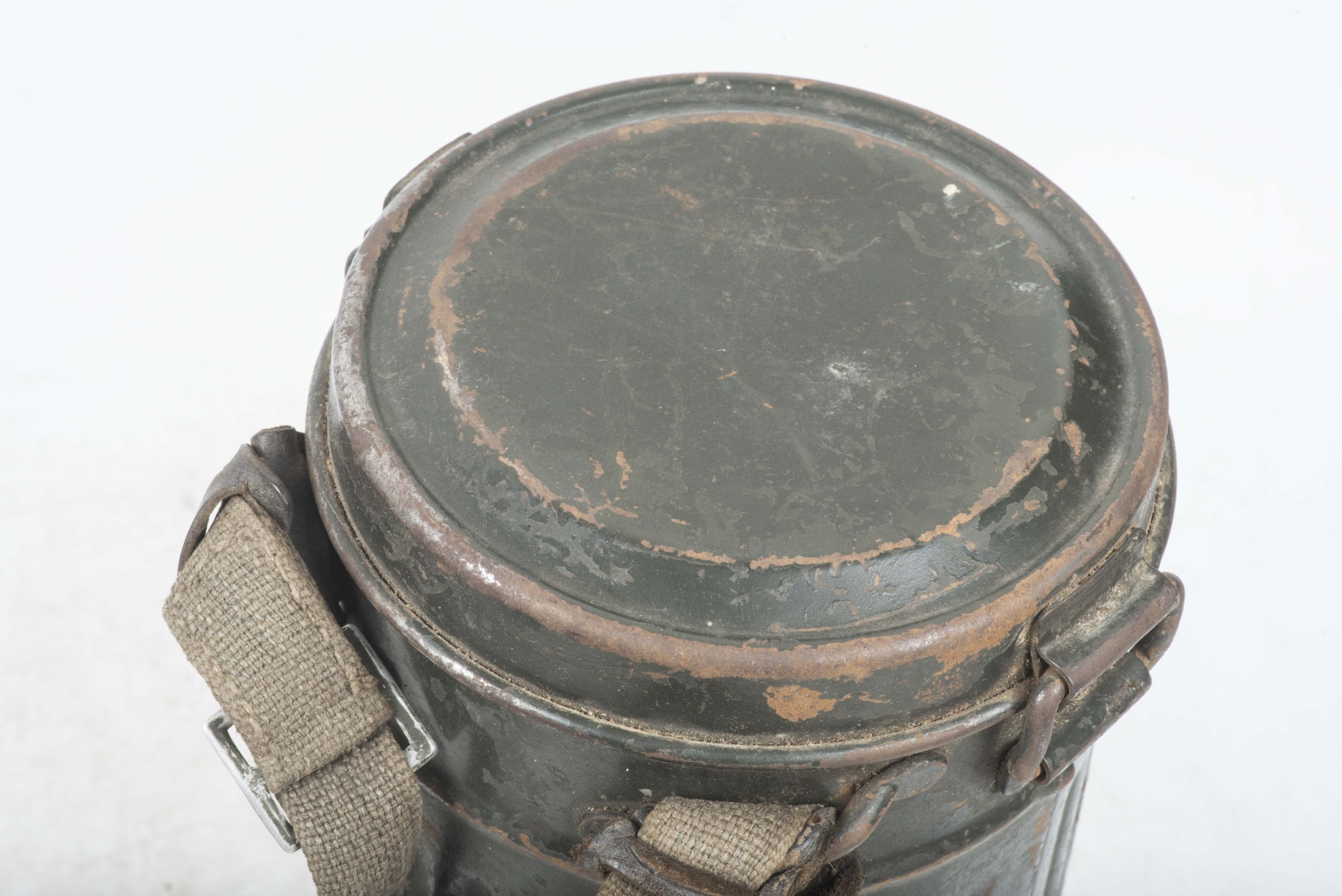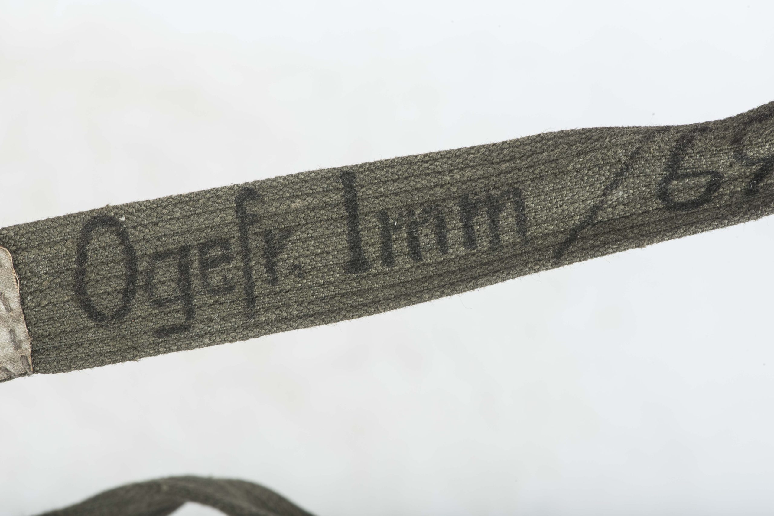 M38 gasmask in tall field repainted canister named to Obergefreiter Imm, Fpn 42931