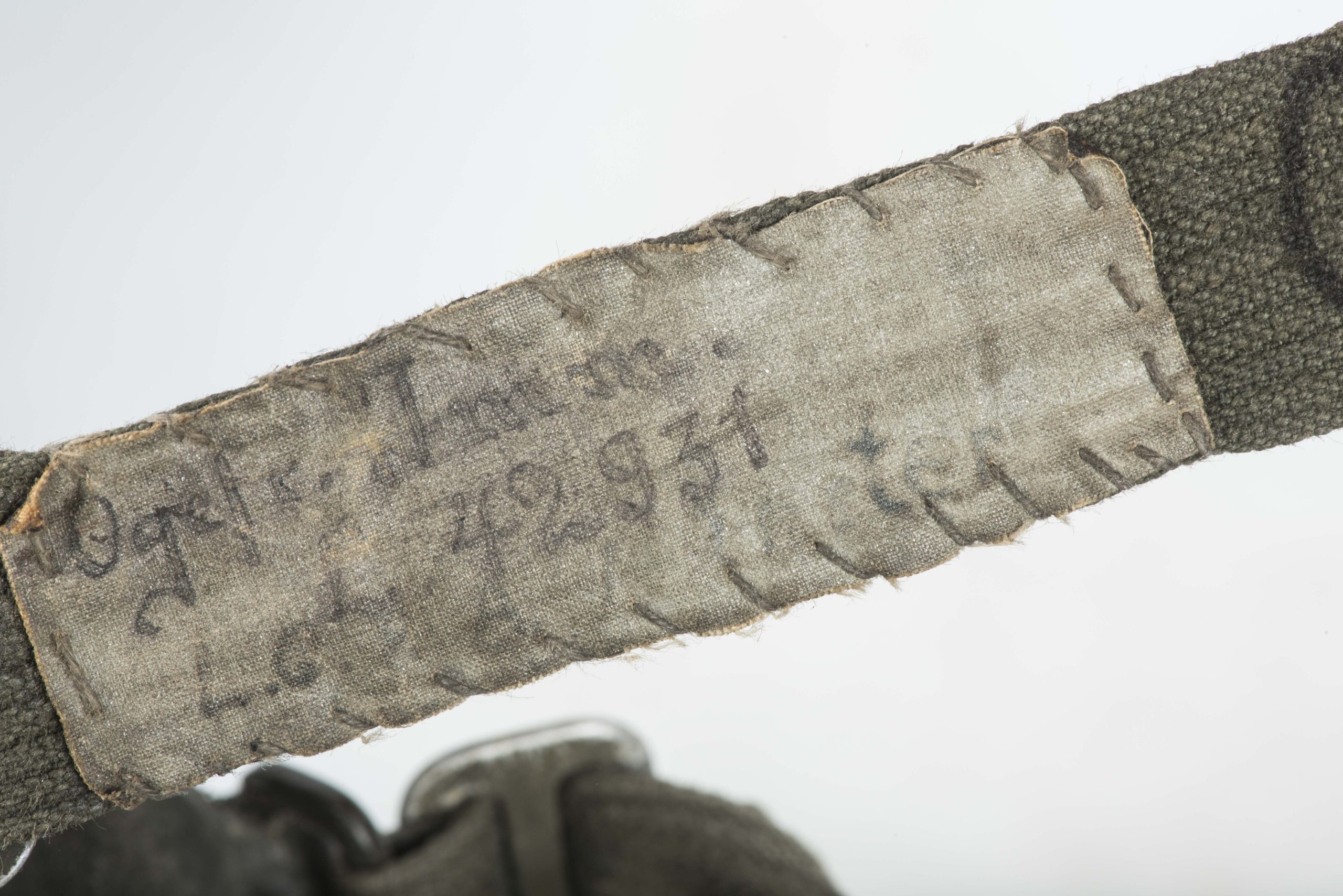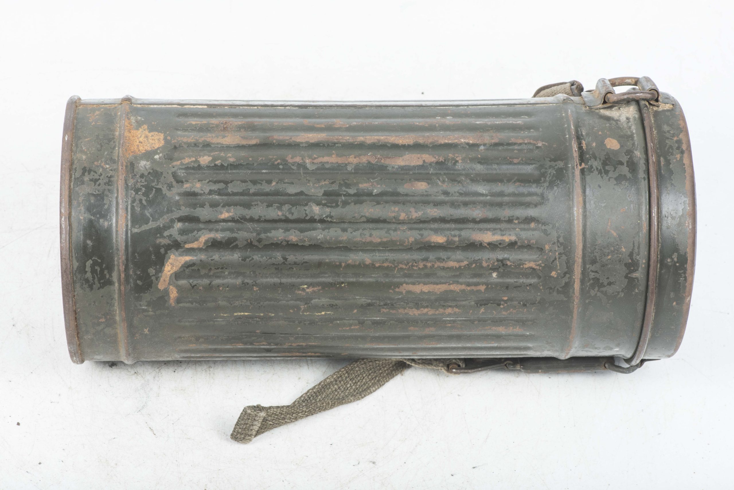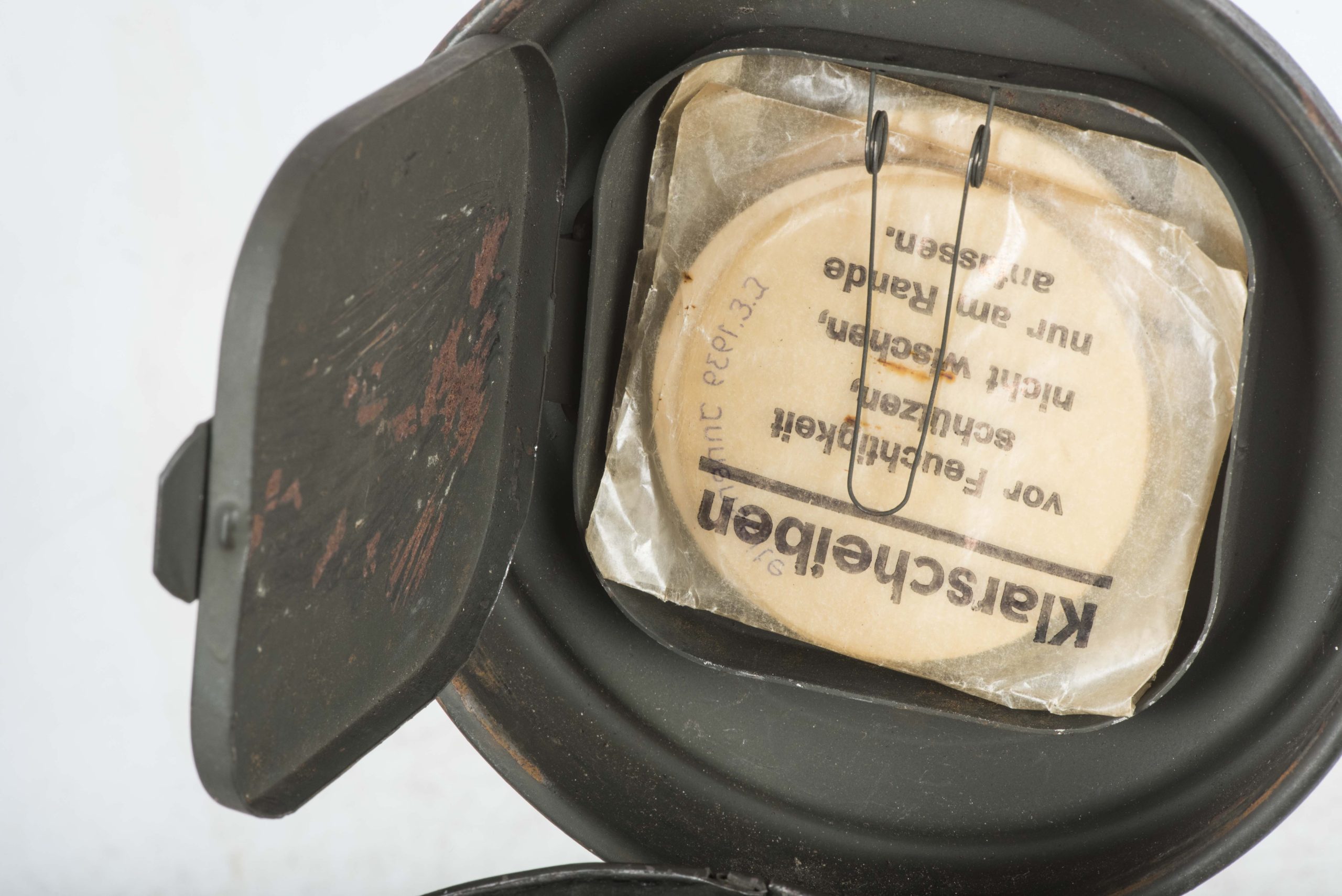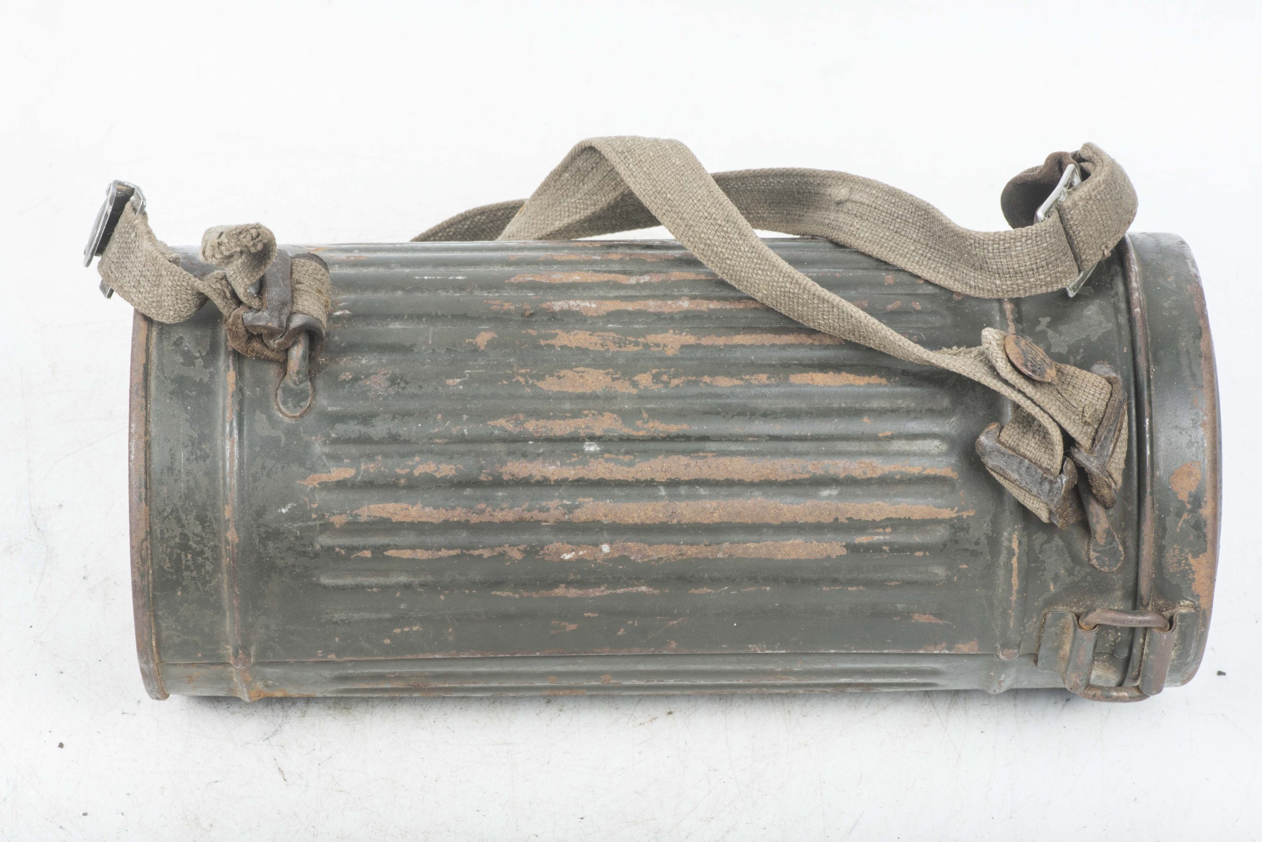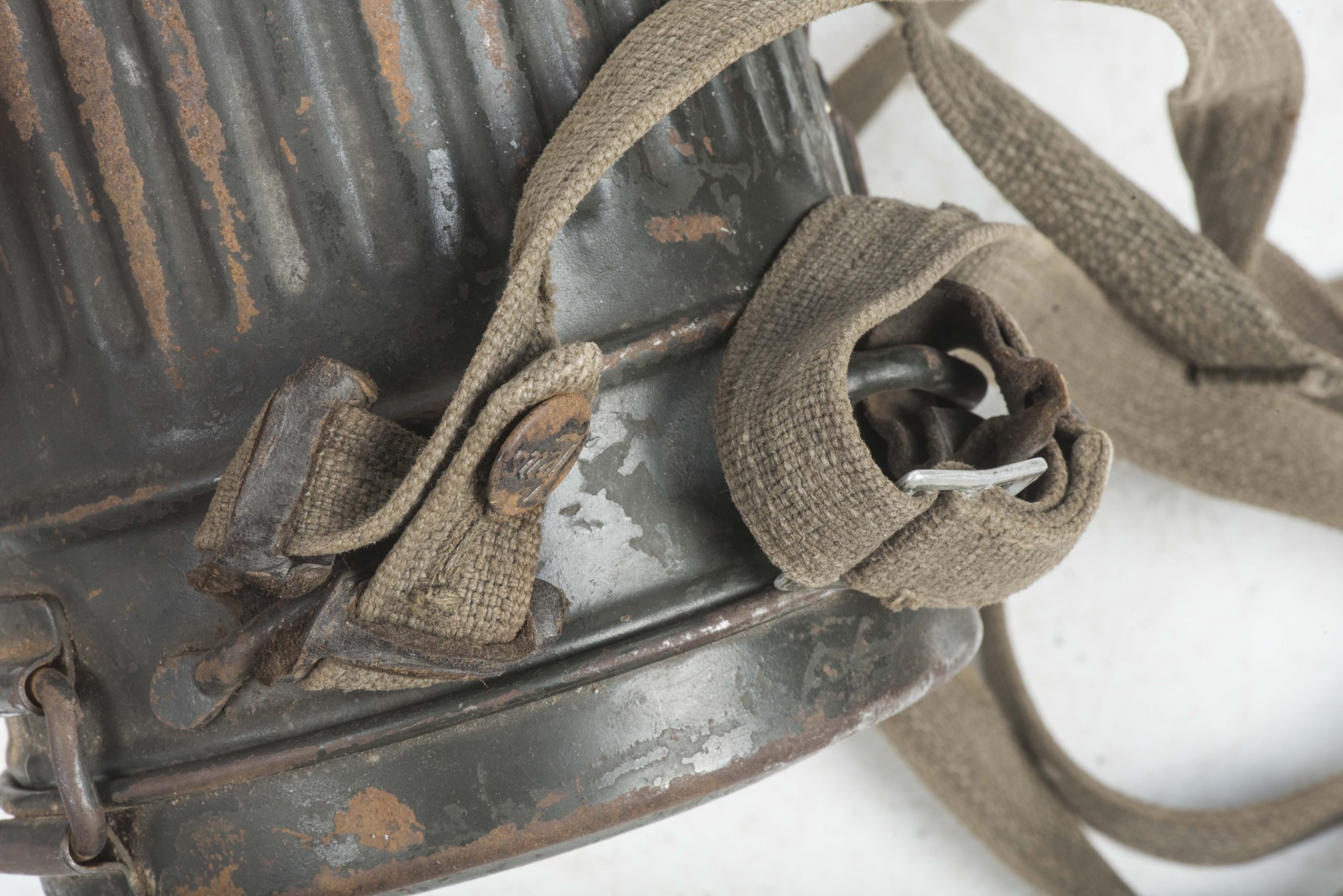 M38 gasmask in tall field repainted canister named to Obergefreiter Imm, Fpn 42931